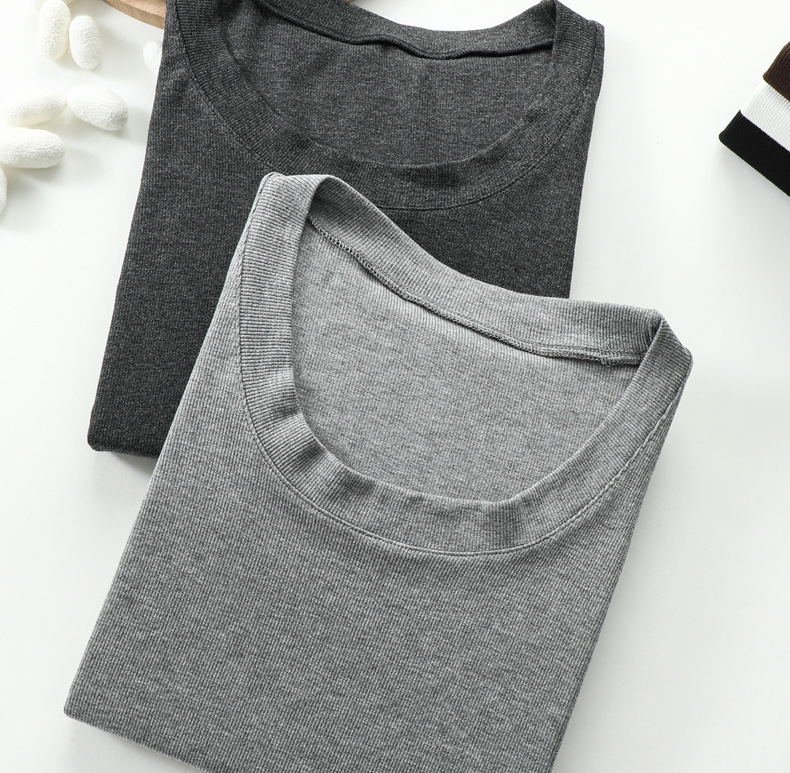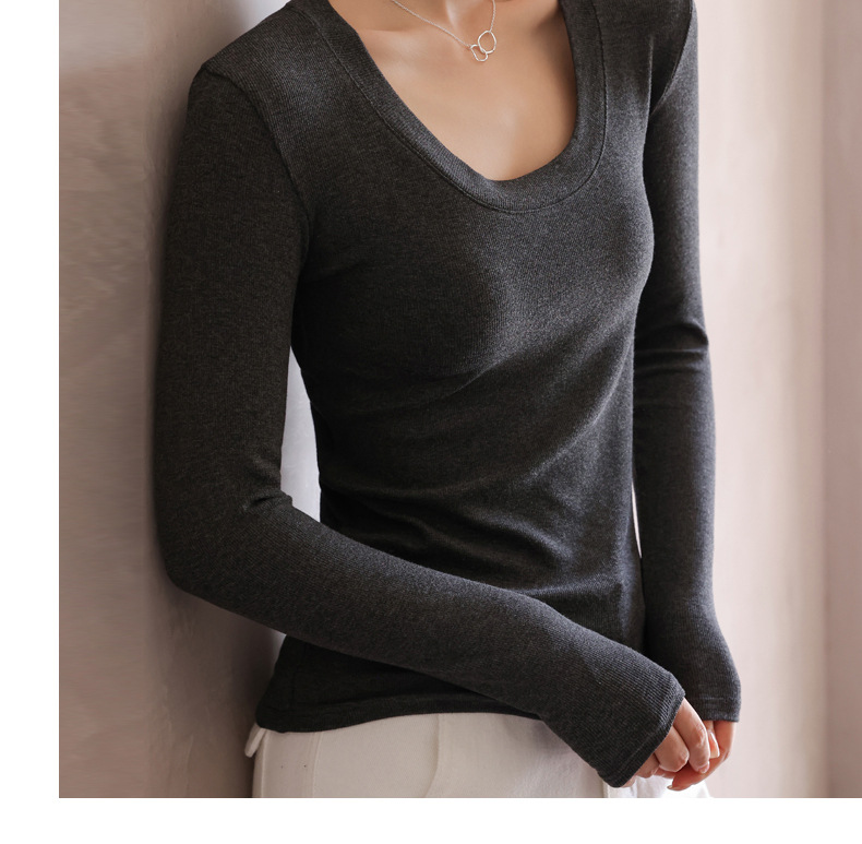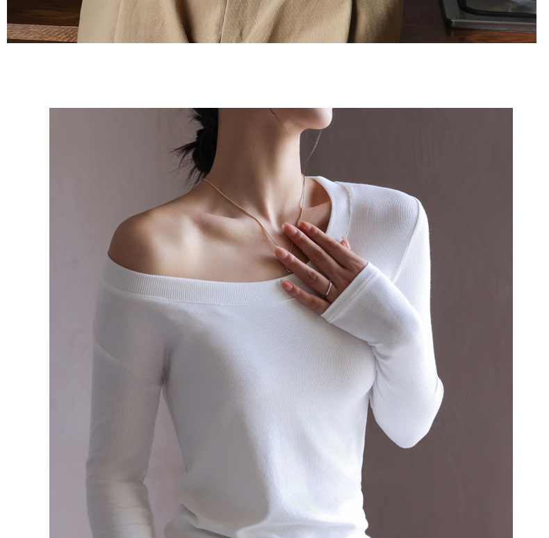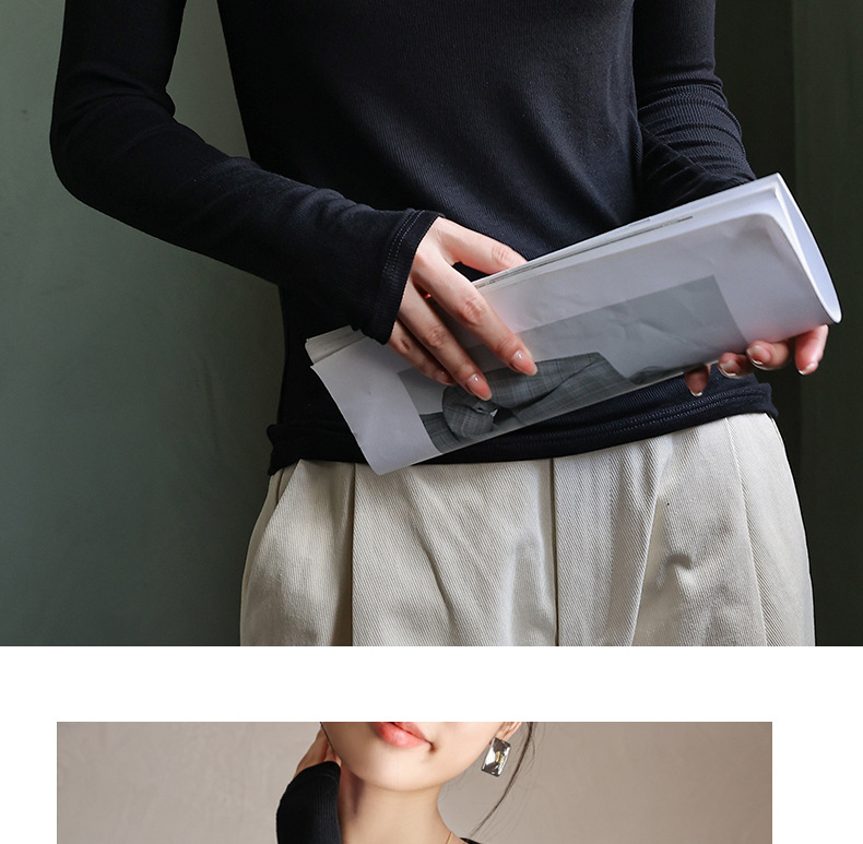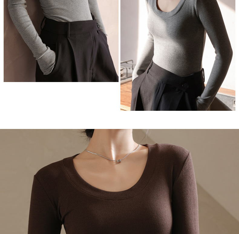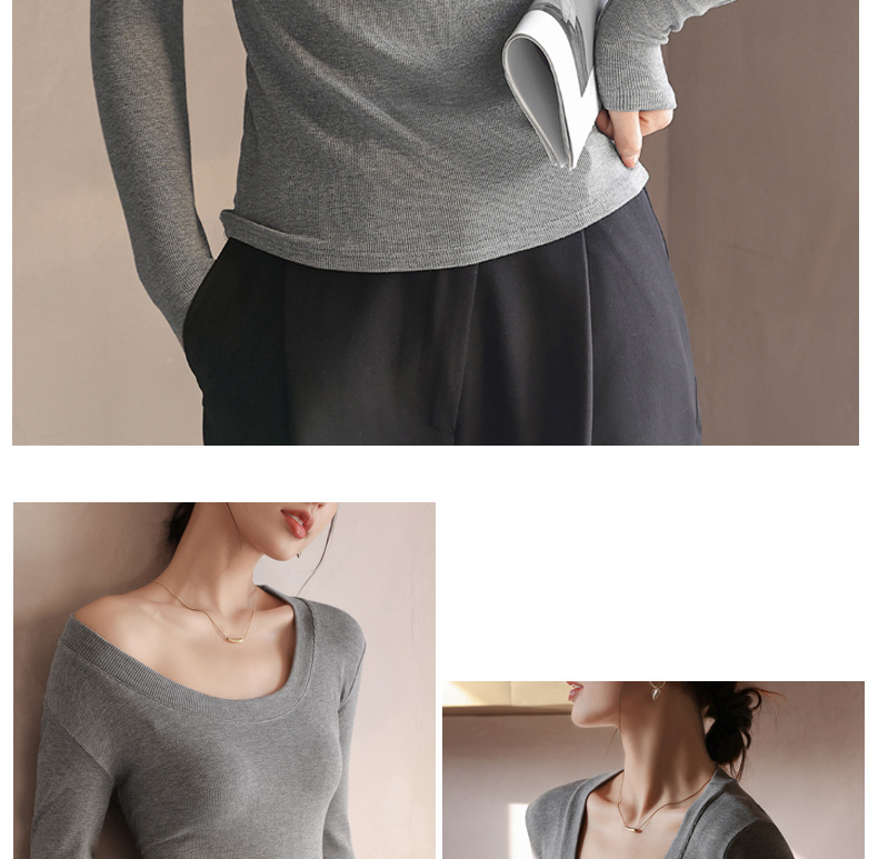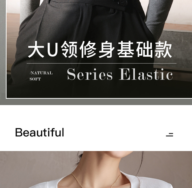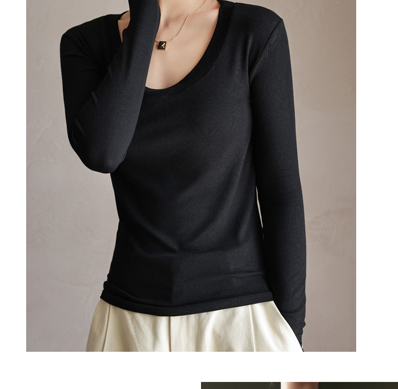 螺纹莫代尔纯色大圆领长袖打底衫女秋季显瘦修身内搭上衣正肩t恤
