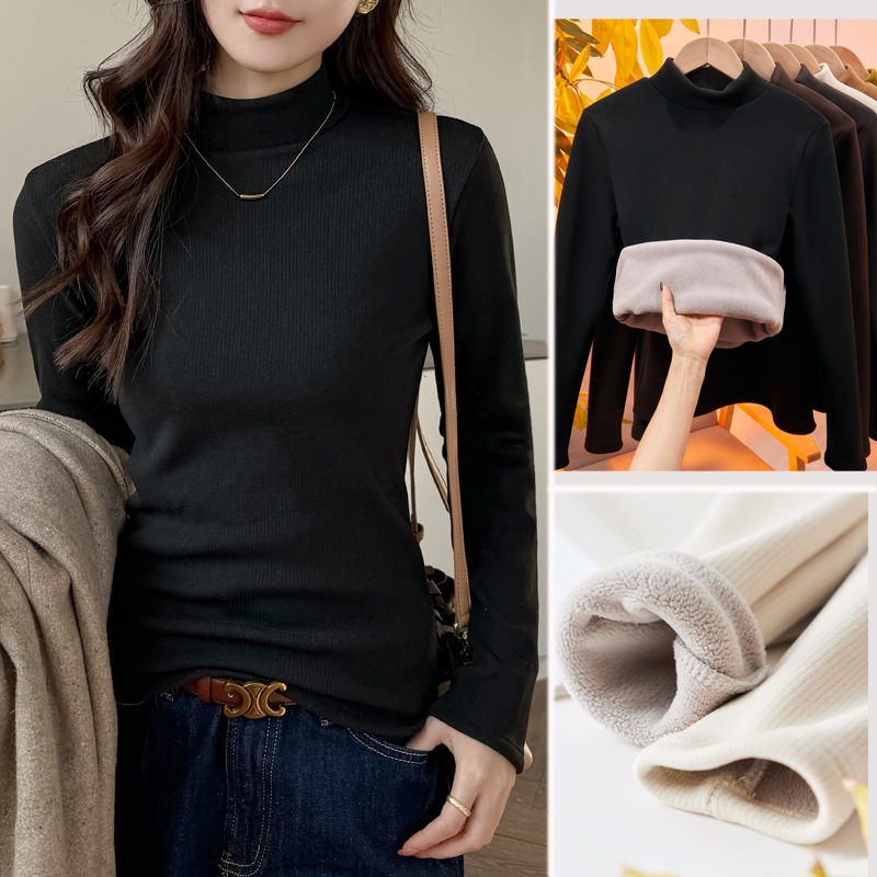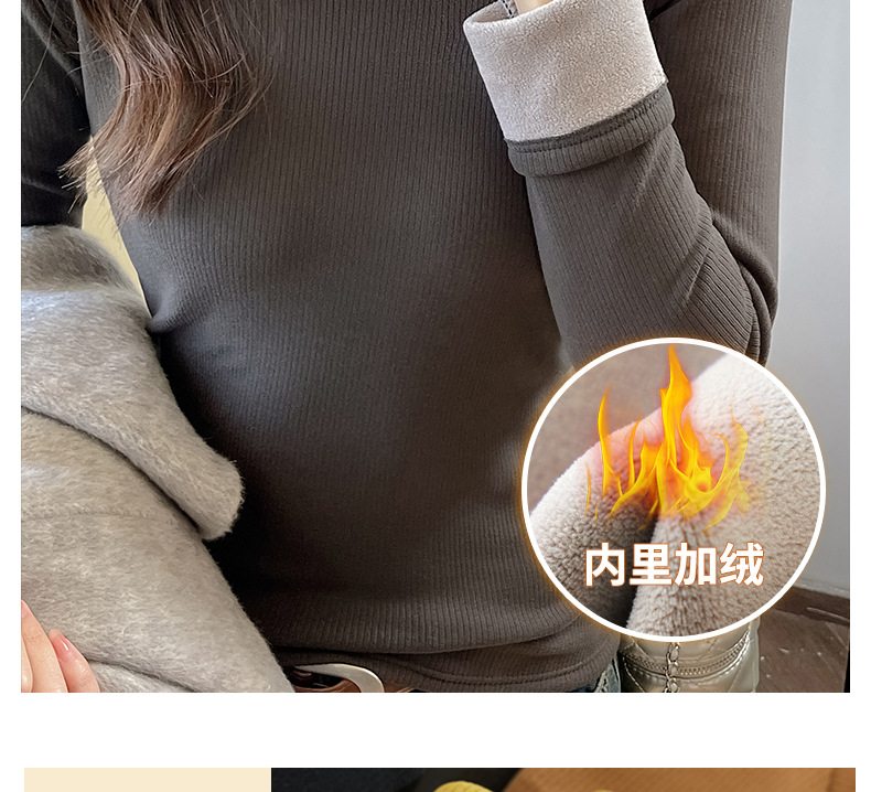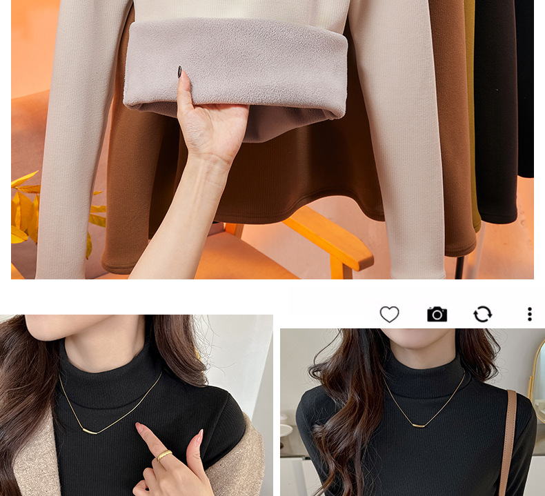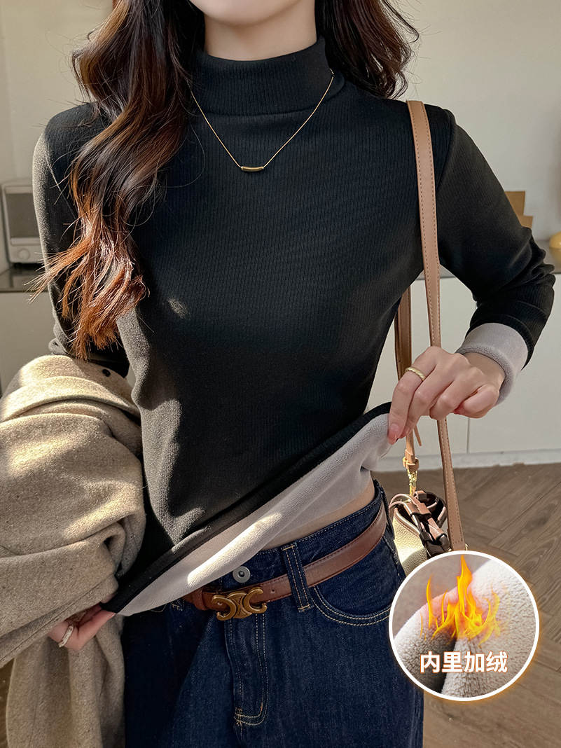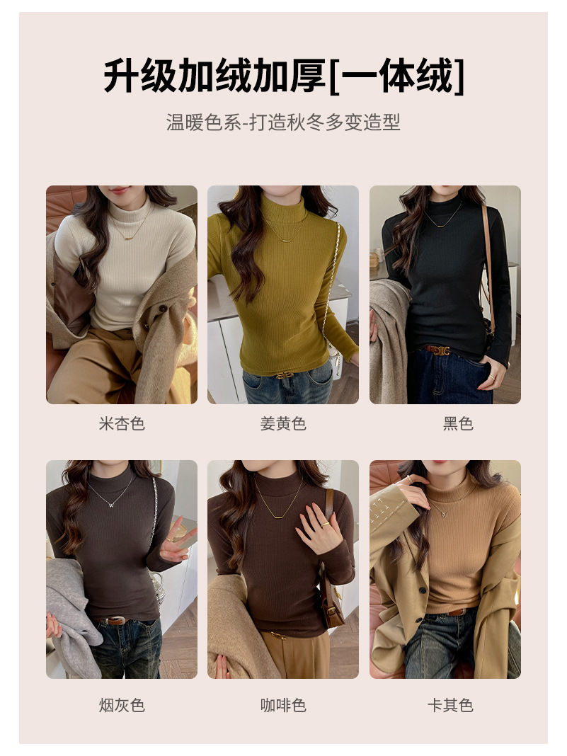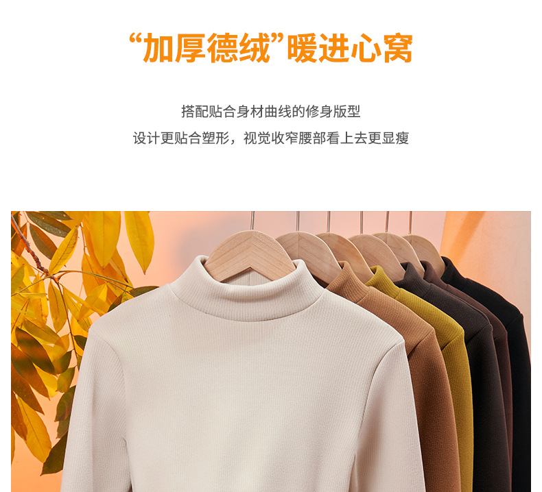 秋冬季加绒加厚半高领打底衫女内搭衫保暖中领高级感德绒长袖上衣