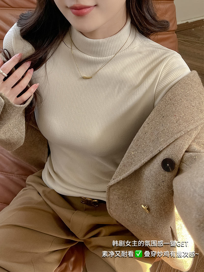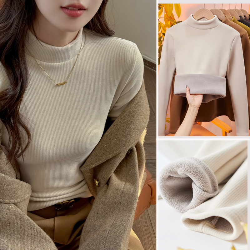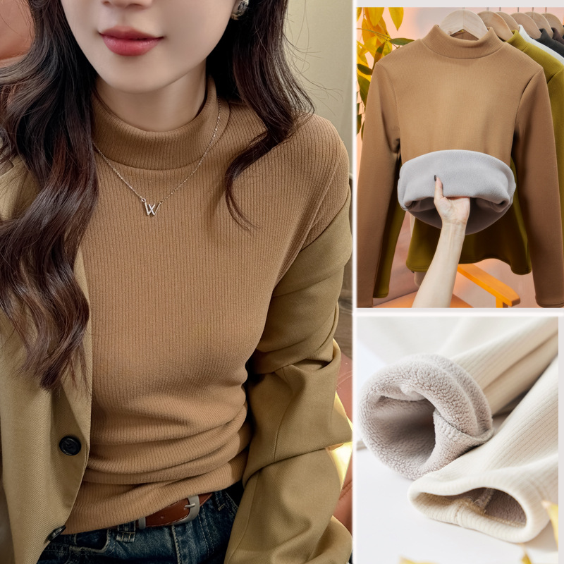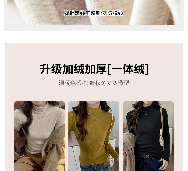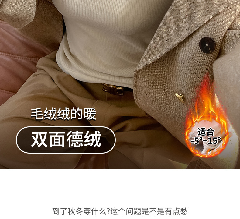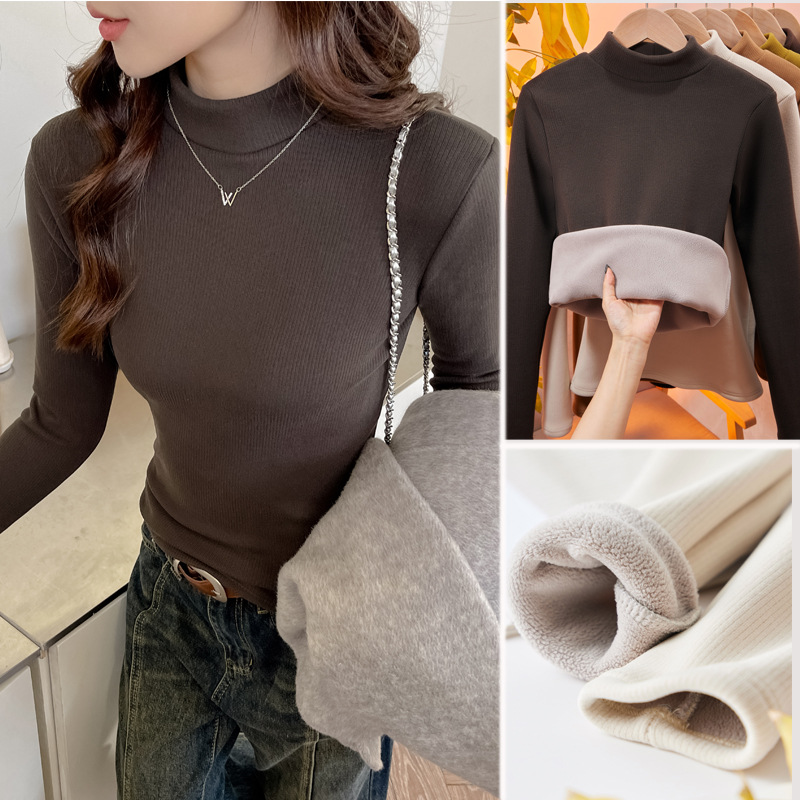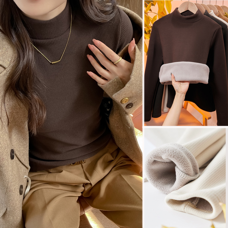 秋冬季加绒加厚半高领打底衫女内搭衫保暖中领高级感德绒长袖上衣