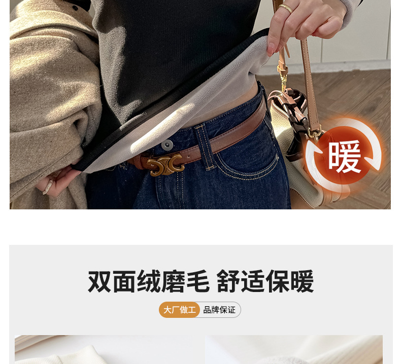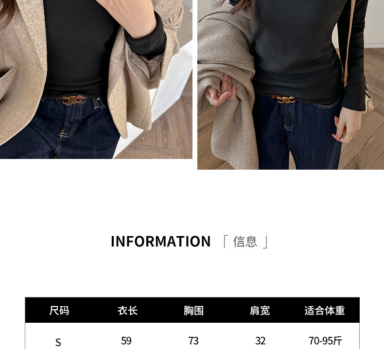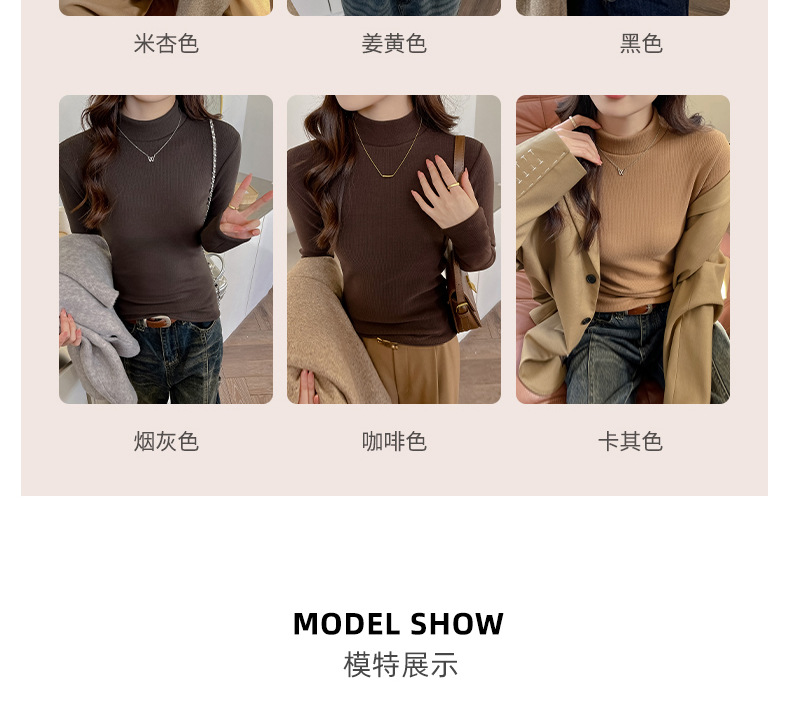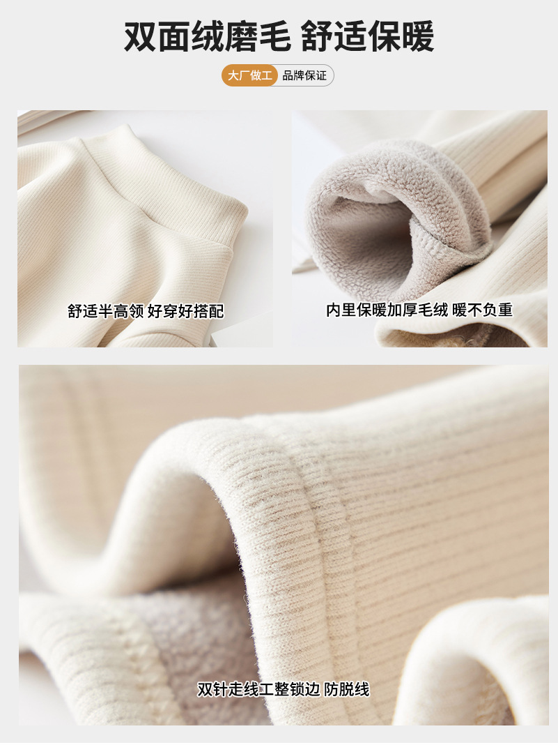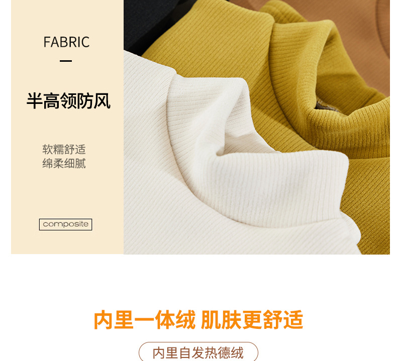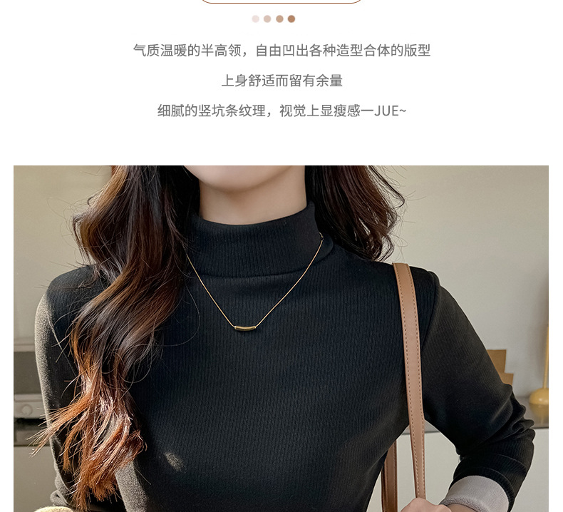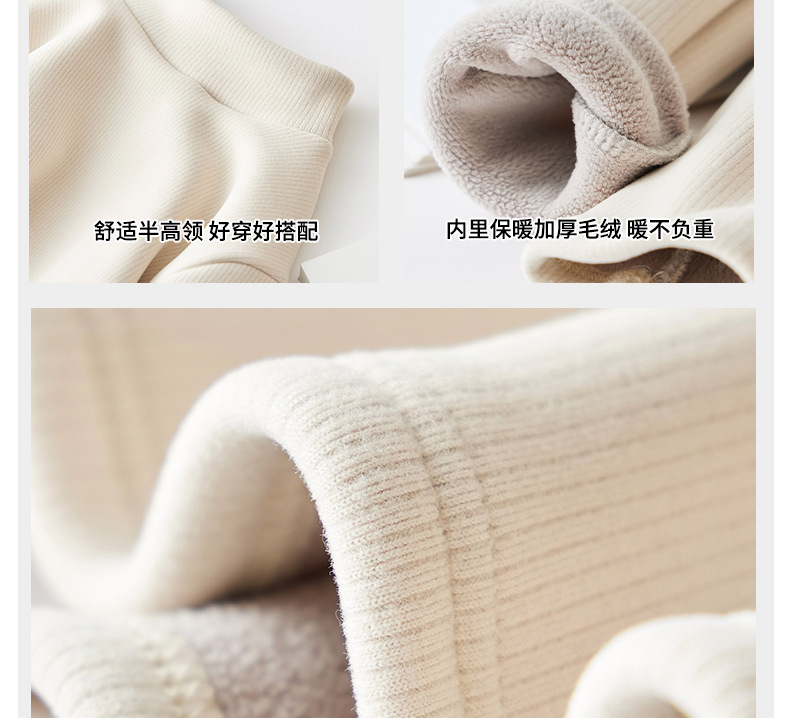 秋冬季加绒加厚半高领打底衫女内搭衫保暖中领高级感德绒长袖上衣