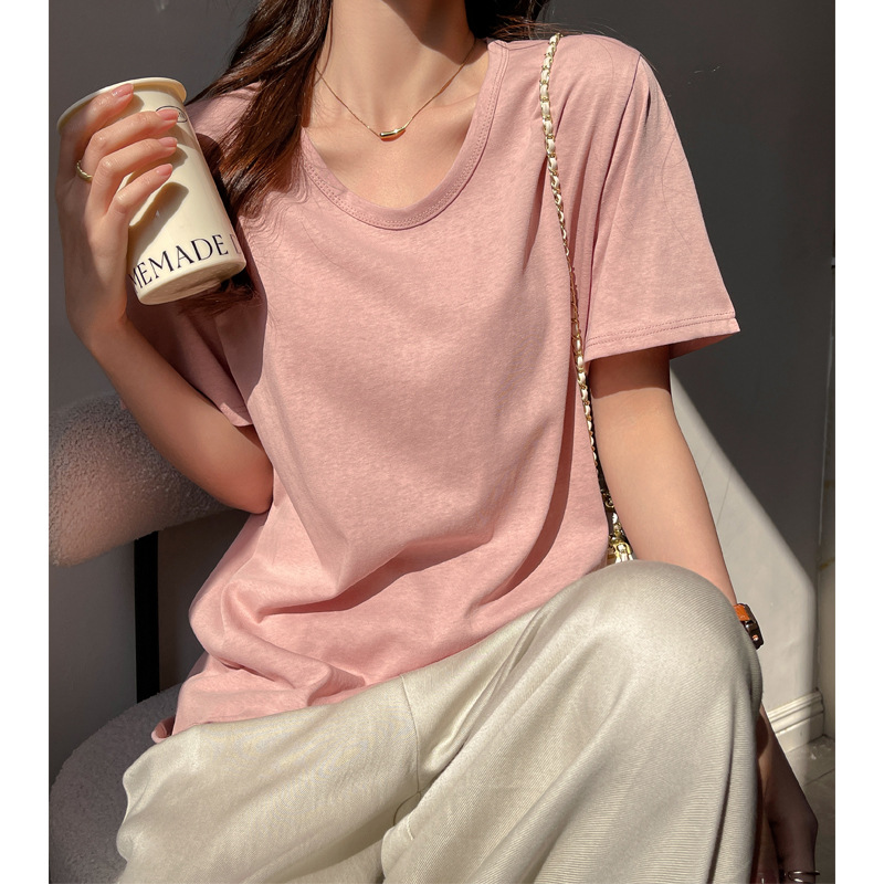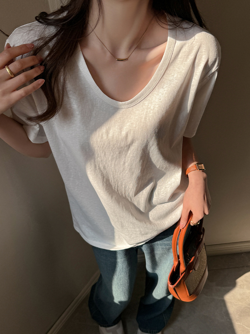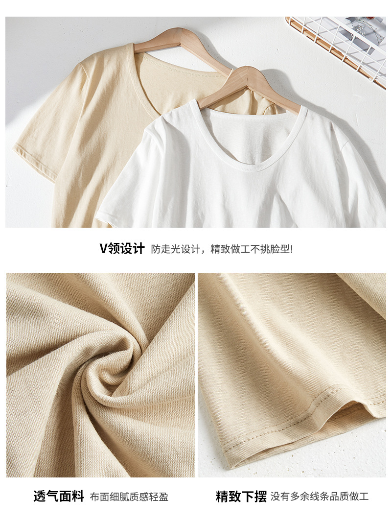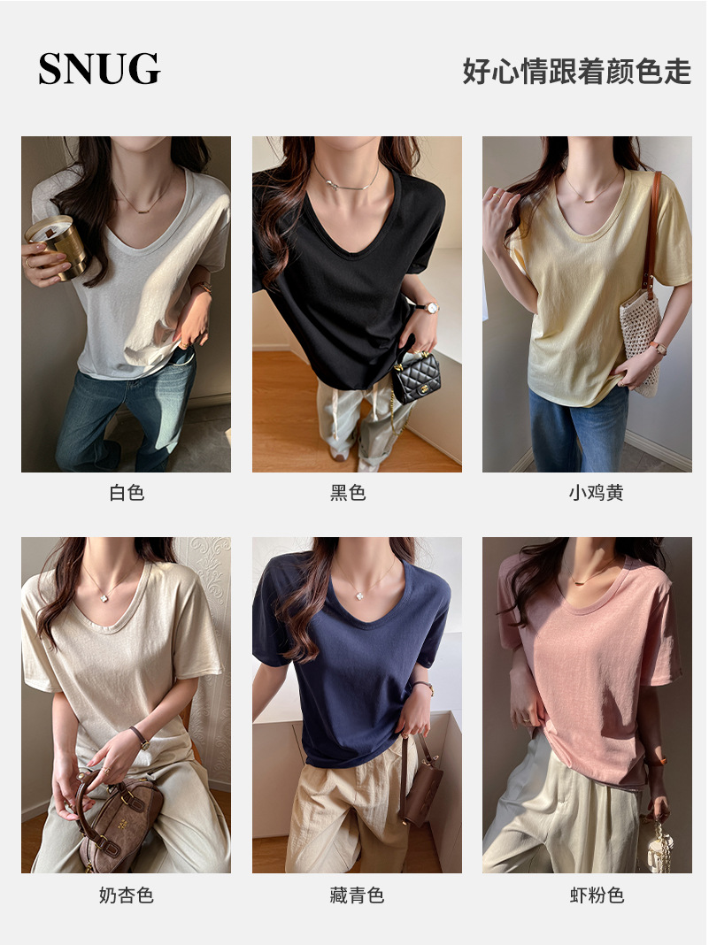 慵懒风高级感V领宽松正肩短袖t恤女式春夏季雪花棉韩系上衣打底衫