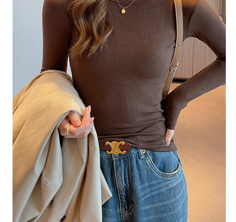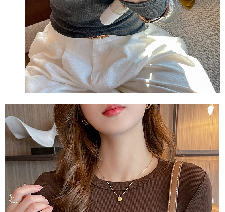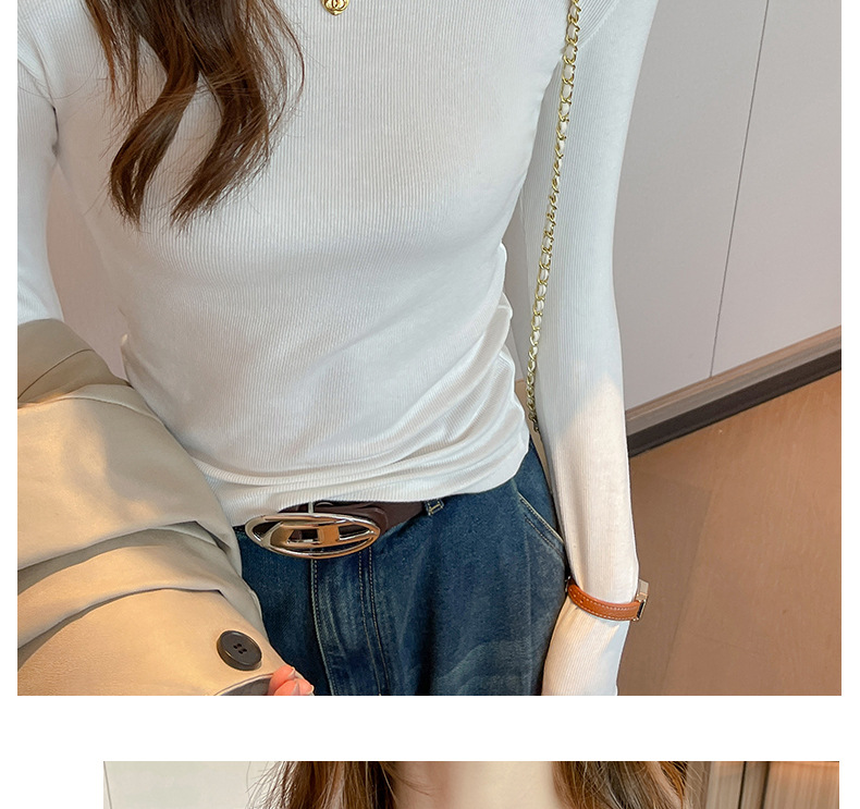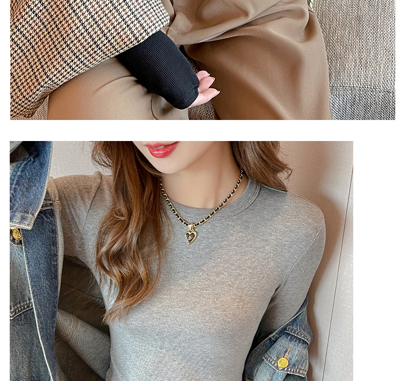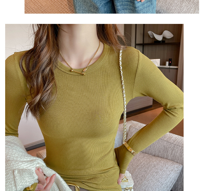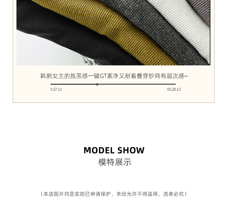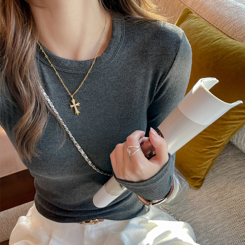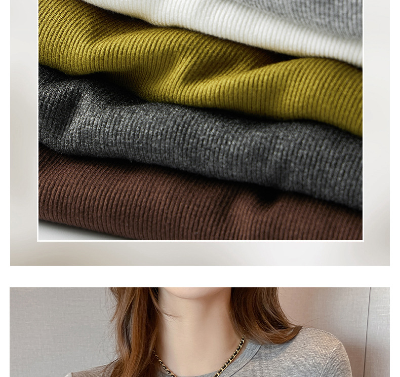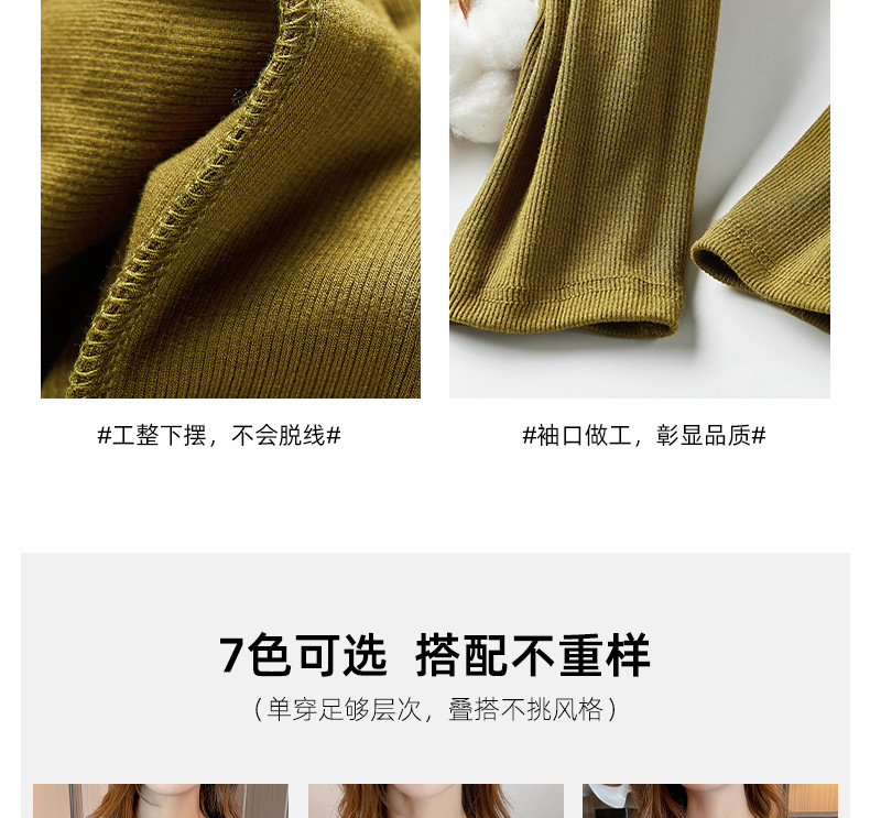 纯色小圆领修身显瘦长袖内搭打底衫女士可外穿高级感螺纹长袖t恤