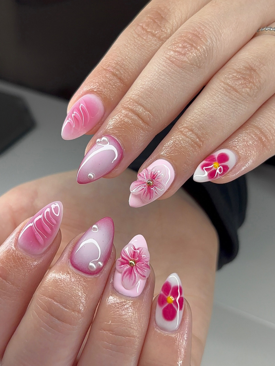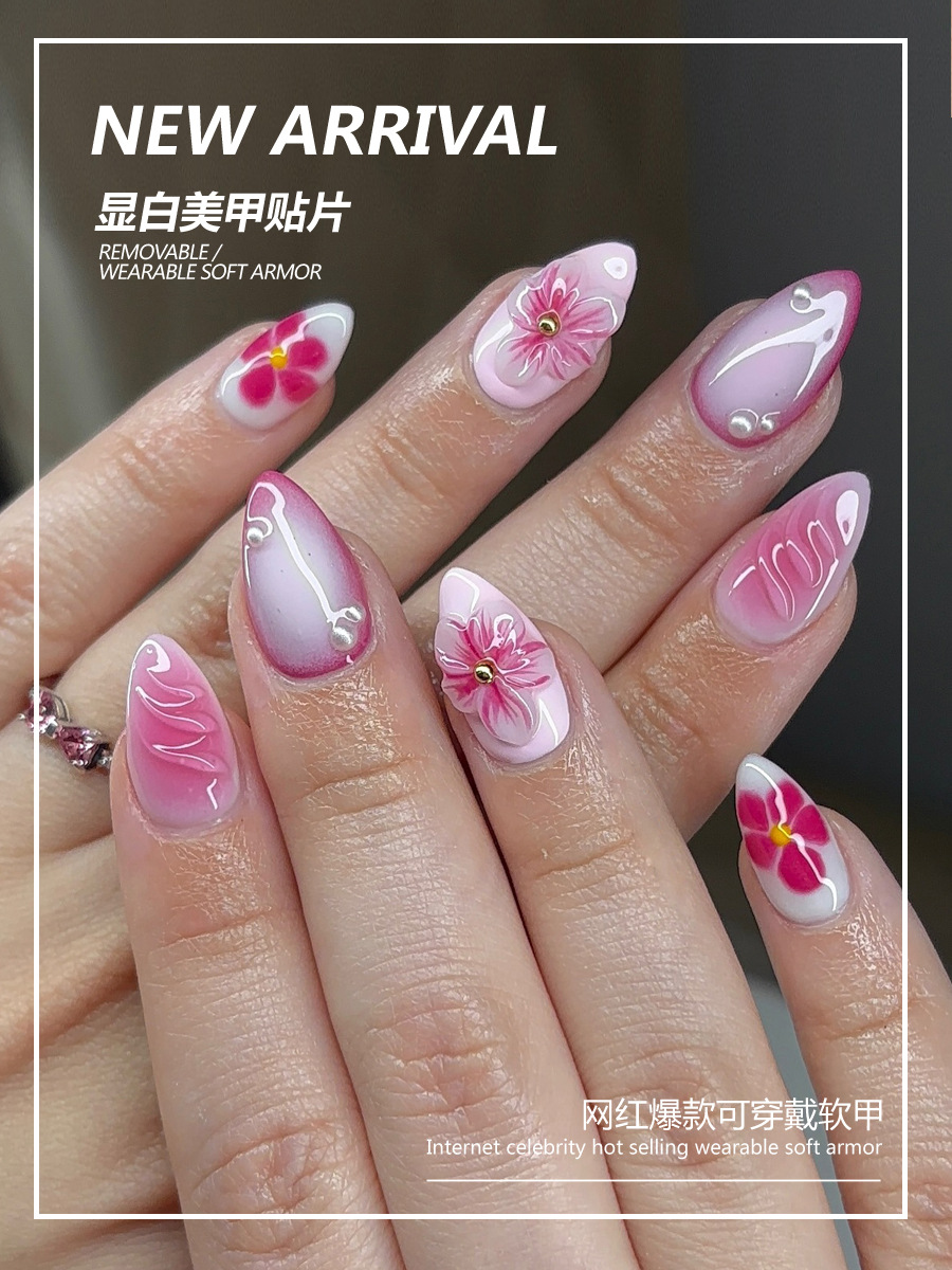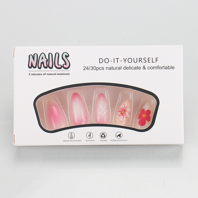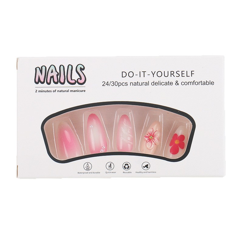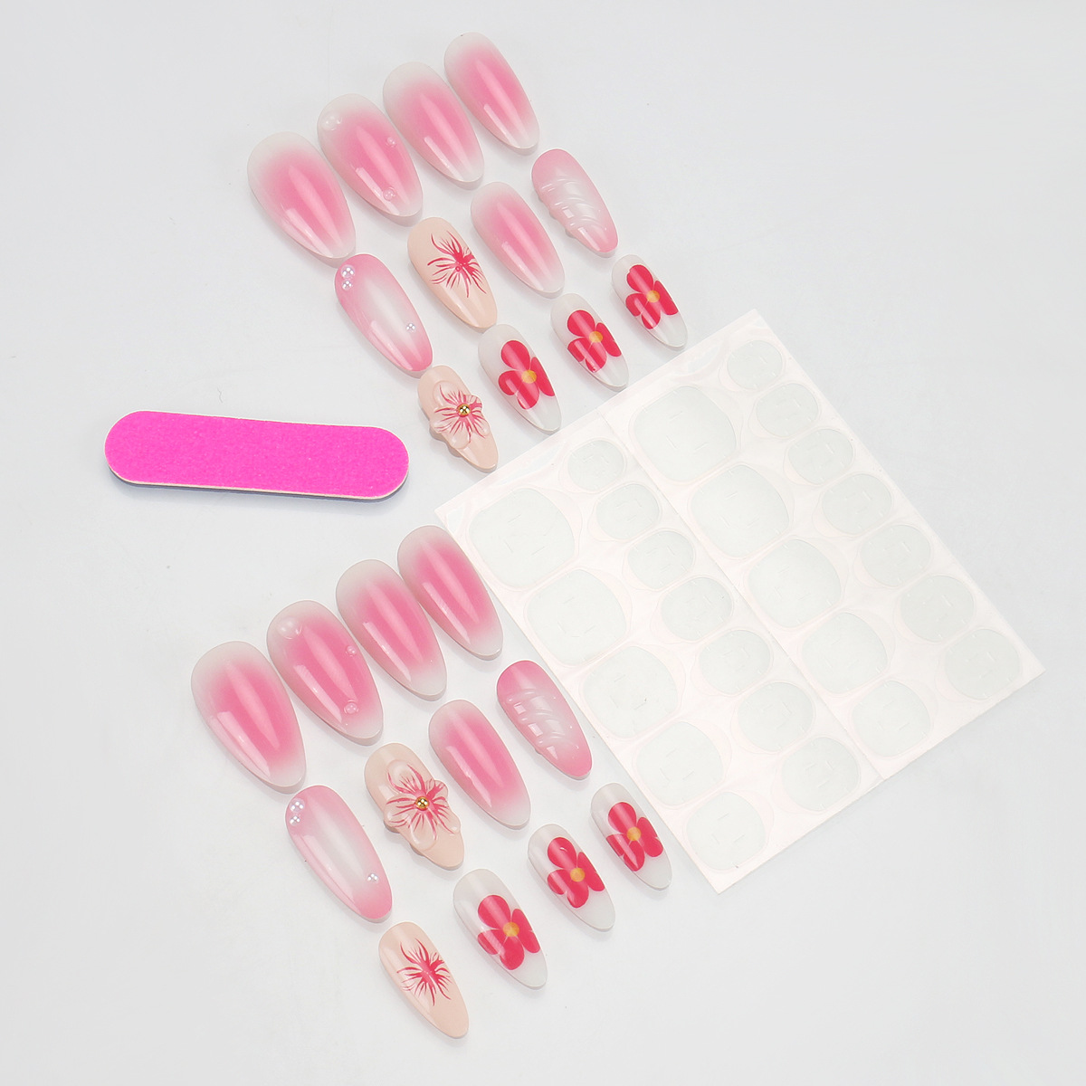 法式美甲贴片简约可拆卸指甲立体花朵穿戴甲晕染美甲片假指甲24片
