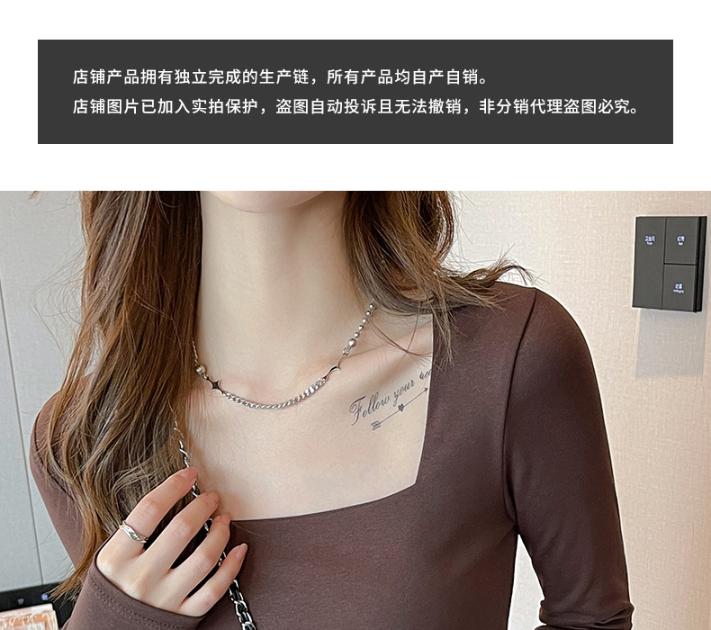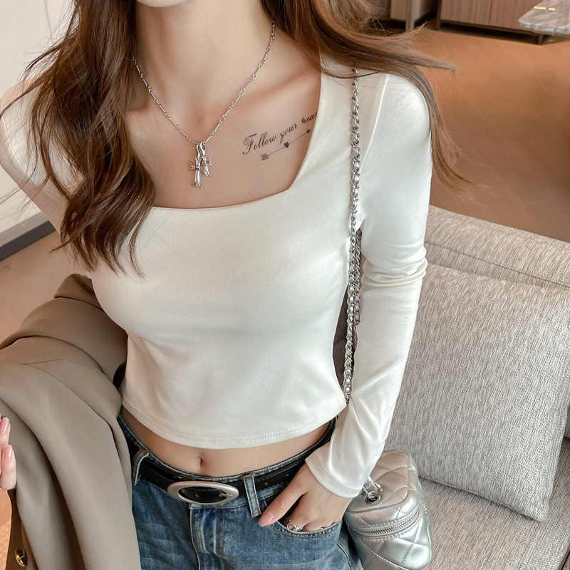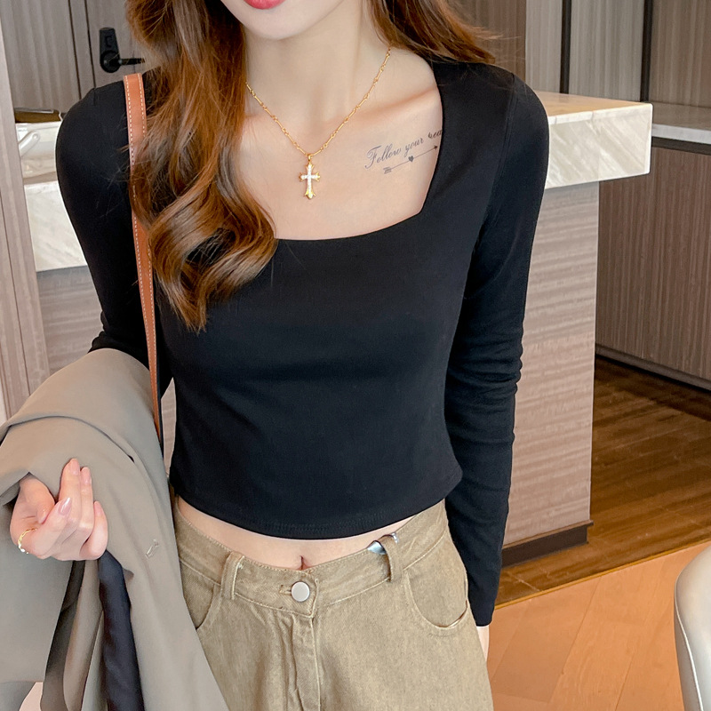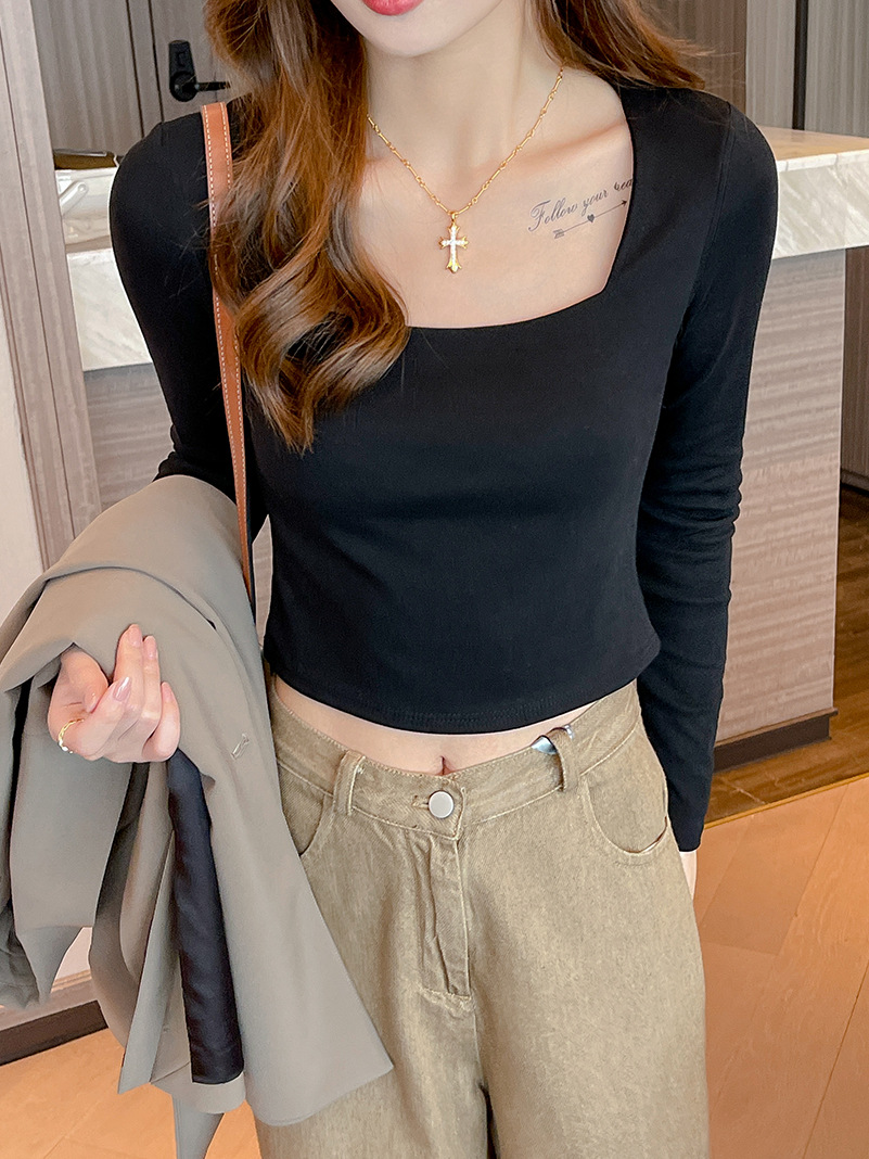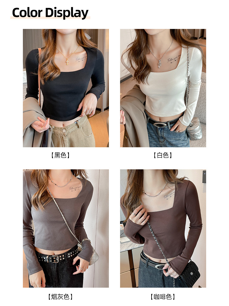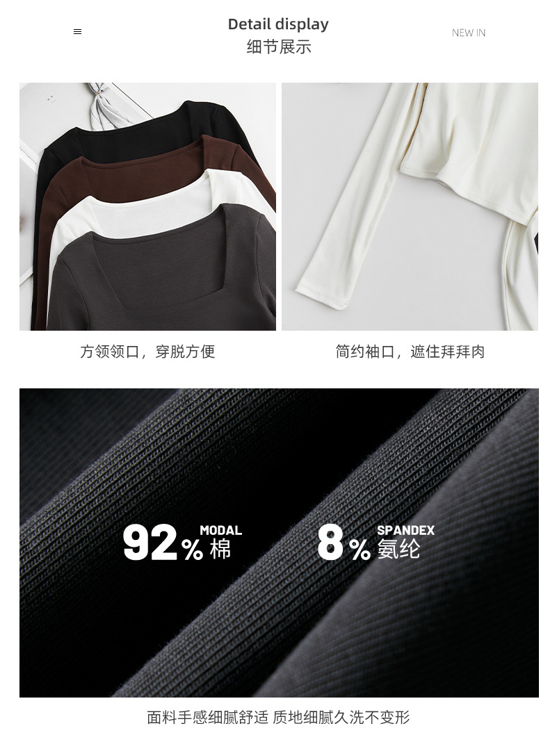 春秋冬季纯棉方领显瘦正肩打底衫女内搭t恤可外穿高级感长袖上衣