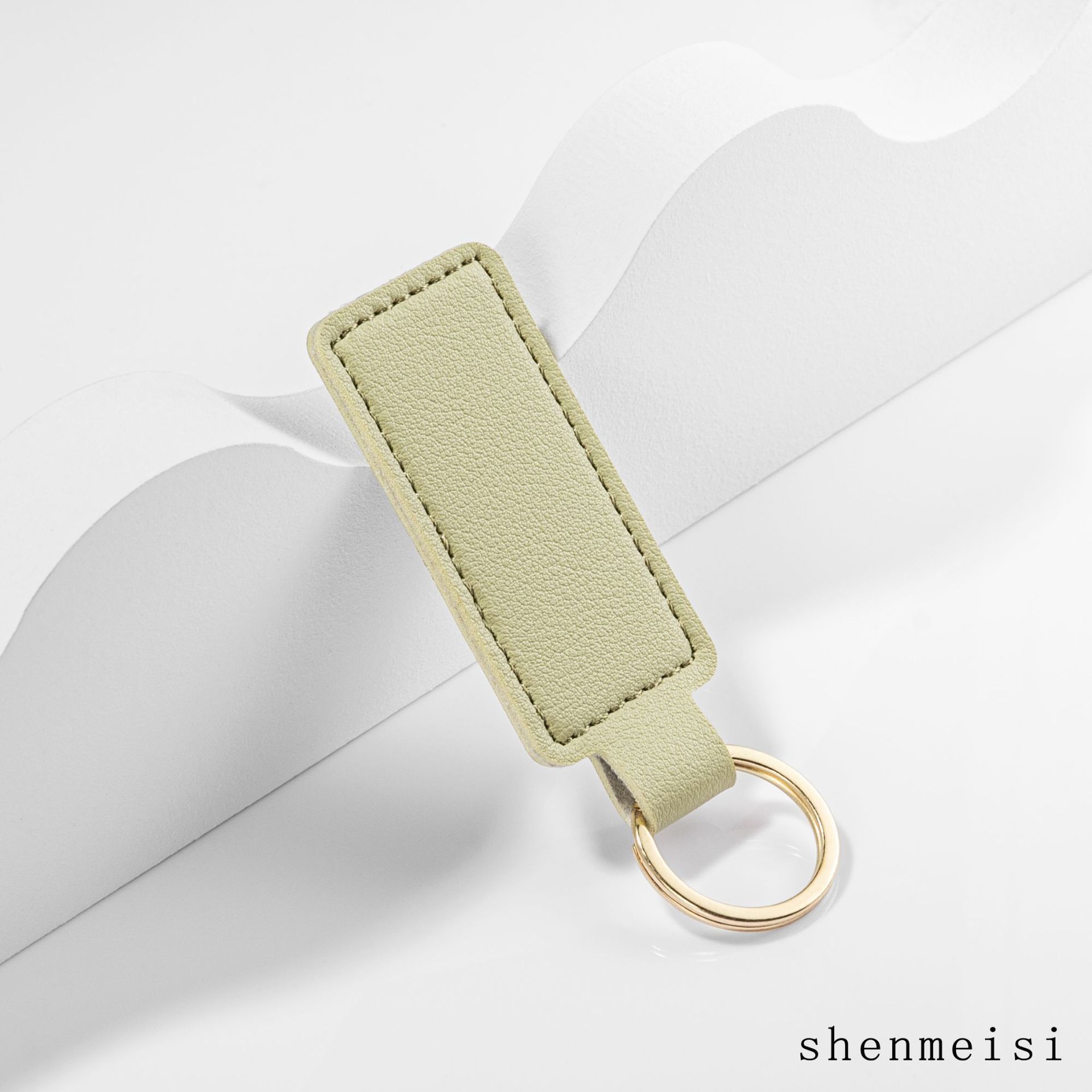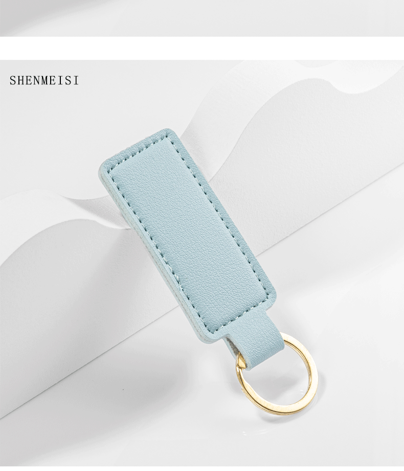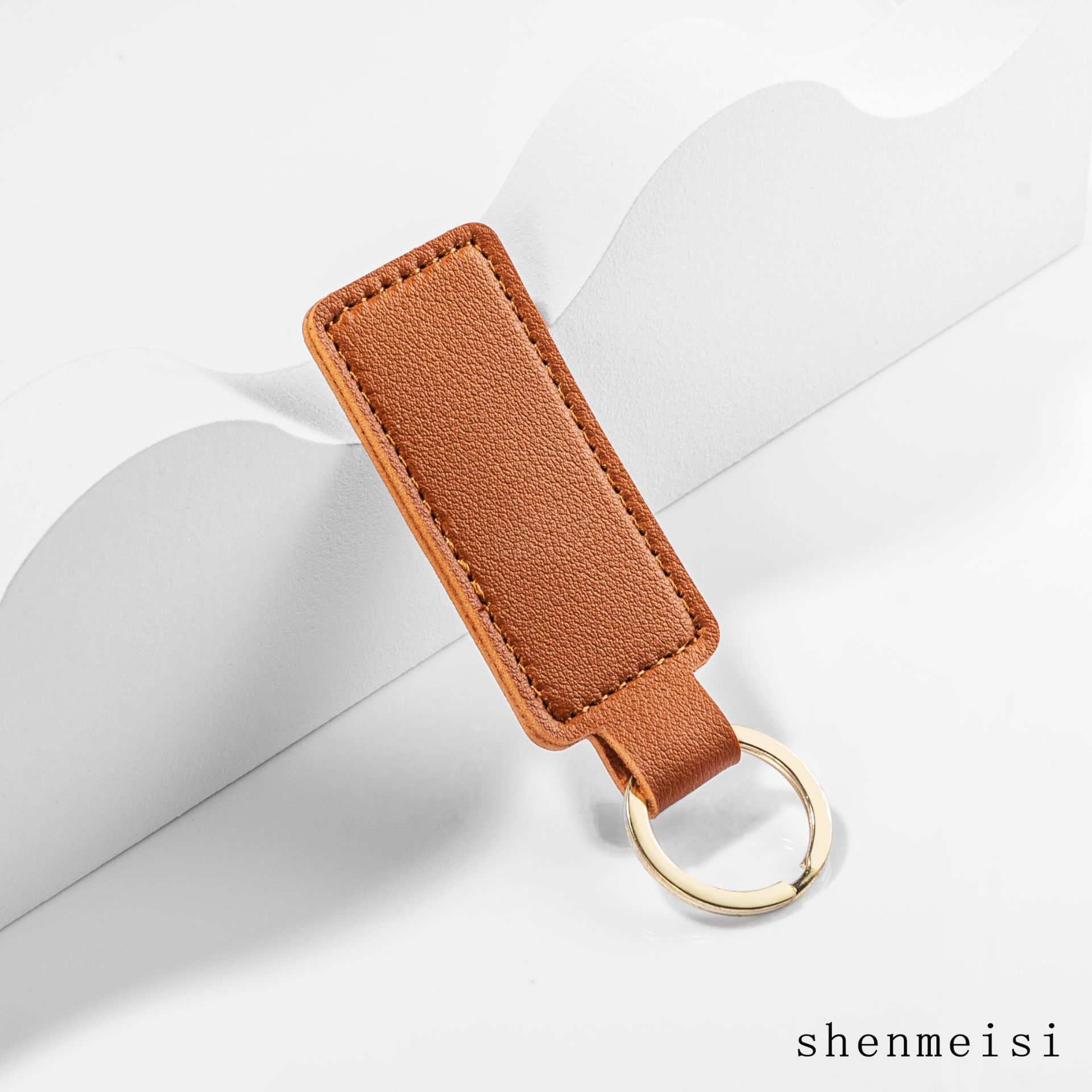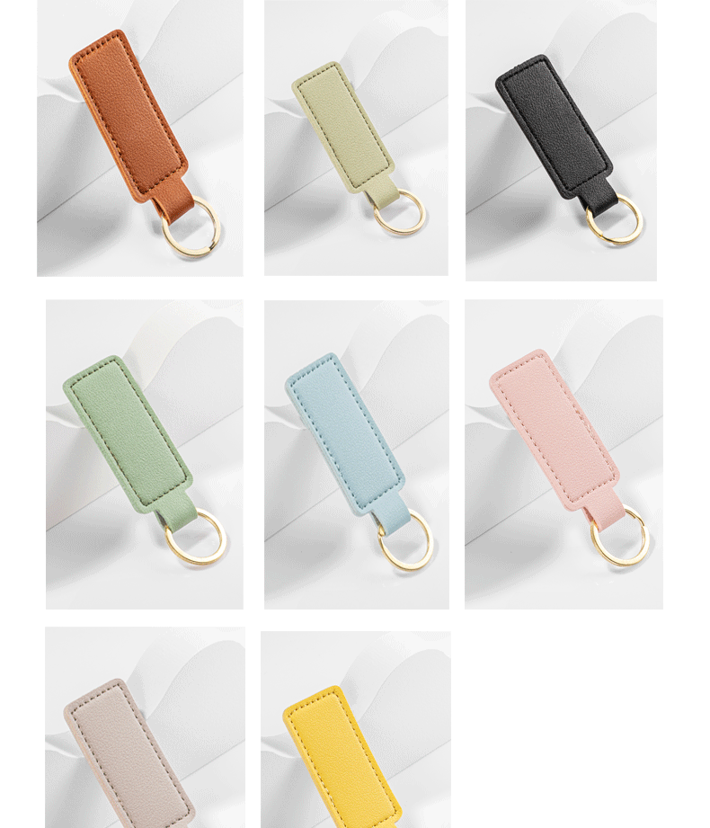 cross-border pu leather key chain fashion simple square leather ring printable logo leather pendant men and women‘s key ring
