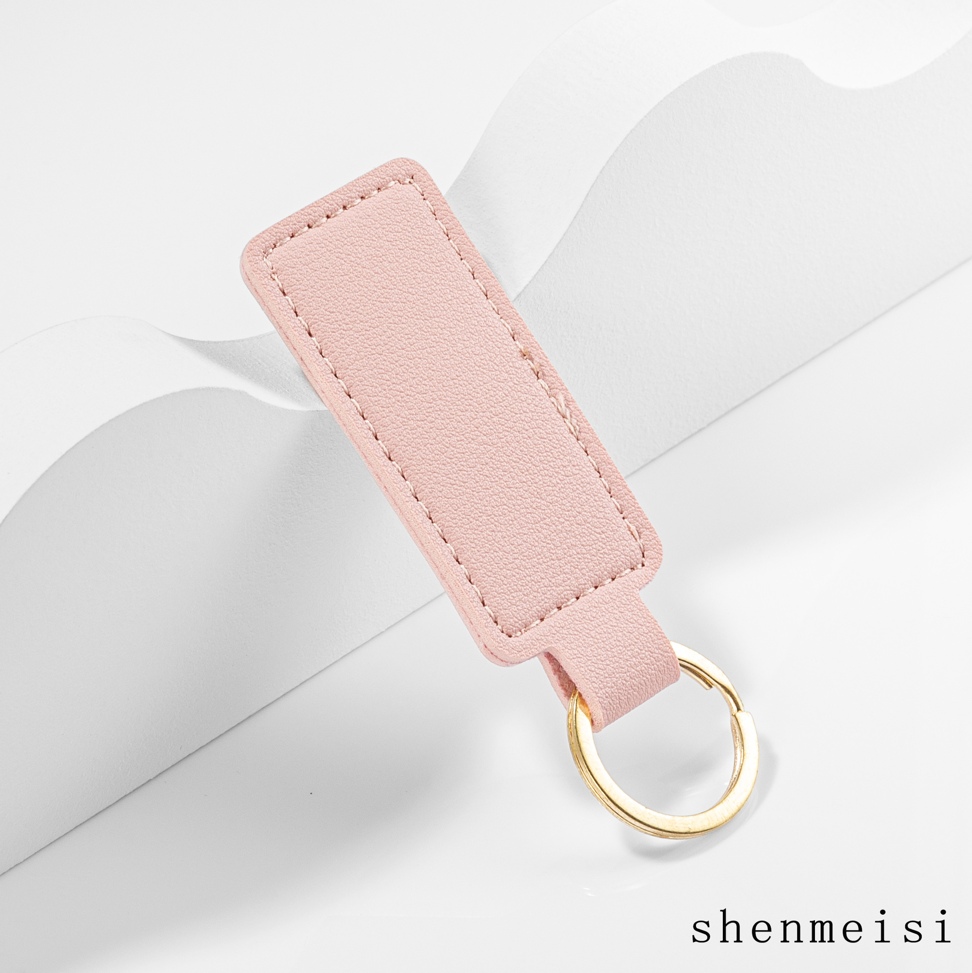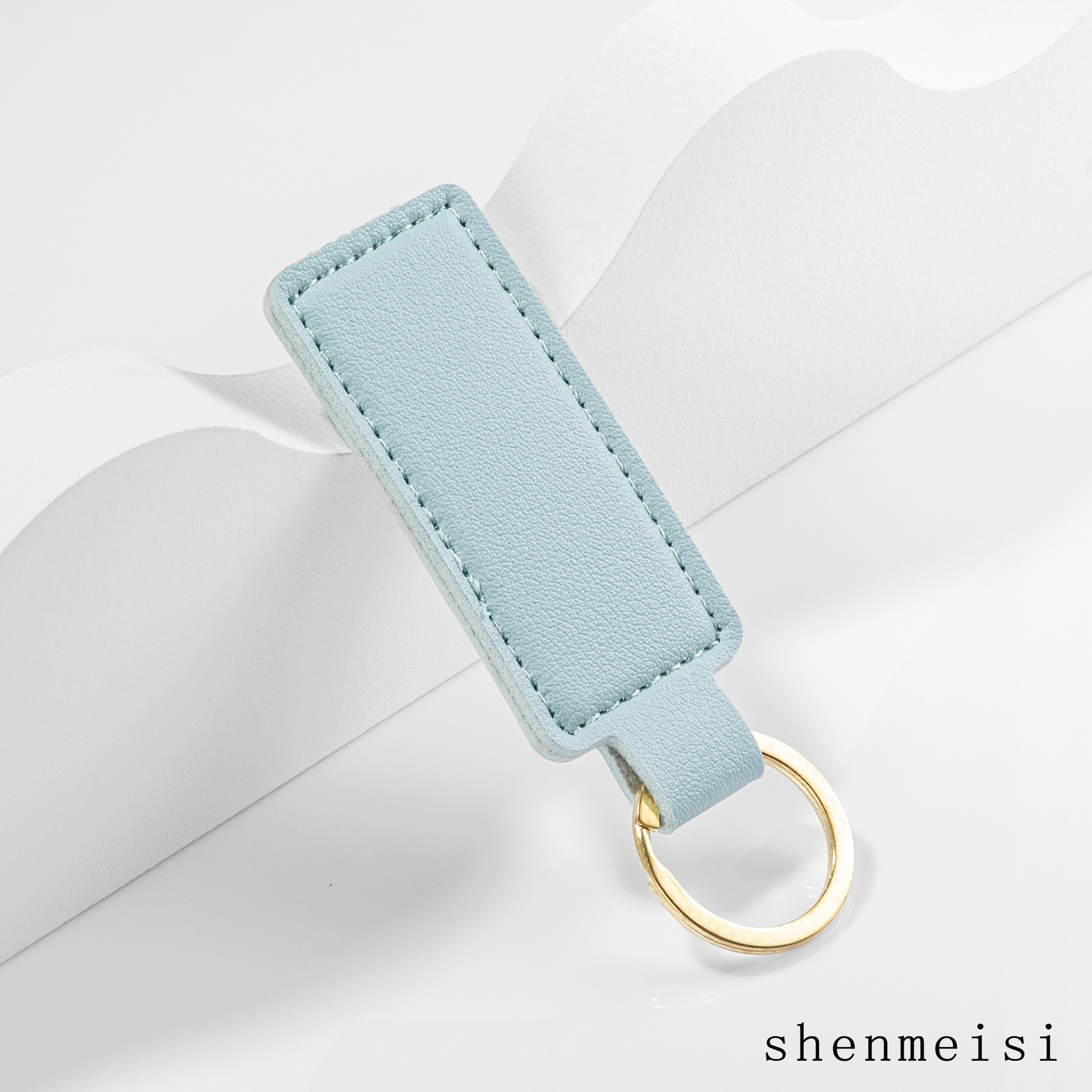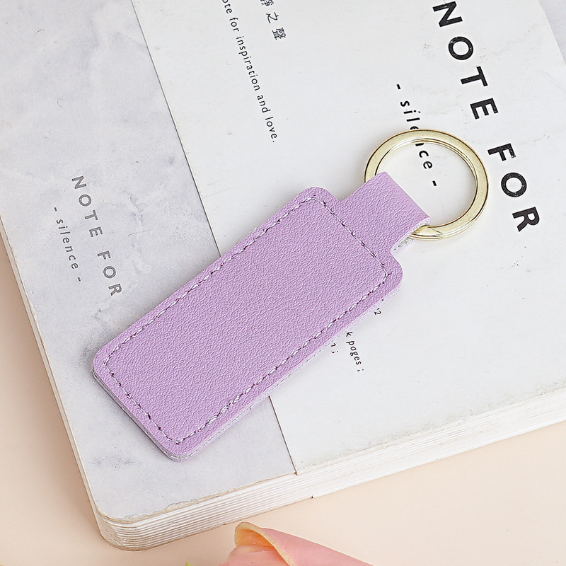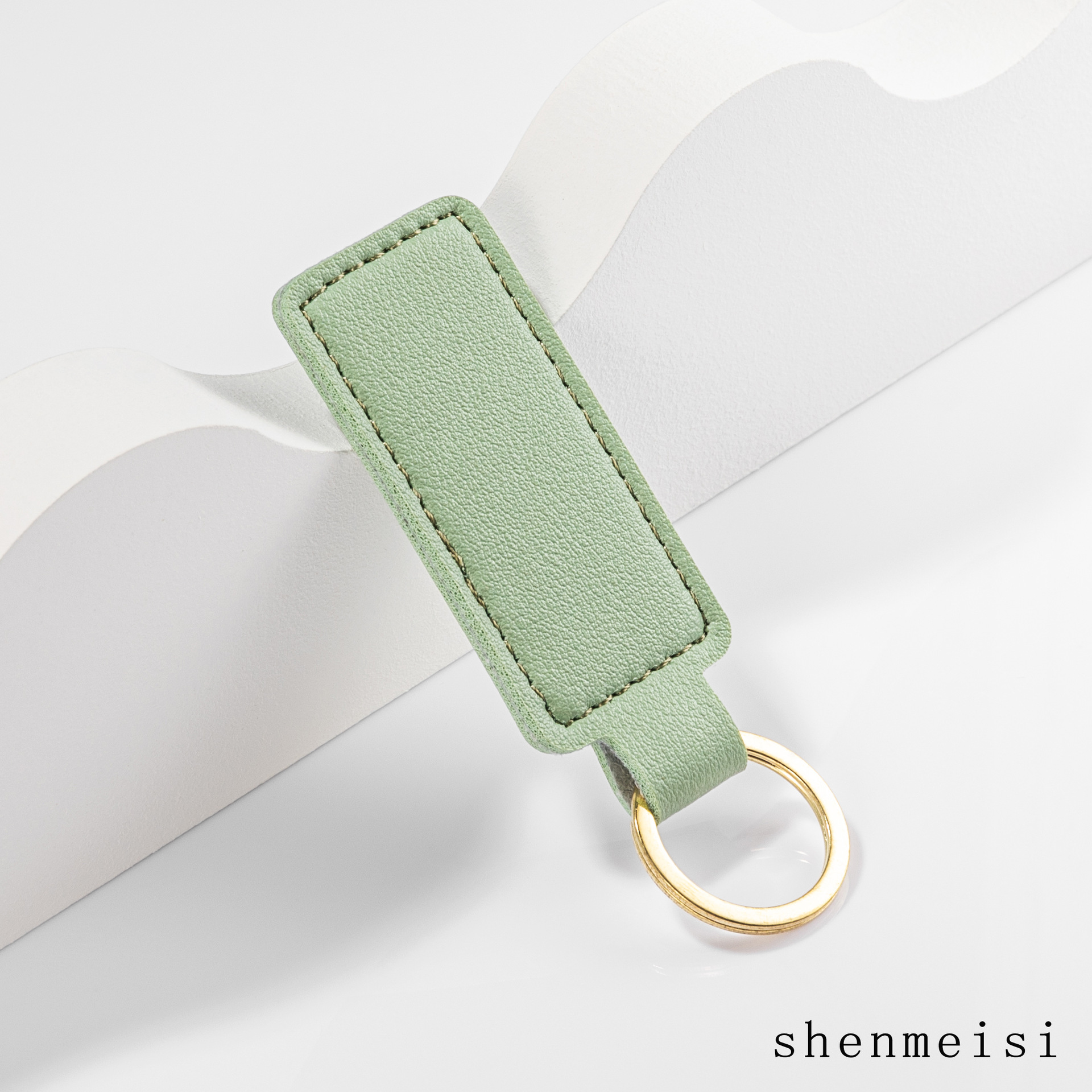 cross-border pu leather key chain fashion simple square leather ring printable logo leather pendant men and women‘s key ring