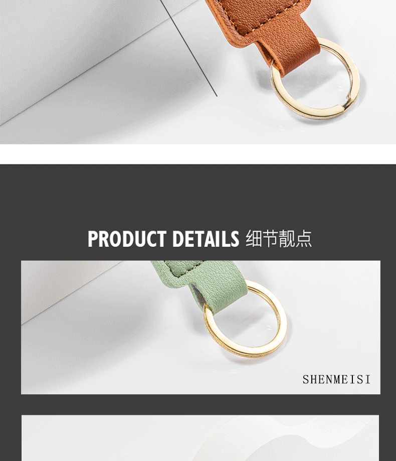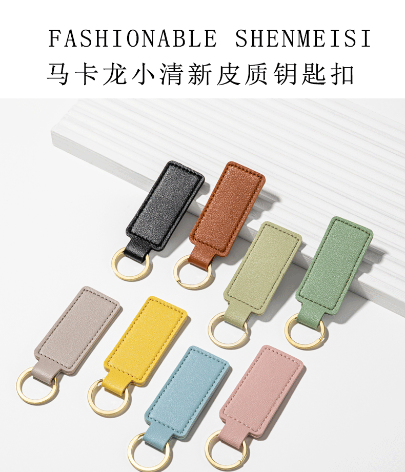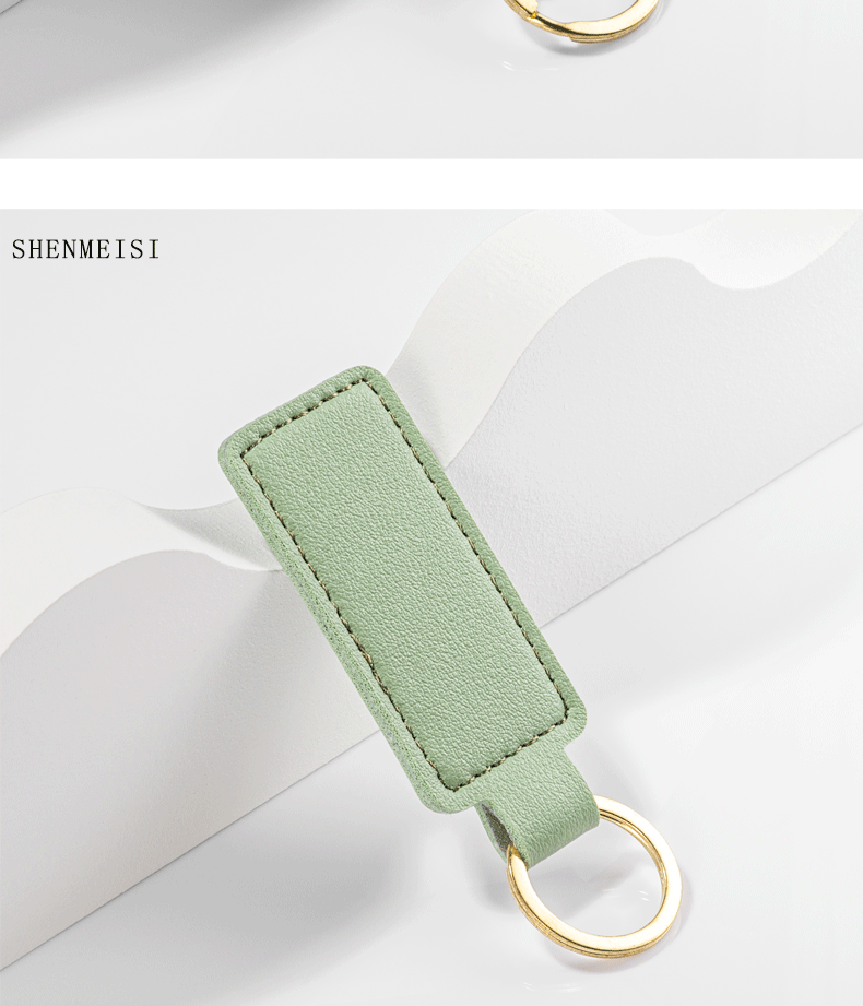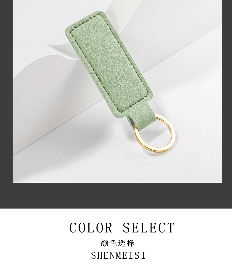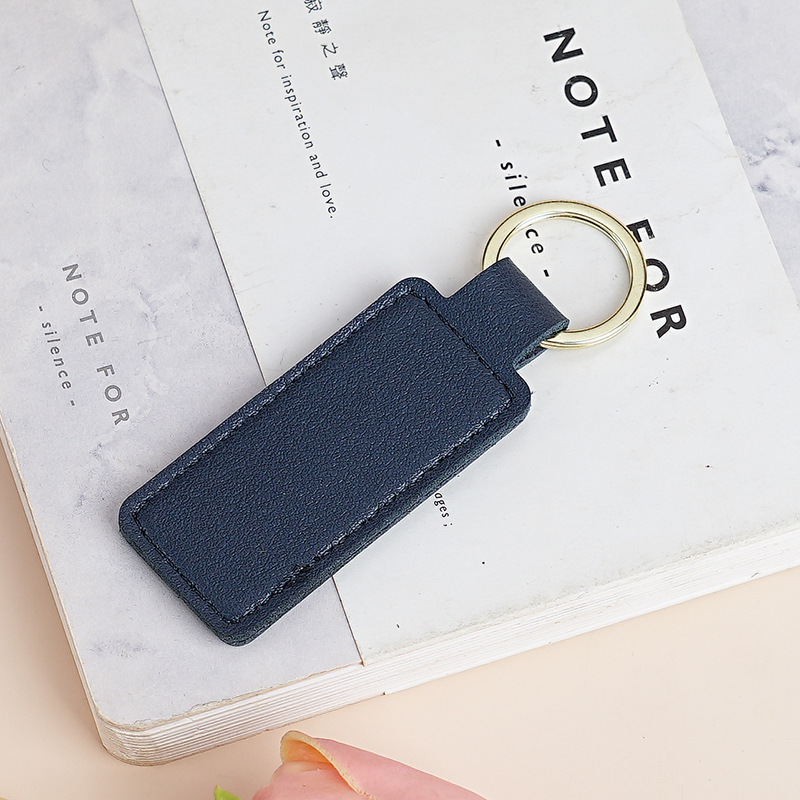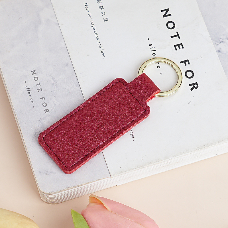 跨境pu皮革钥匙扣时尚简约方形皮扣可印logo皮质挂件男女钥匙圈
