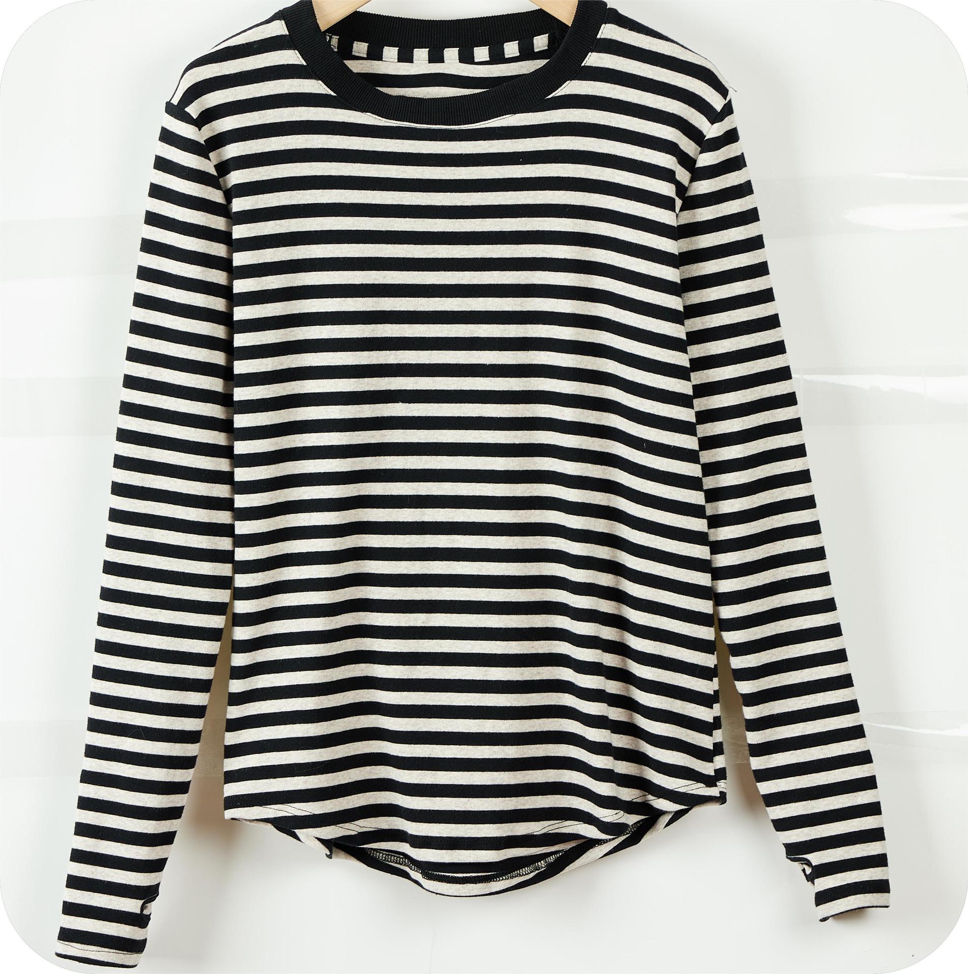 Q2024新款条纹t恤女长袖春秋小衫上衣内搭打底衫秋季女装女式T