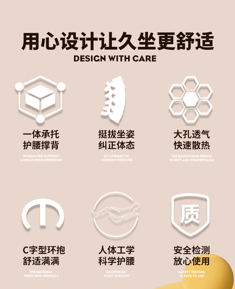 护腰坐垫办公室护腰靠垫坐垫人体工学坐姿椅腰靠靠背一体久坐神器