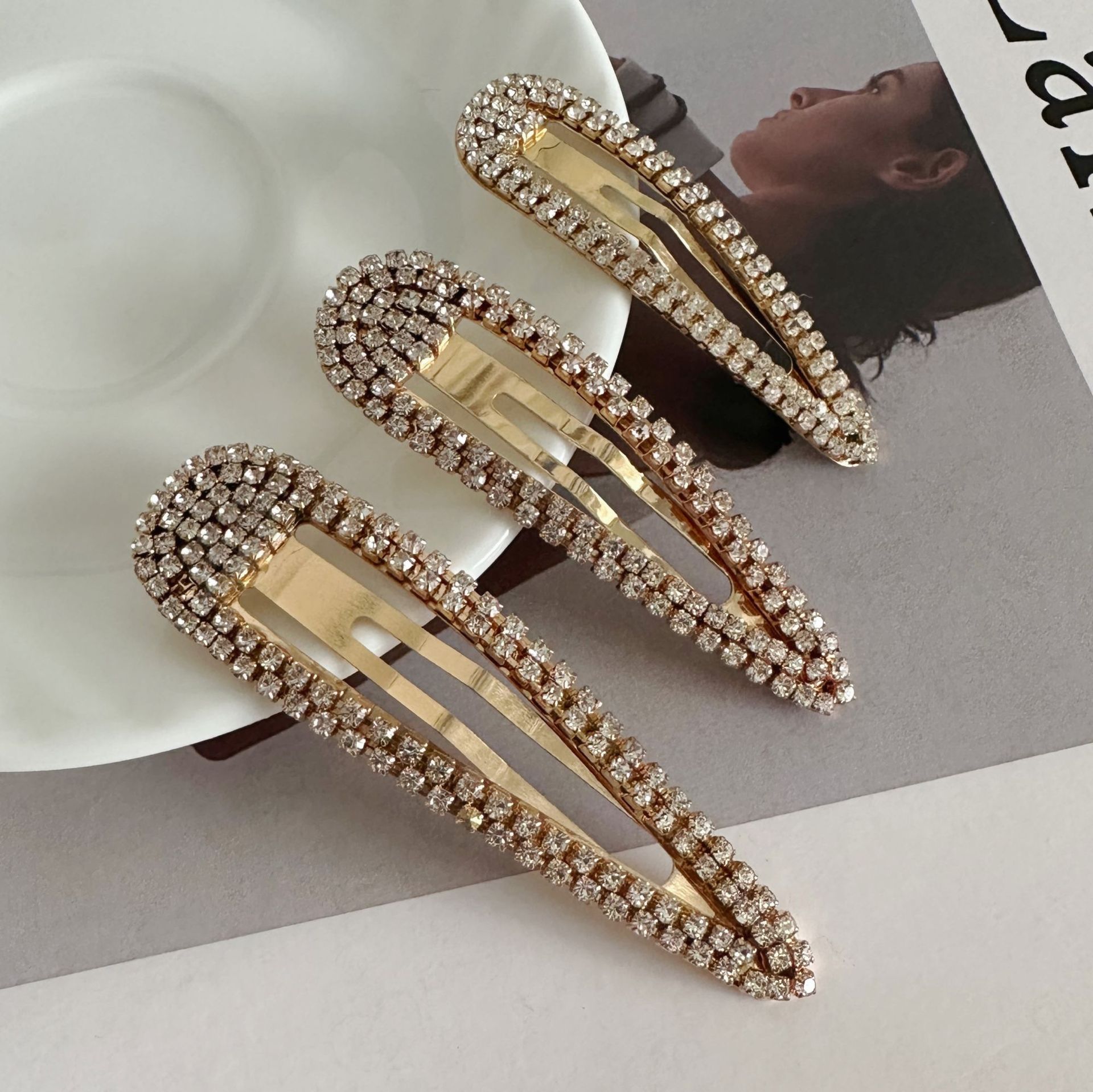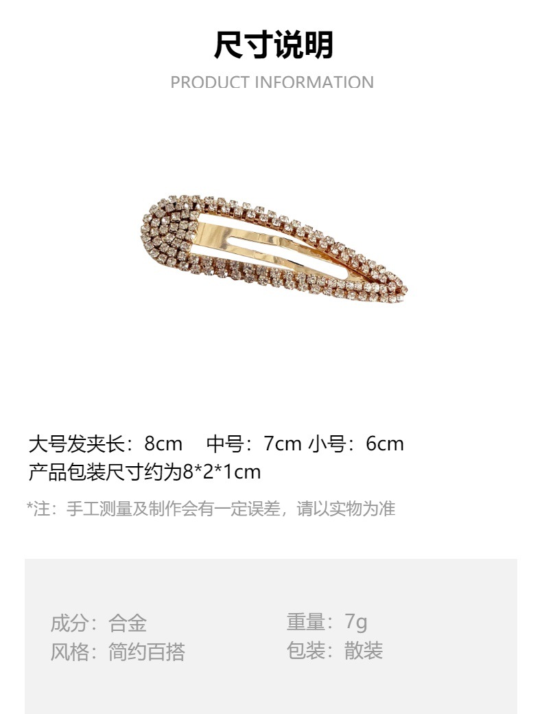 简约时尚气质高级满钻侧边碎发夹 韩式百搭几何水钻bb夹发饰批发