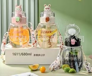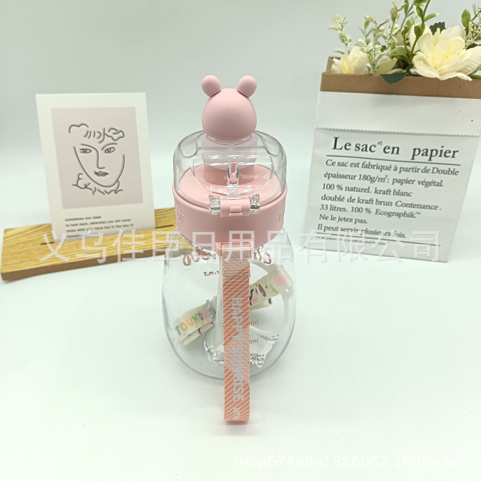 2025跨境热销新品熊熊塑料水壶儿童喝水杯硅胶嘴吸管杯潮酷大容量