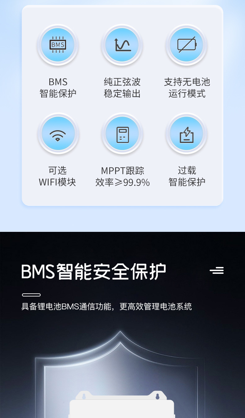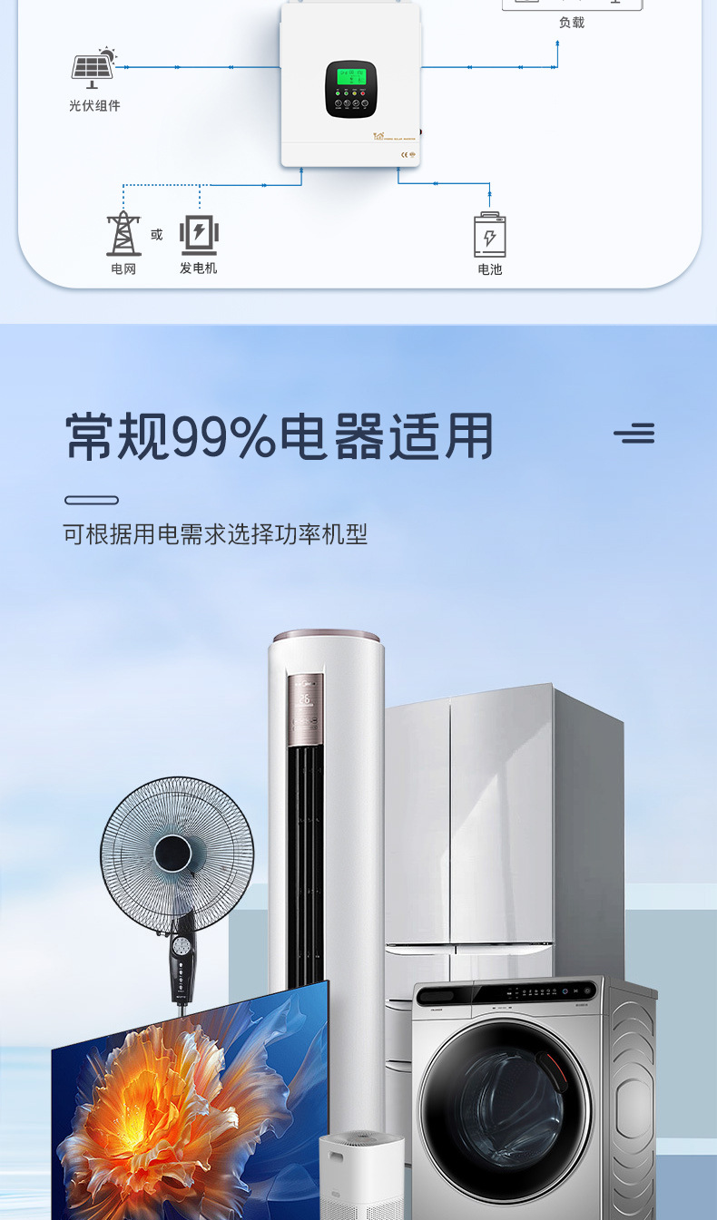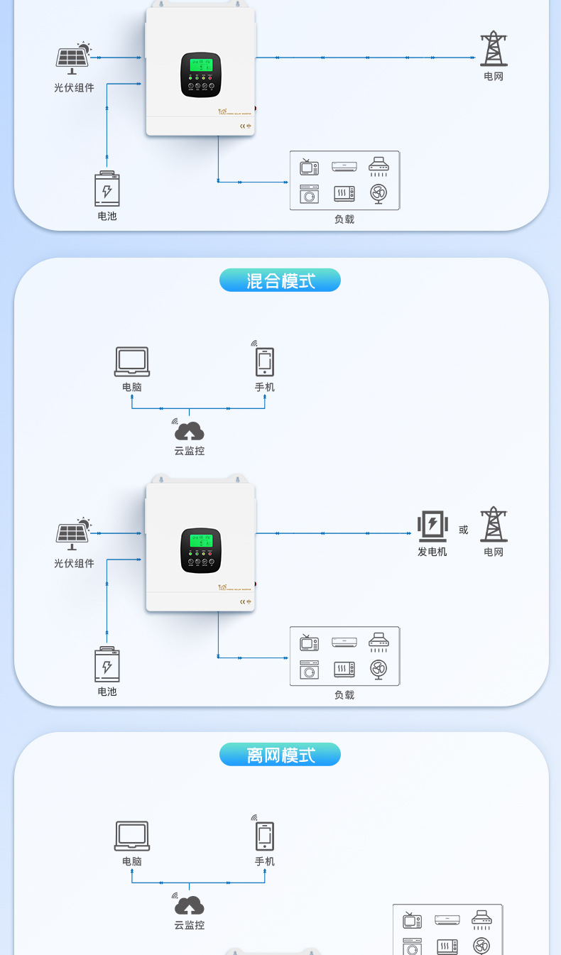 并离网一体机太阳能逆变器纯正弦波光伏4.3kw储能混合逆变器