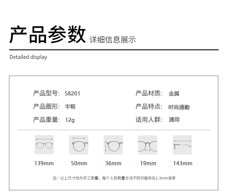 超轻纯欲下半框眼镜近视女58201椭圆倒框眼镜框 丹阳镜架可配度数