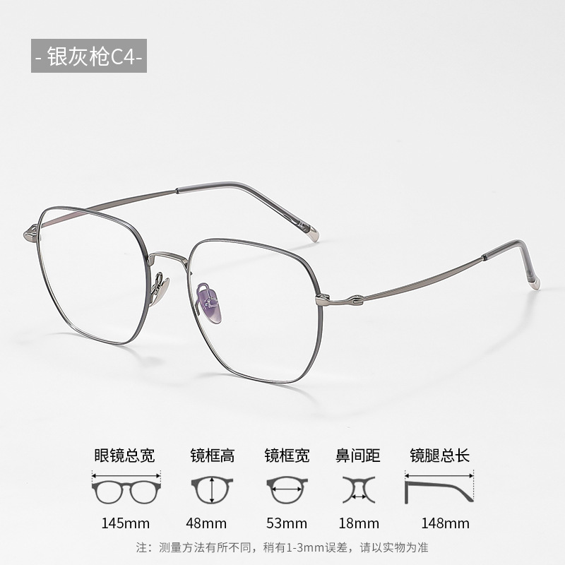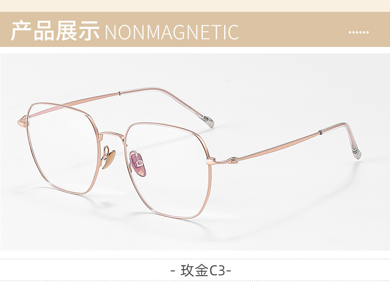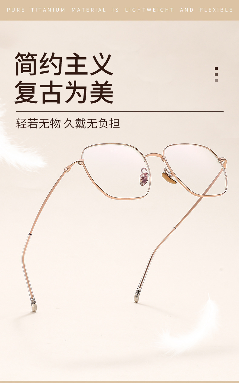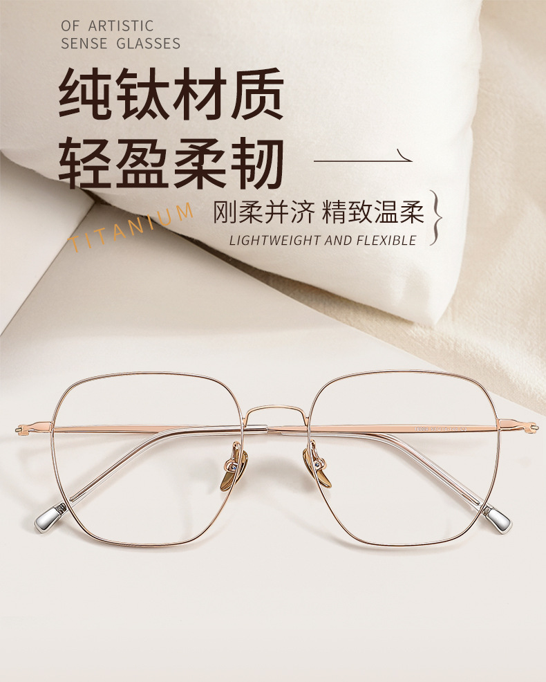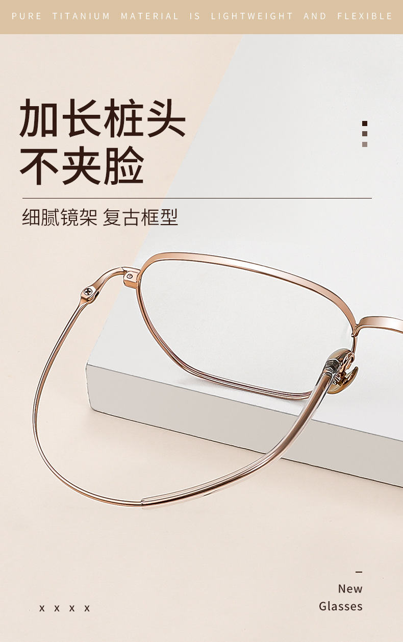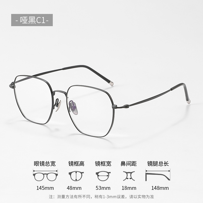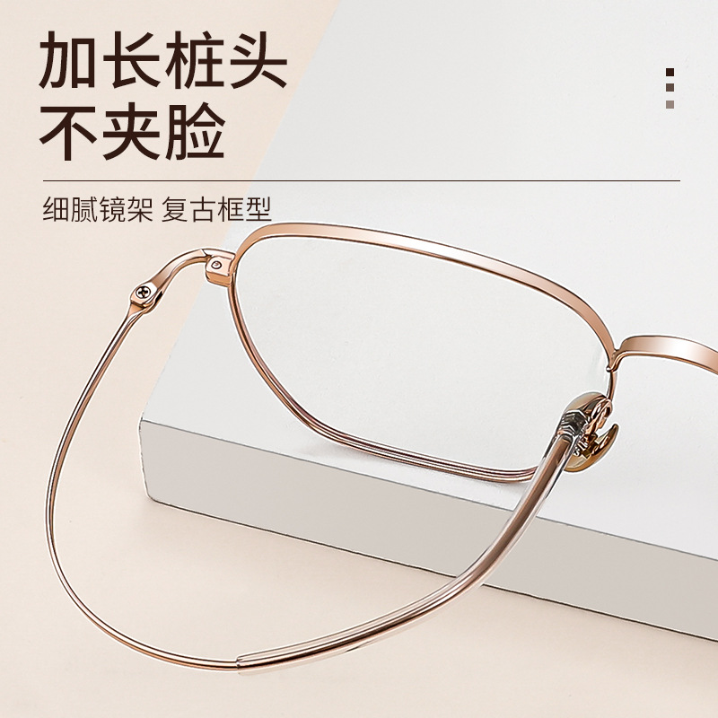 大框53mm金丝眼镜超轻纯钛镜框全钛18004复古大脸多边形眼睛架女