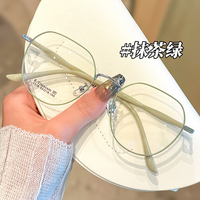 新款眼镜框女成品近视金属超轻素颜黑色圆框平光镜架男高级感8036