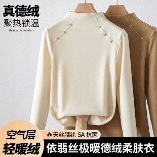 堆堆领打底衫女秋冬2025高领羊绒桑蚕丝德绒加绒加厚内搭洋气上衣