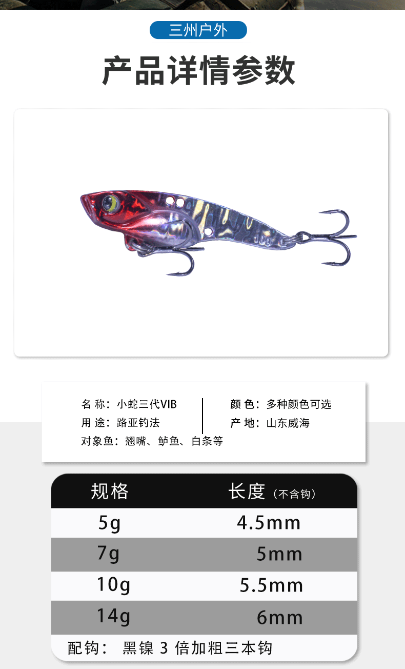 小蛇薄背路亚饵VIB鱼饵沉水金属远投颤泳翘嘴鲈鱼鳜鱼vib假饵