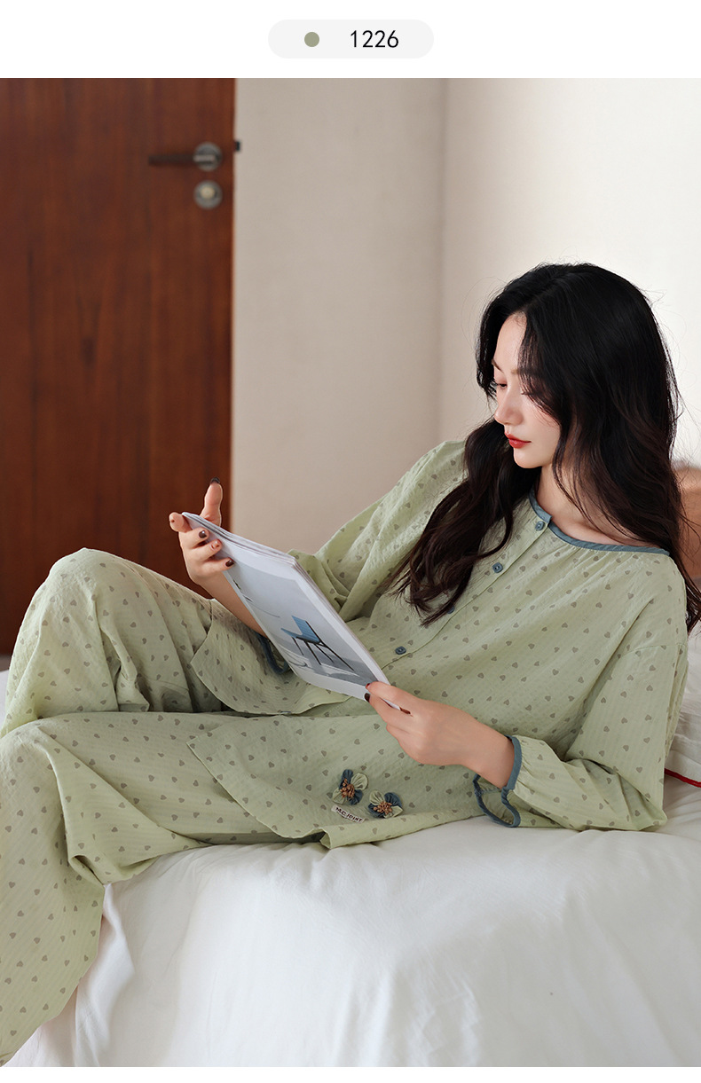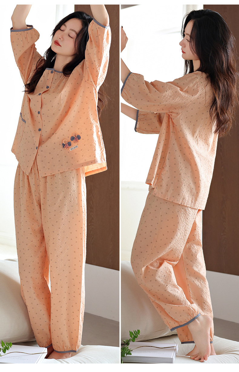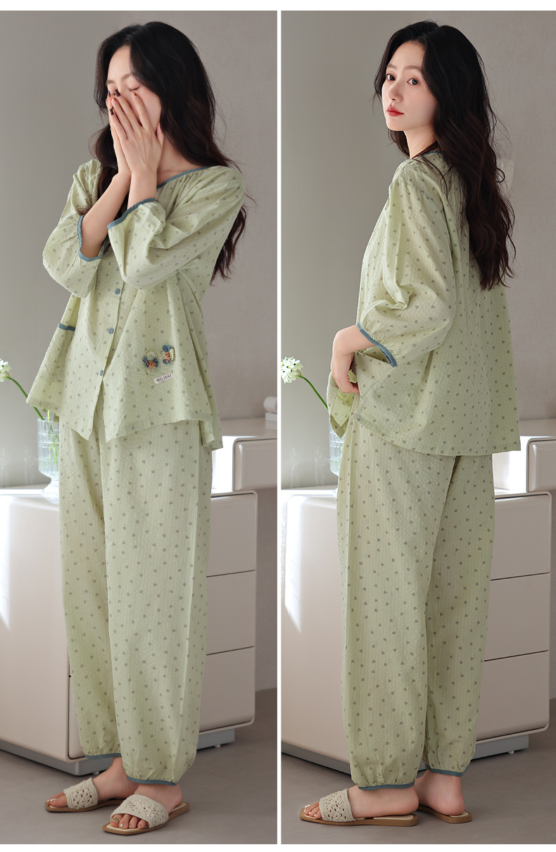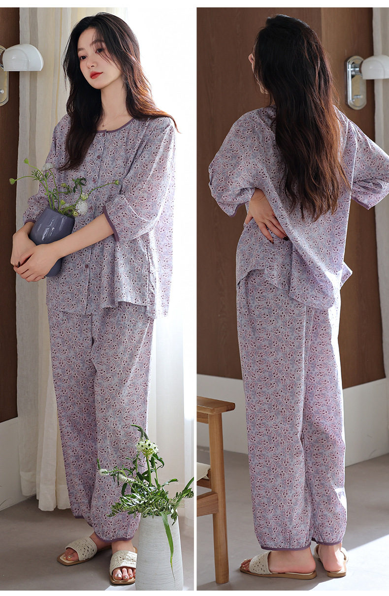 梭织纯棉纱布睡衣女春夏季七分袖九分裤2025年新款夏天全棉家居服