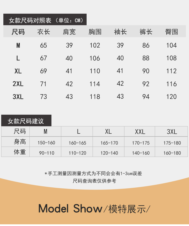 | 3xl recommended 80.00 kg-90.00 kg(3XL 建议160-180斤) | USD $0.0 | 829 set available |