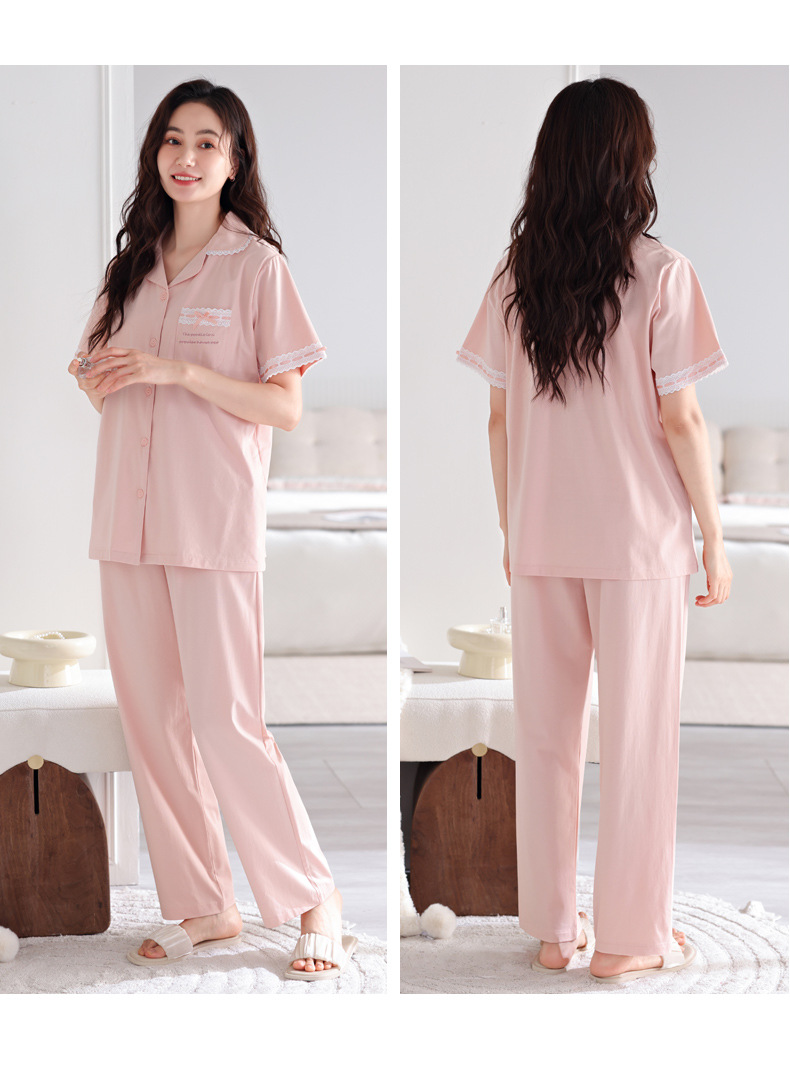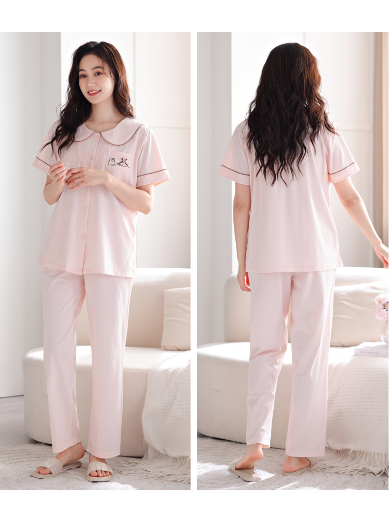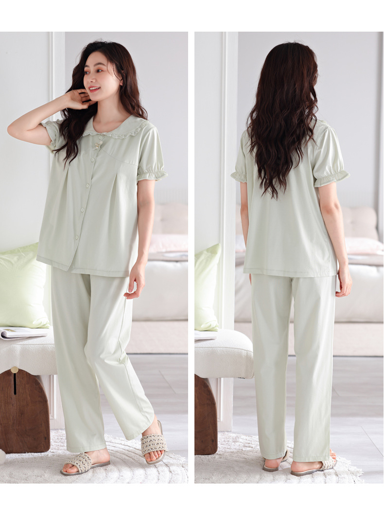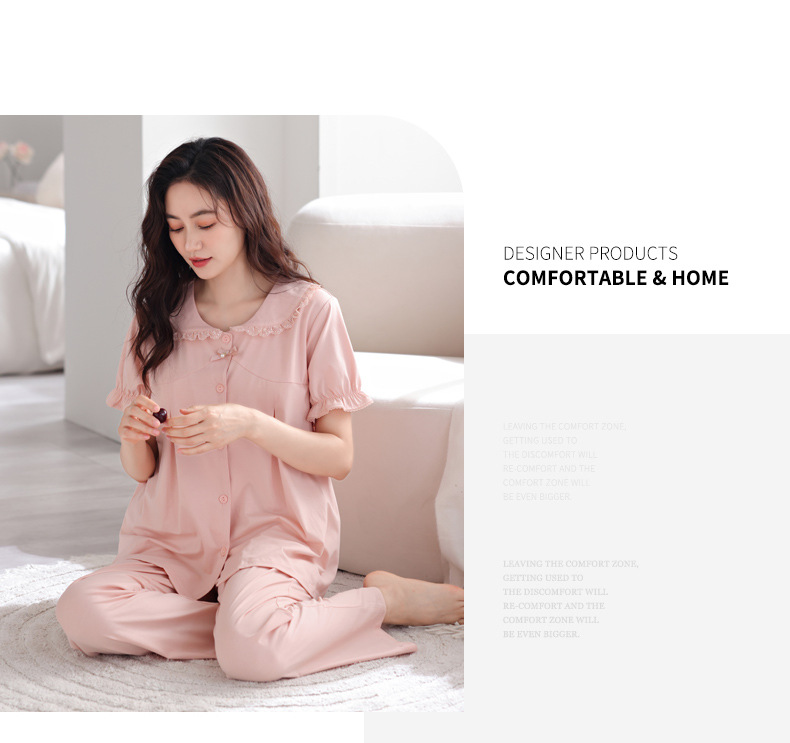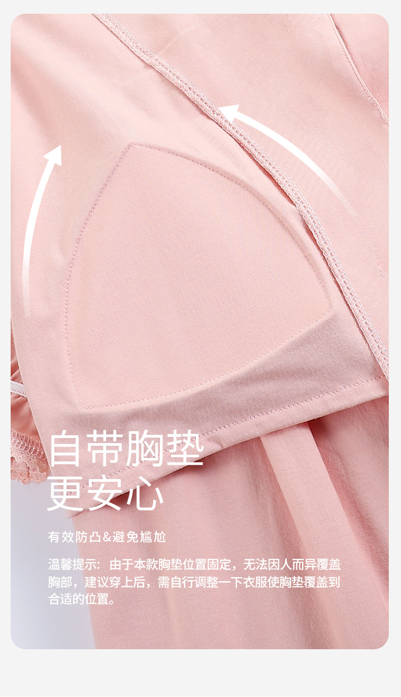 带胸垫睡衣女夏天凉感纯棉短袖长裤可外穿一体式防凹点家居服套装