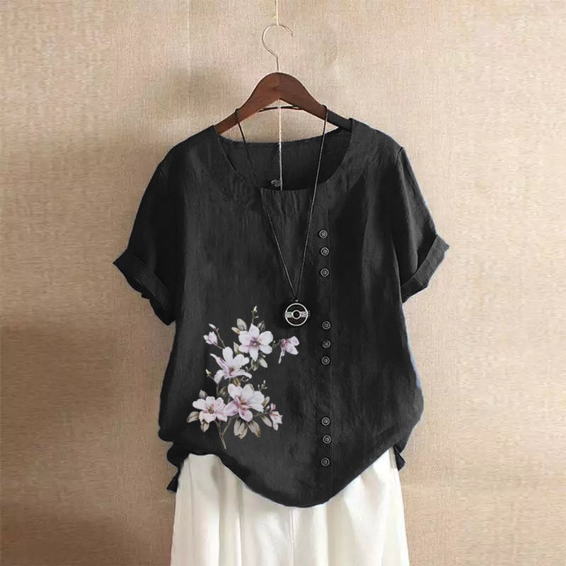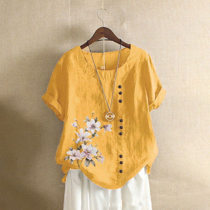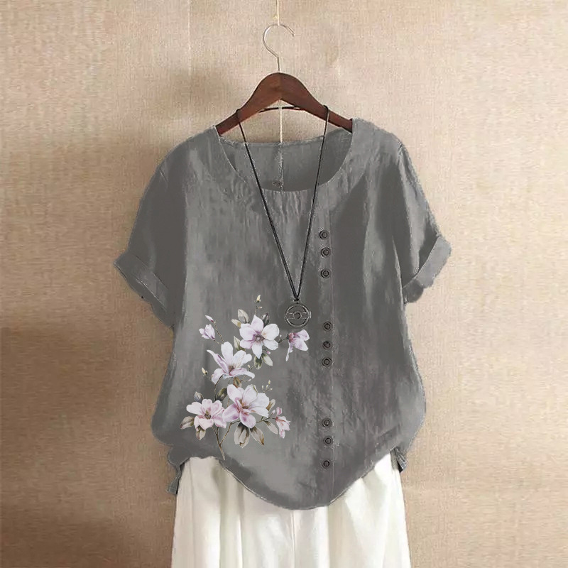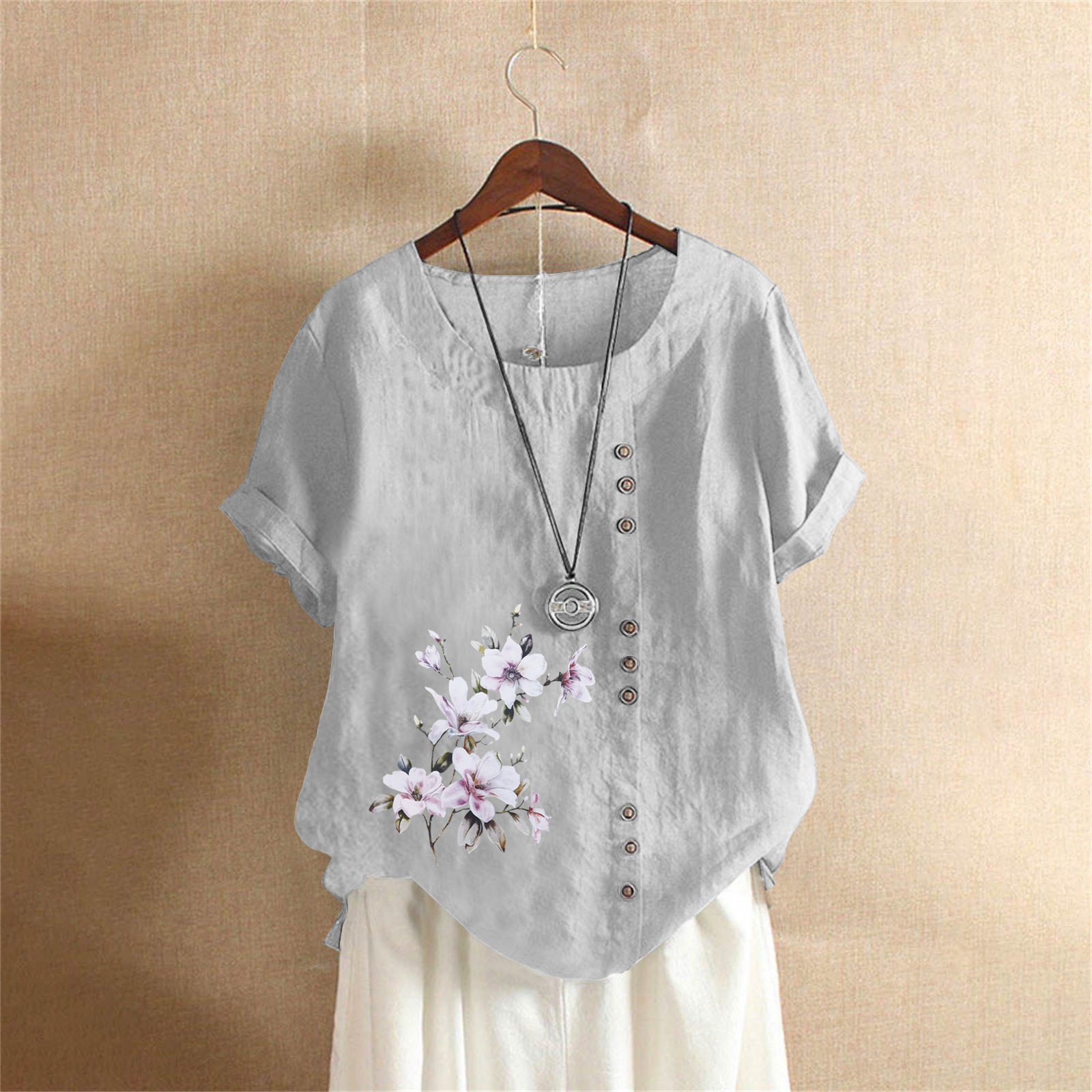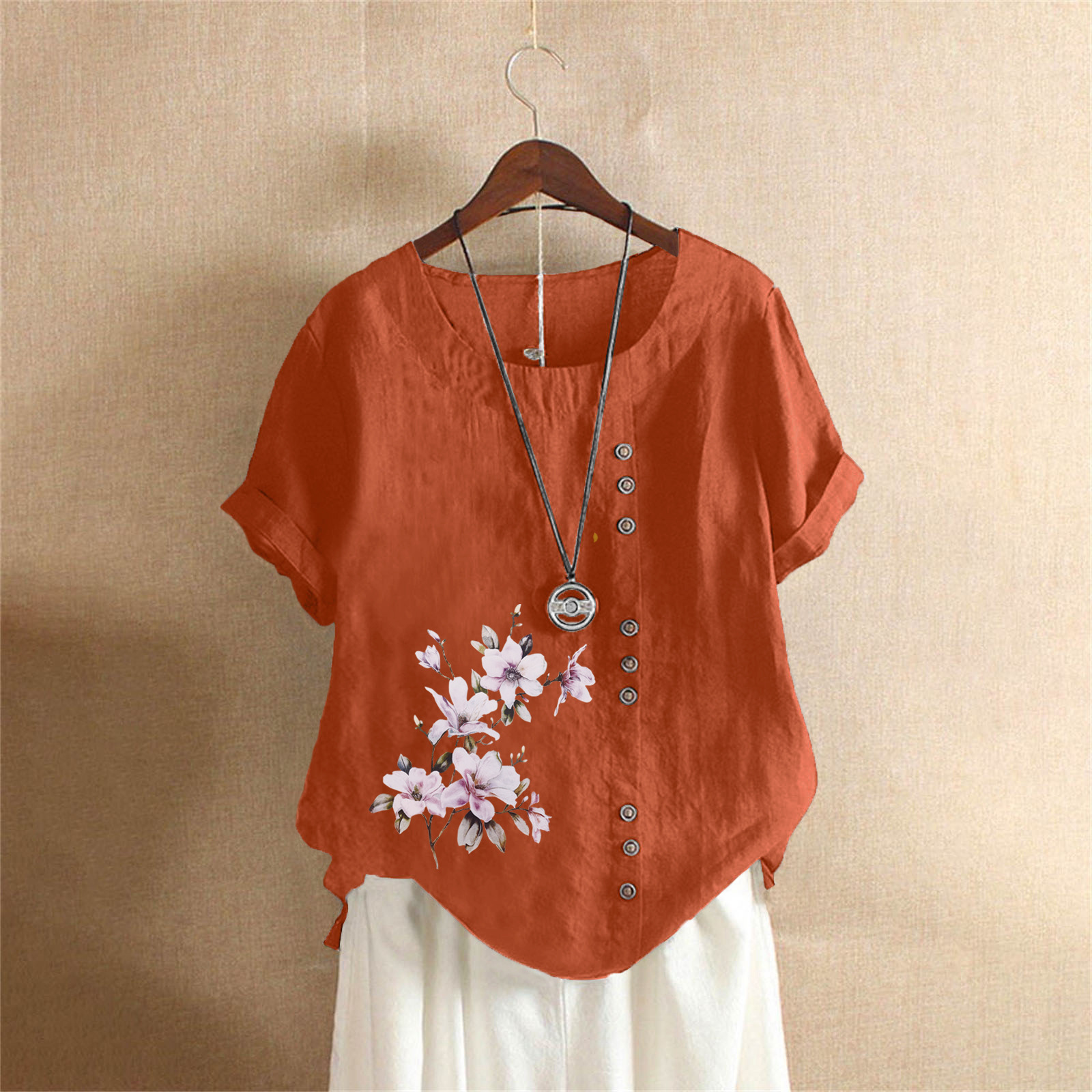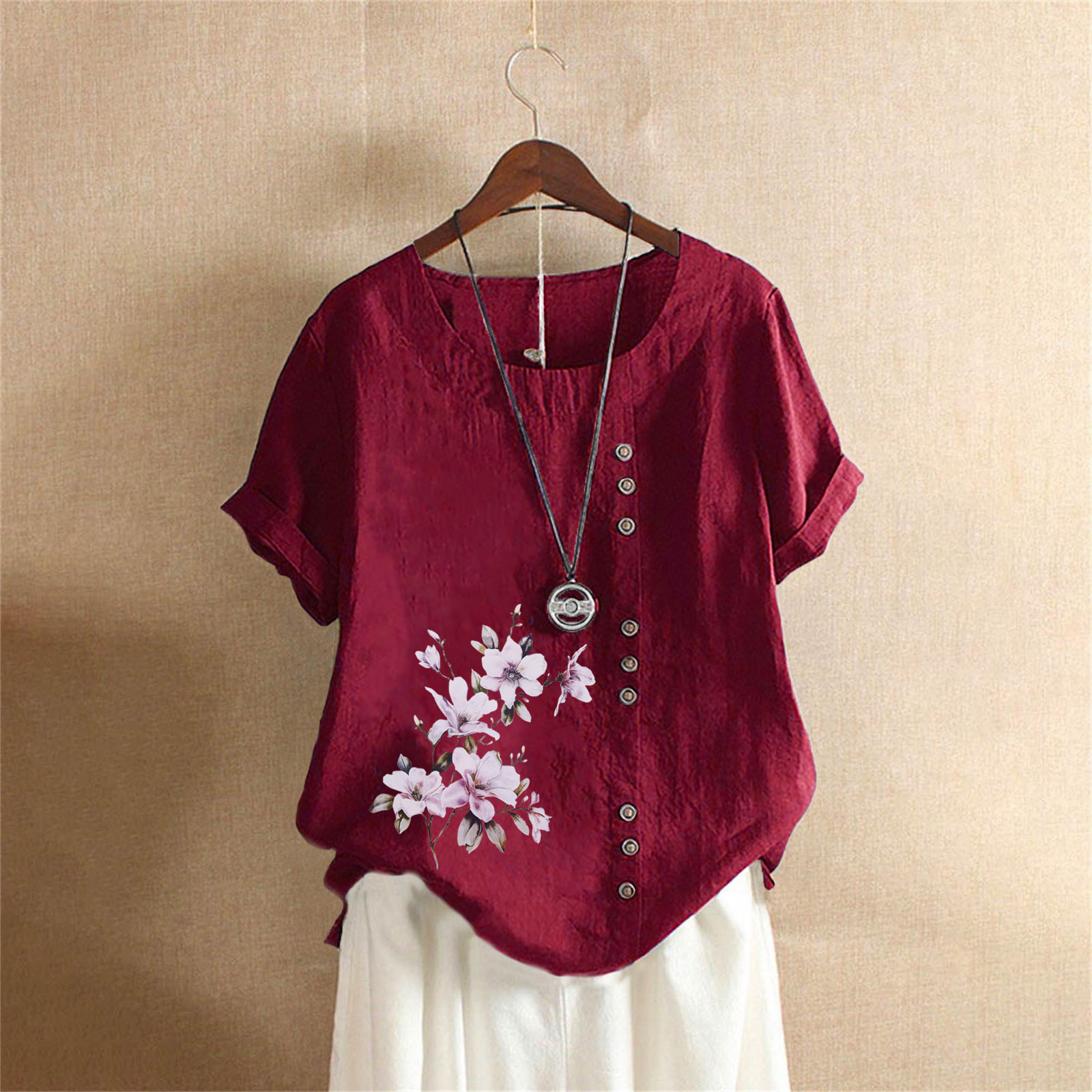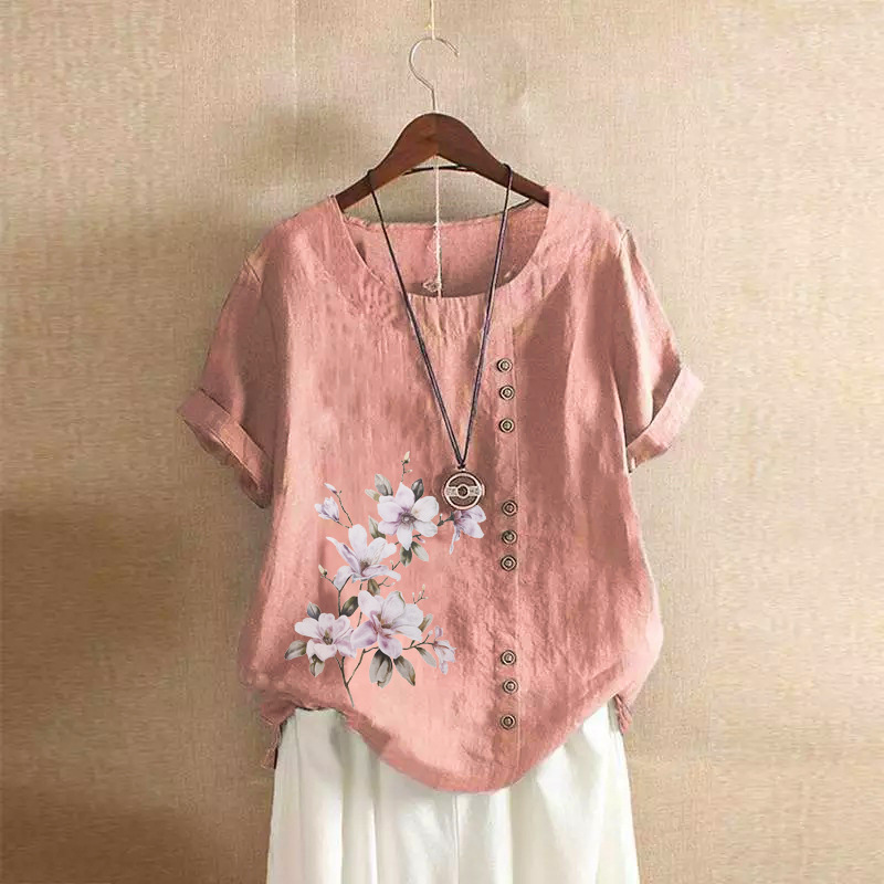 棉麻女装夏秋复古休闲宽松棉麻短袖T恤棉麻女装大码AMZ WISH 爆款