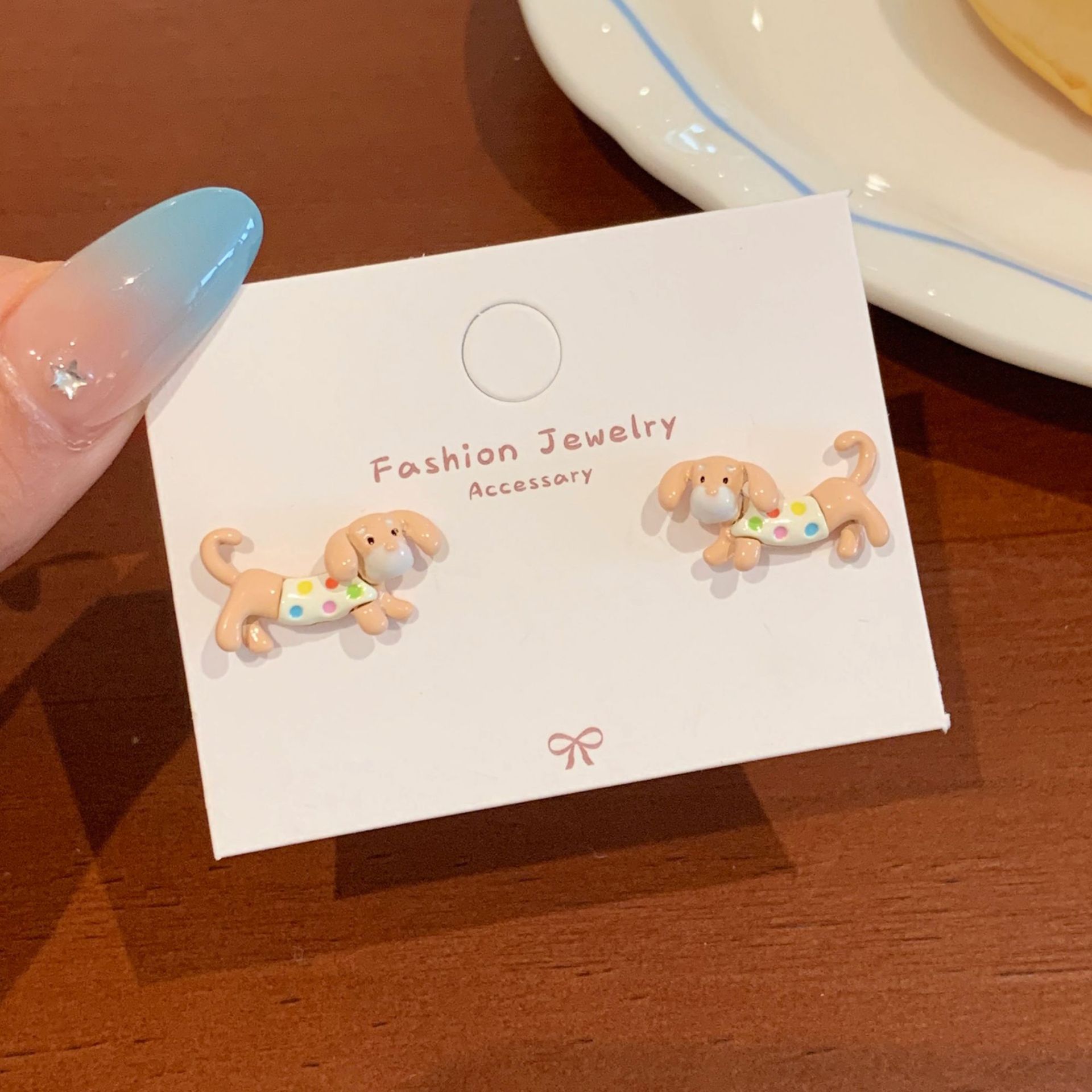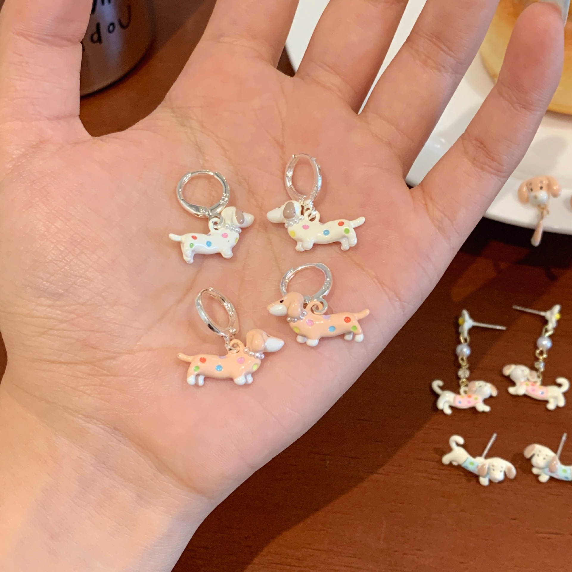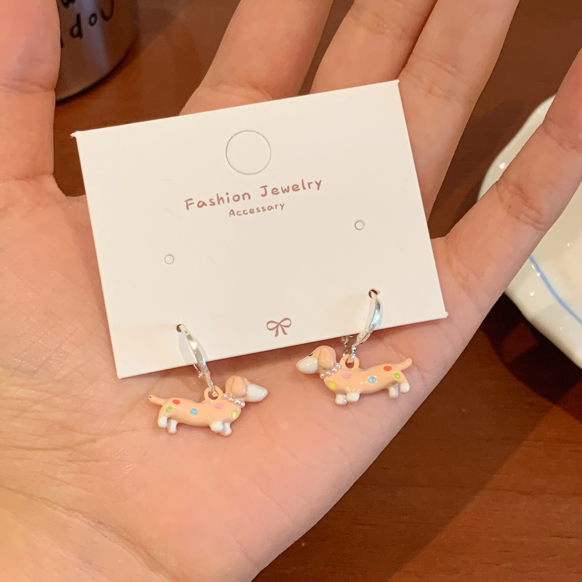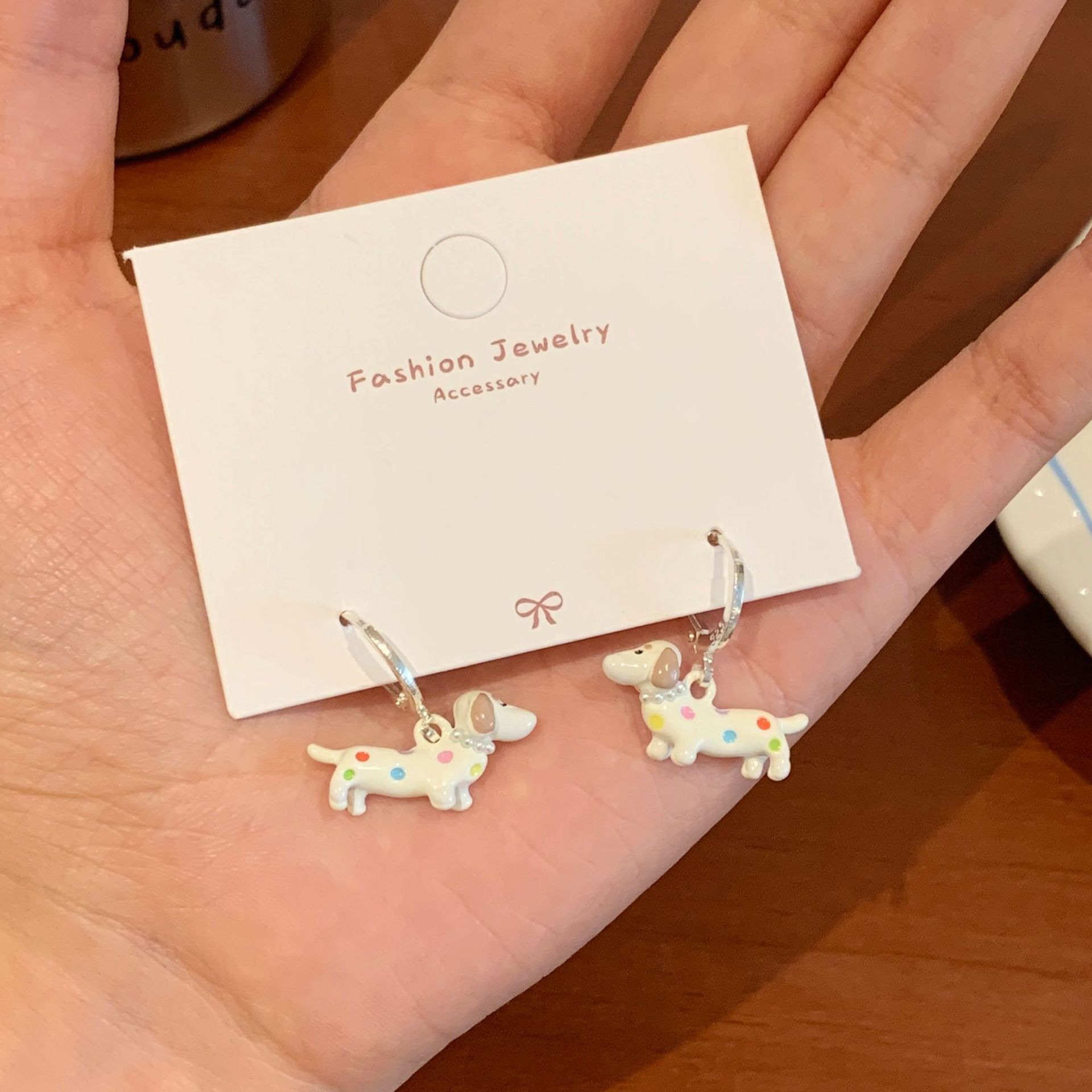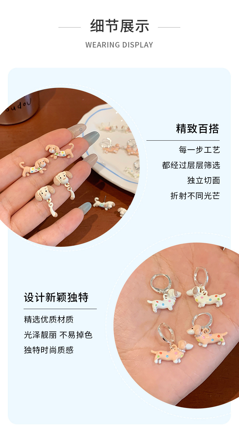 童趣可爱波点腊肠狗耳环女银针小众独特设计耳扣卡通彩色学生耳饰