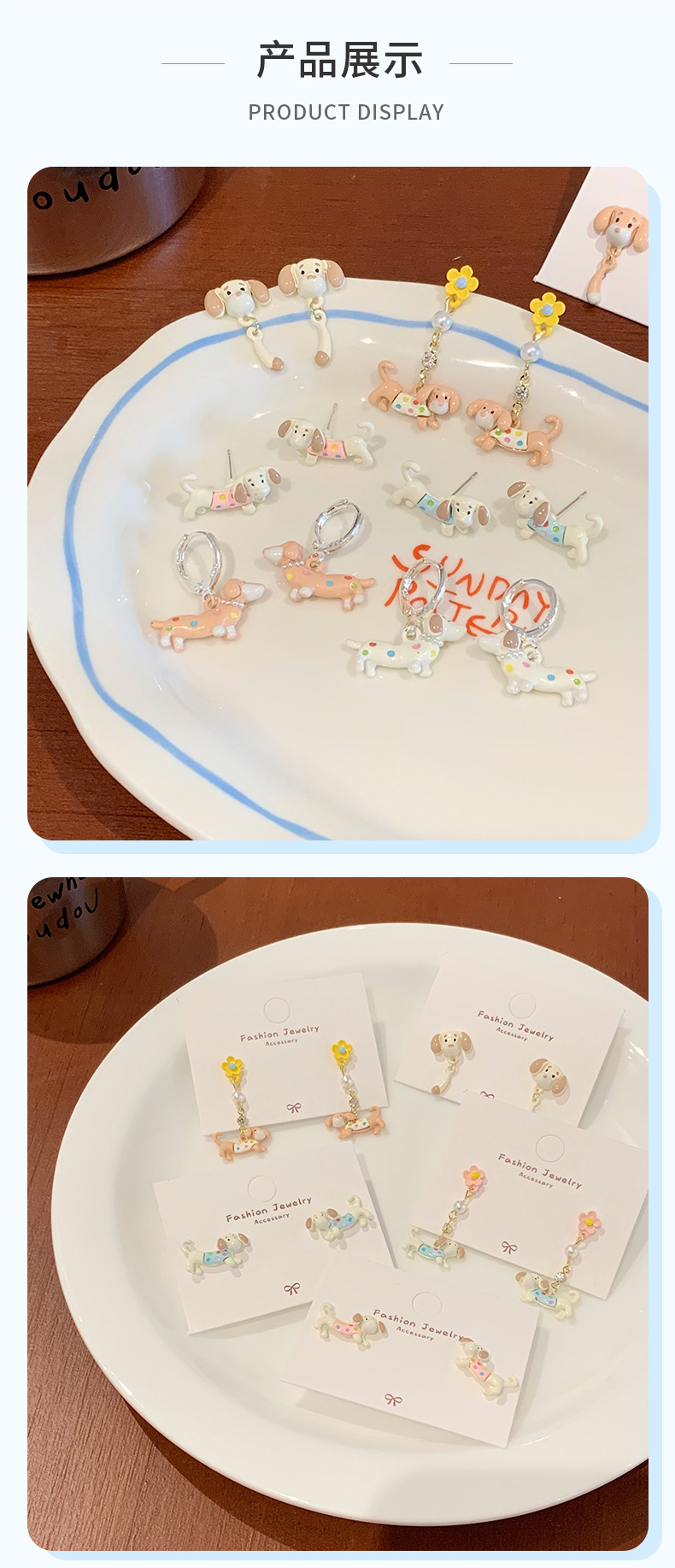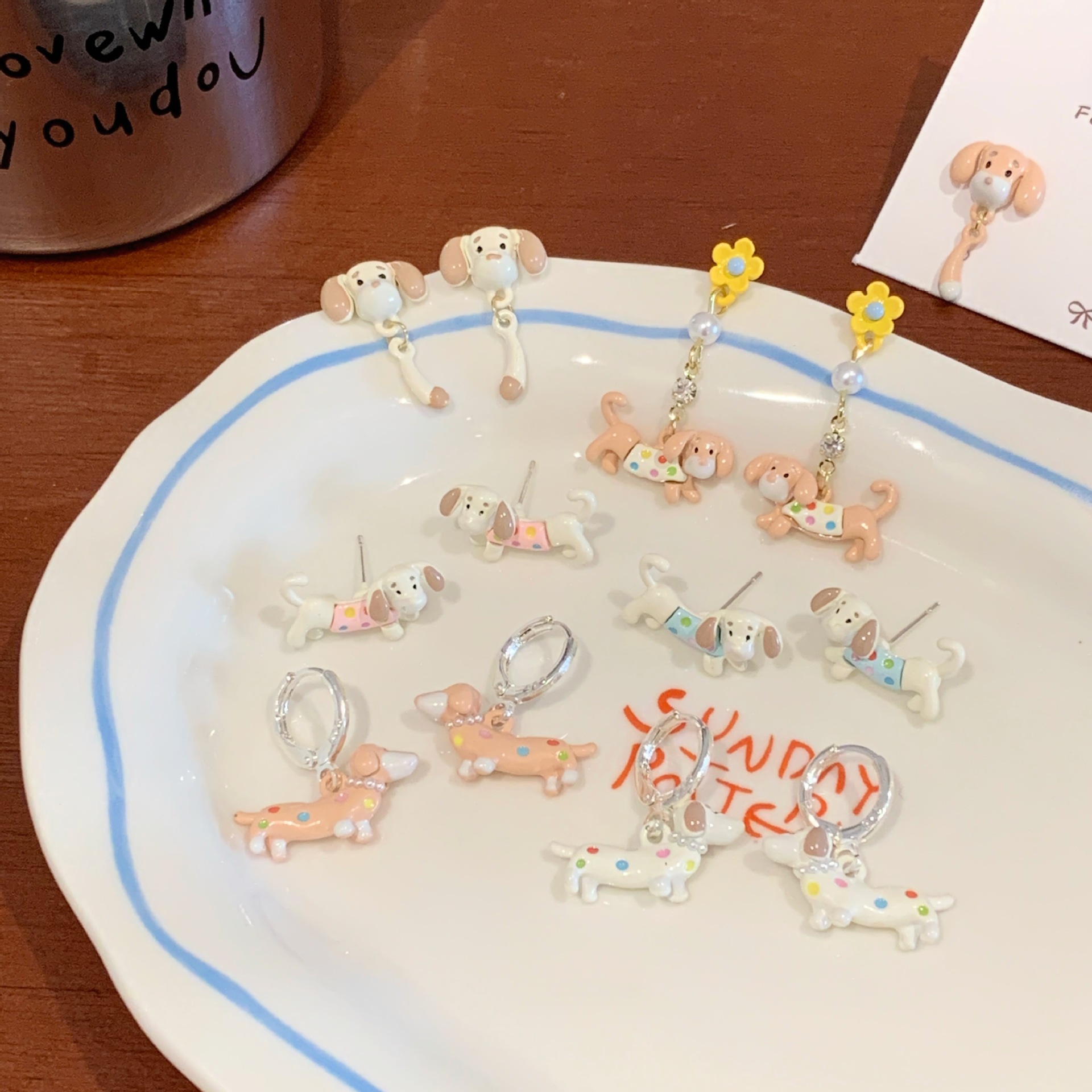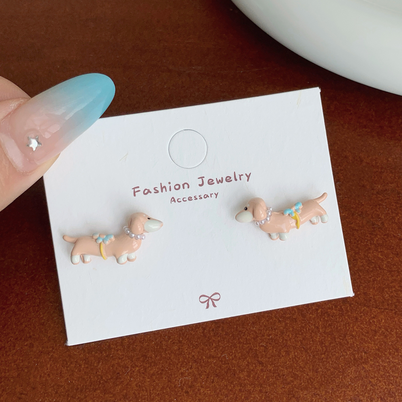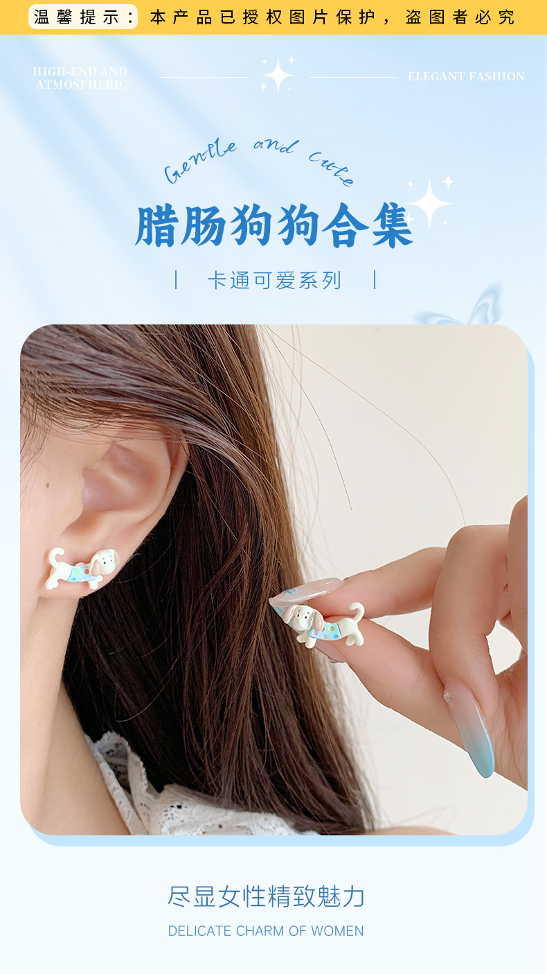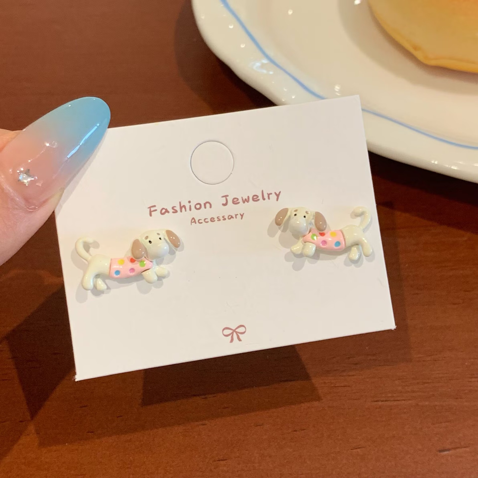 童趣可爱波点腊肠狗耳环女银针小众独特设计耳扣卡通彩色学生耳饰