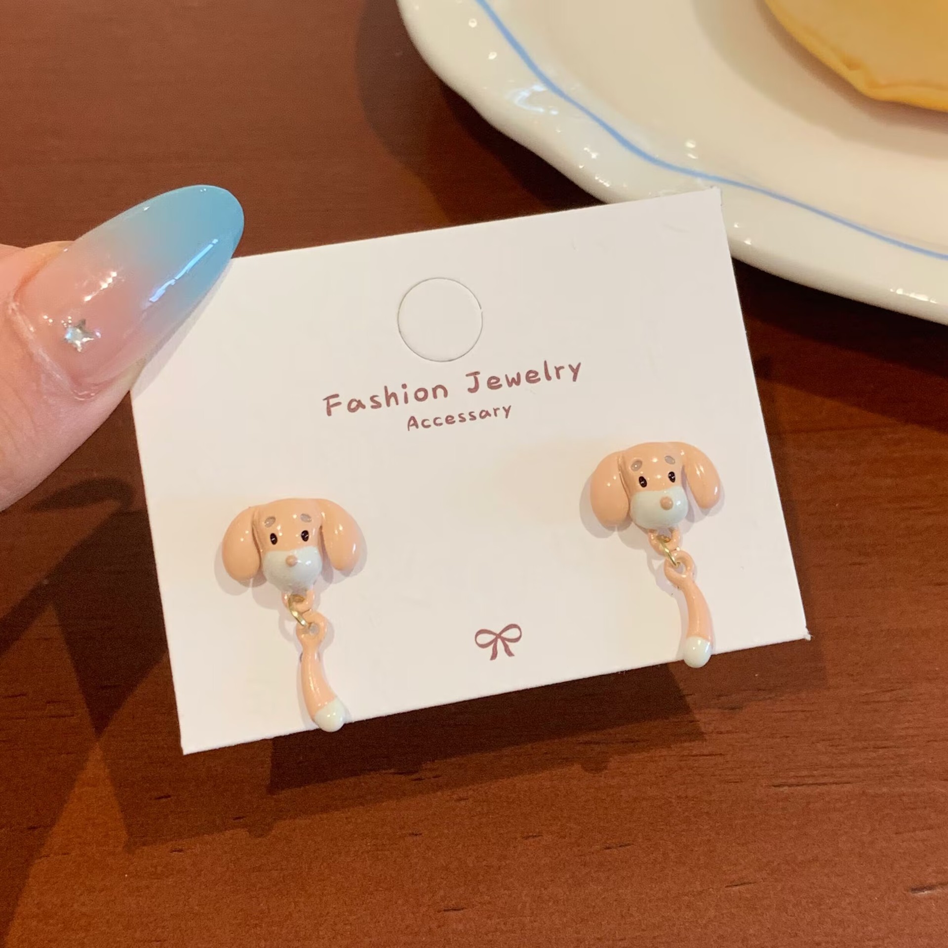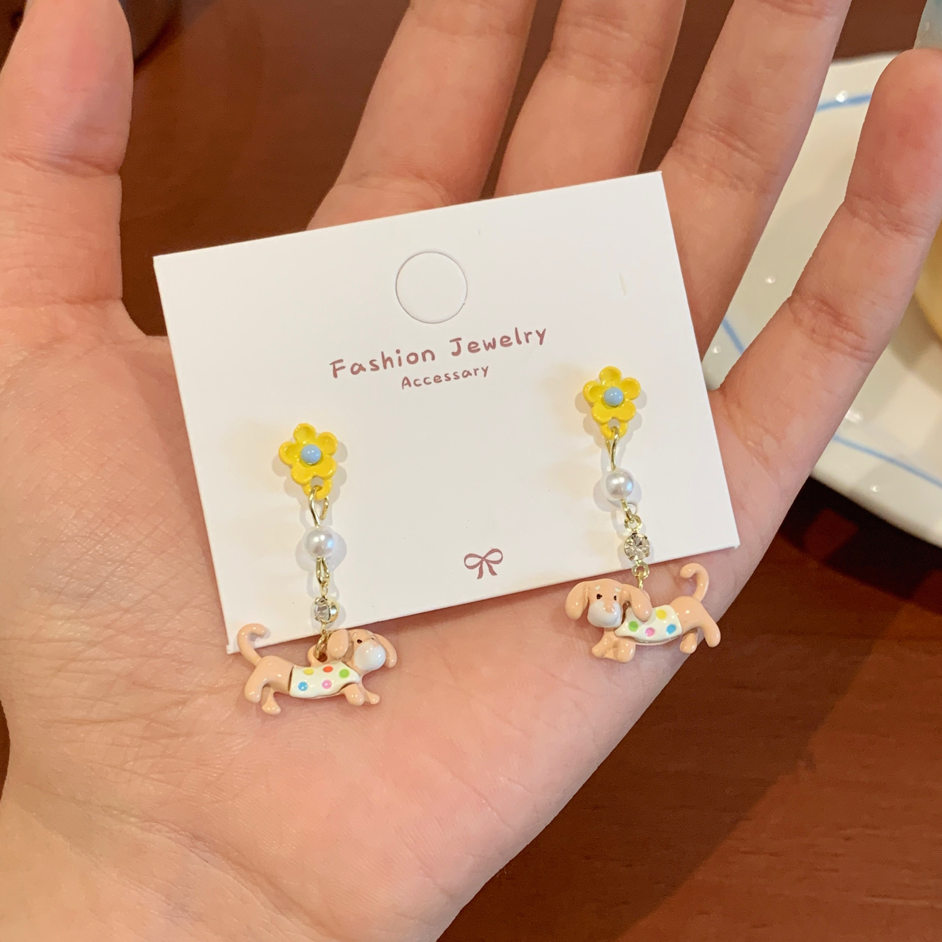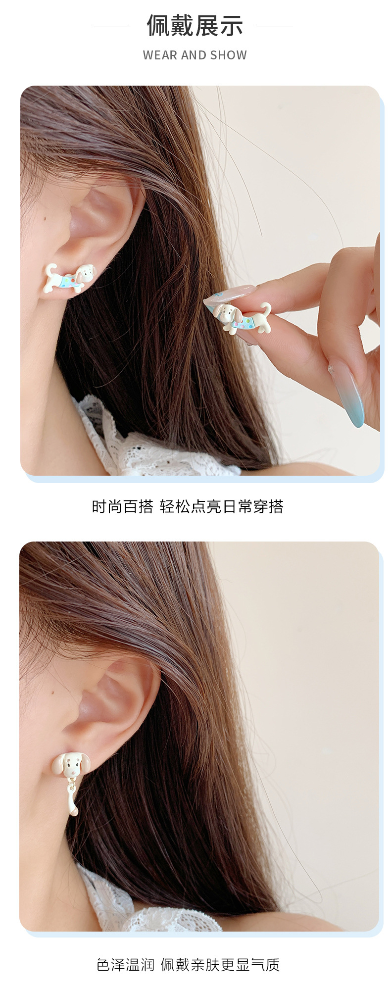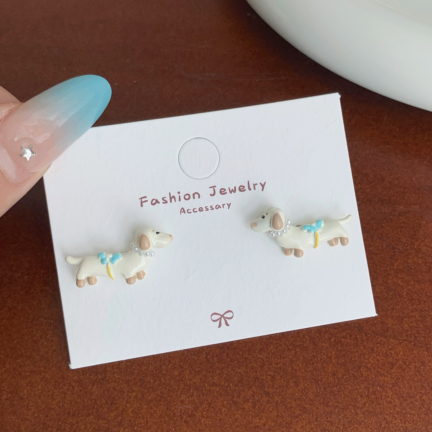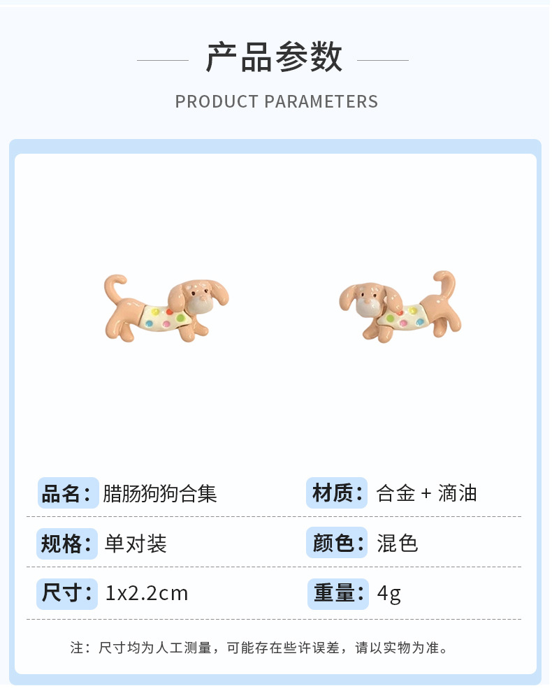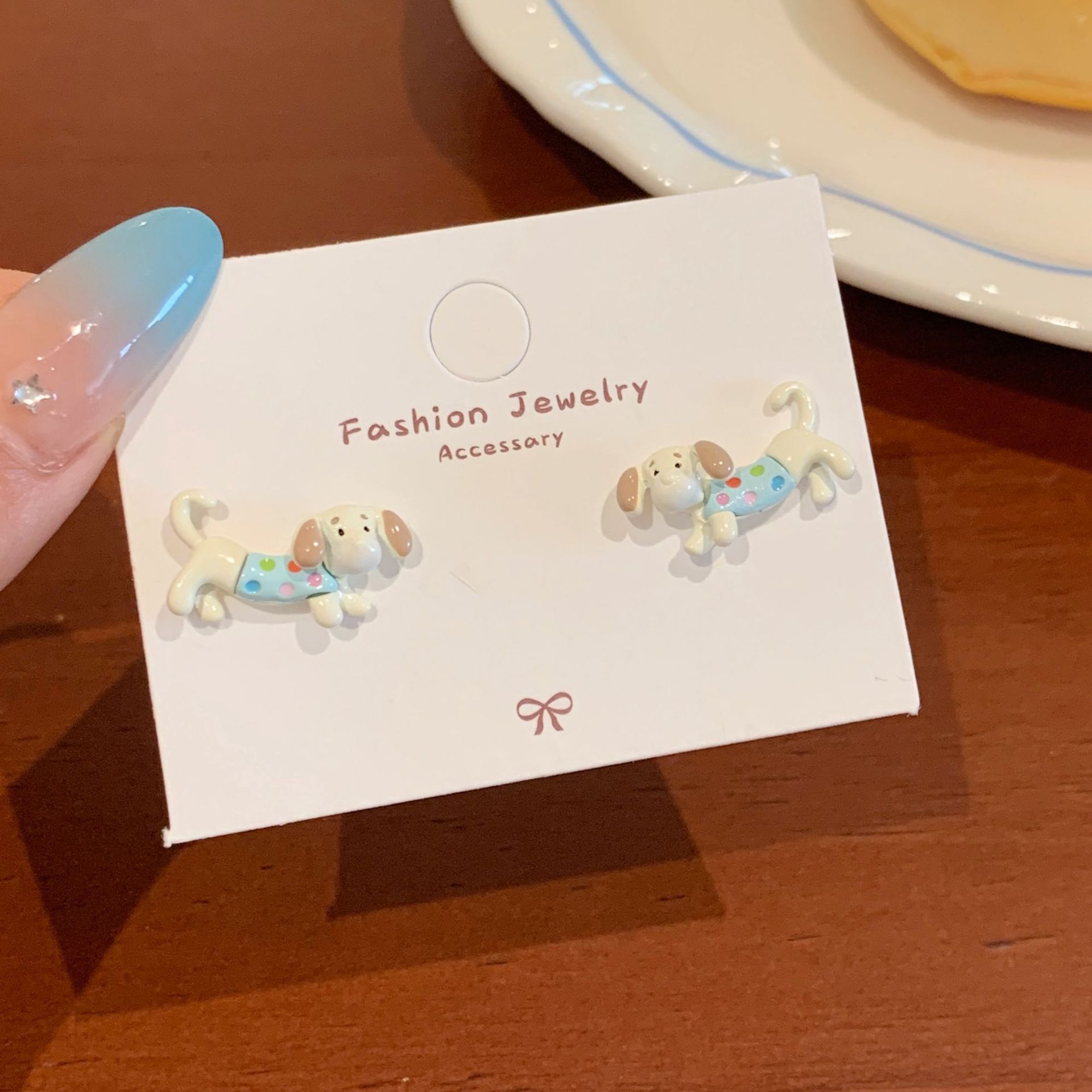 童趣可爱波点腊肠狗耳环女银针小众独特设计耳扣卡通彩色学生耳饰