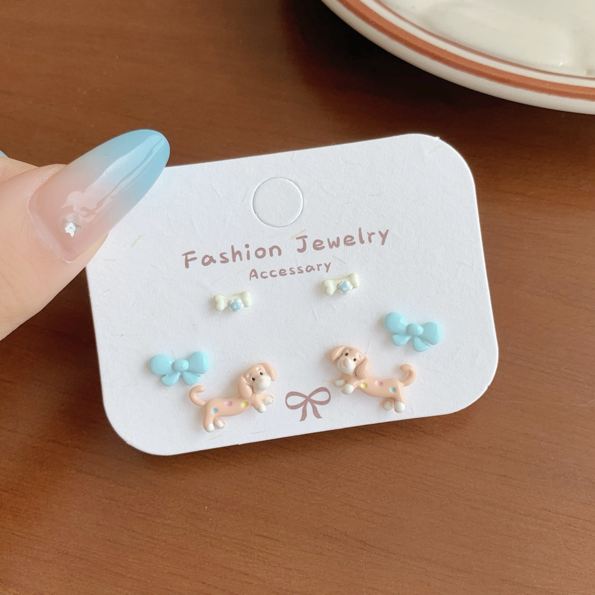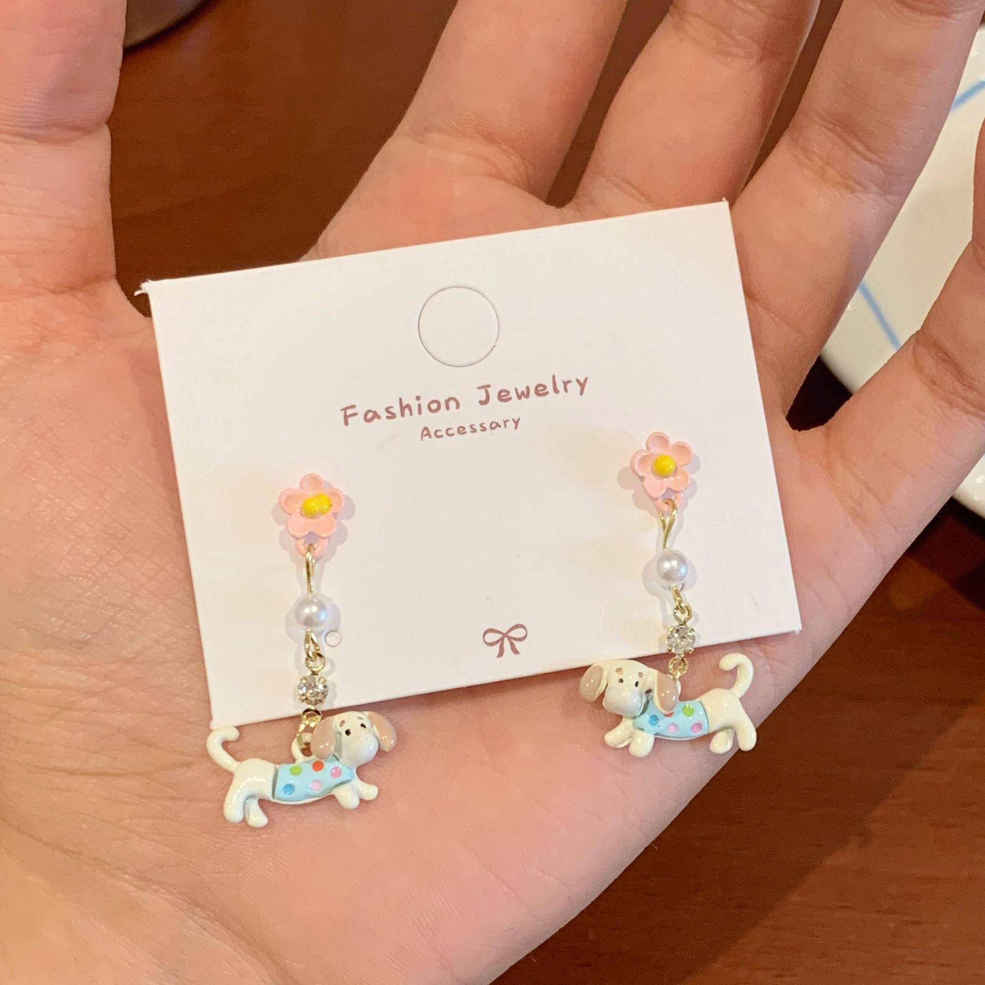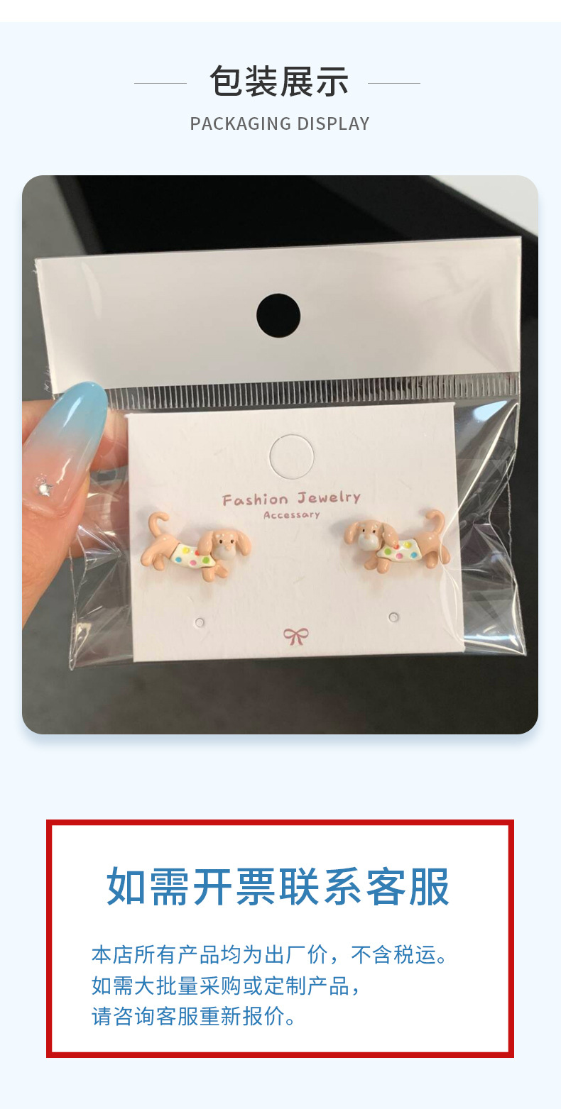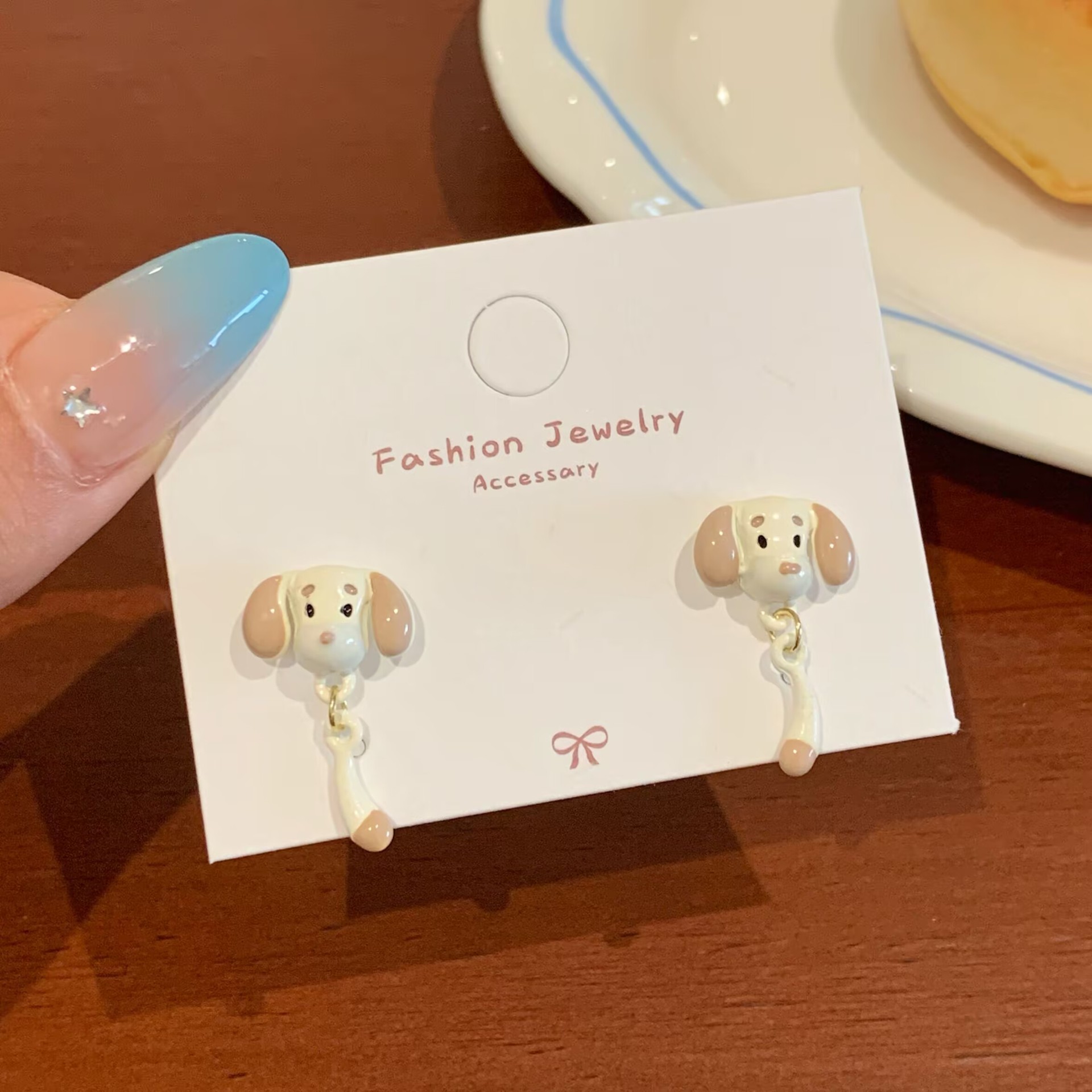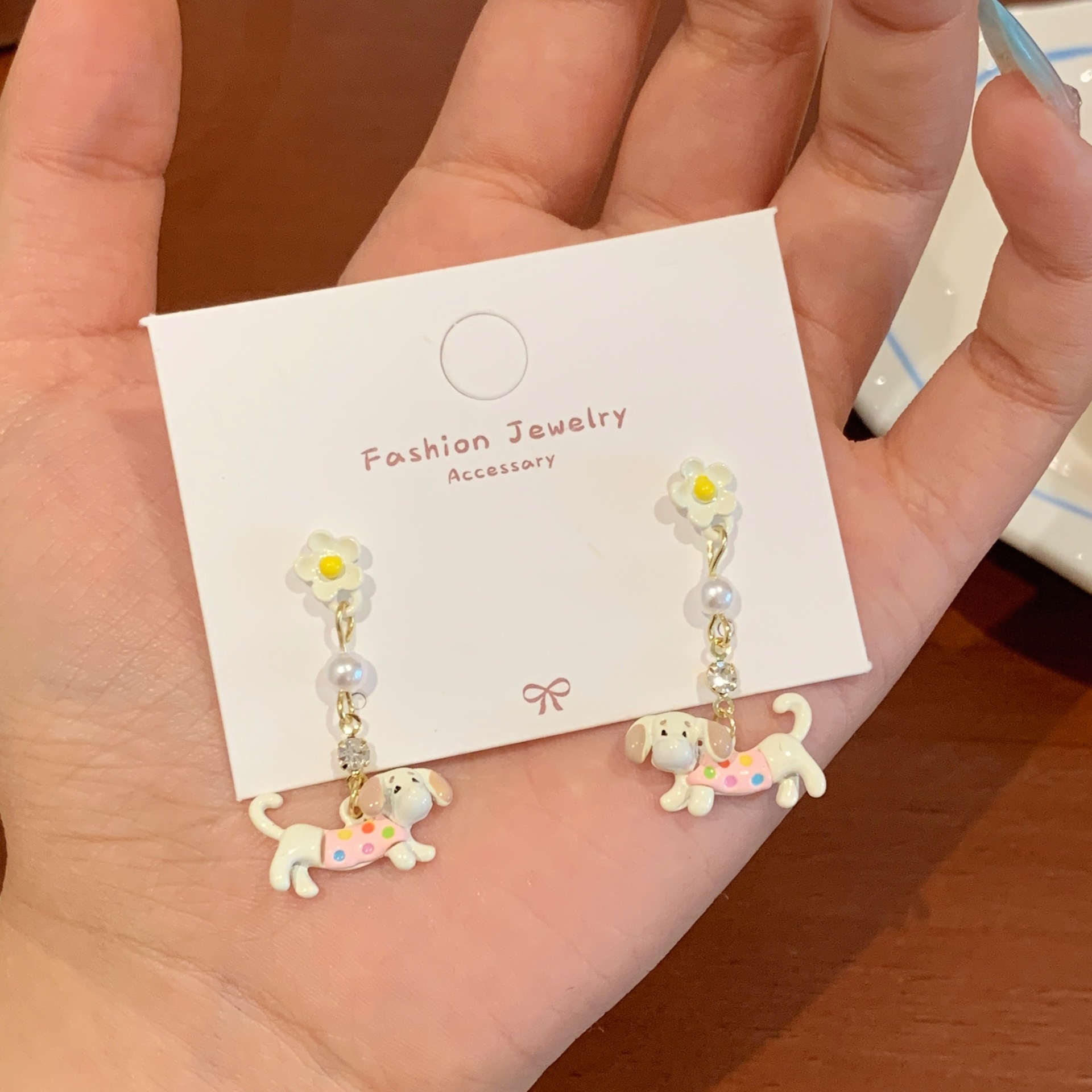 童趣可爱波点腊肠狗耳环女银针小众独特设计耳扣卡通彩色学生耳饰