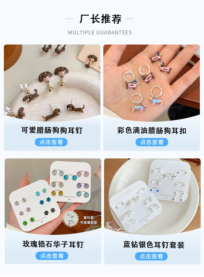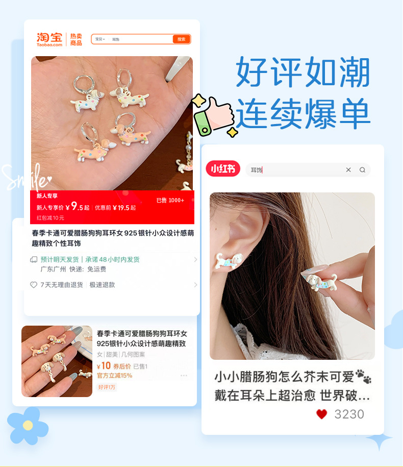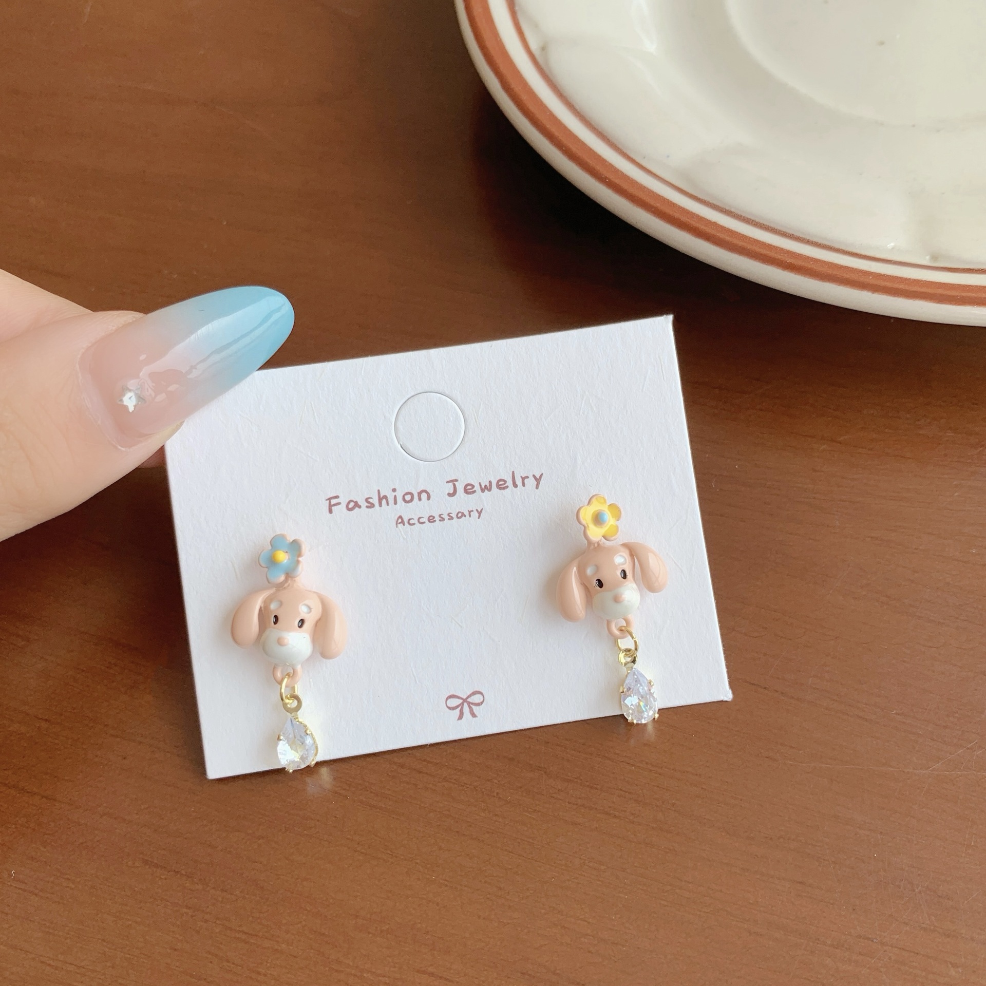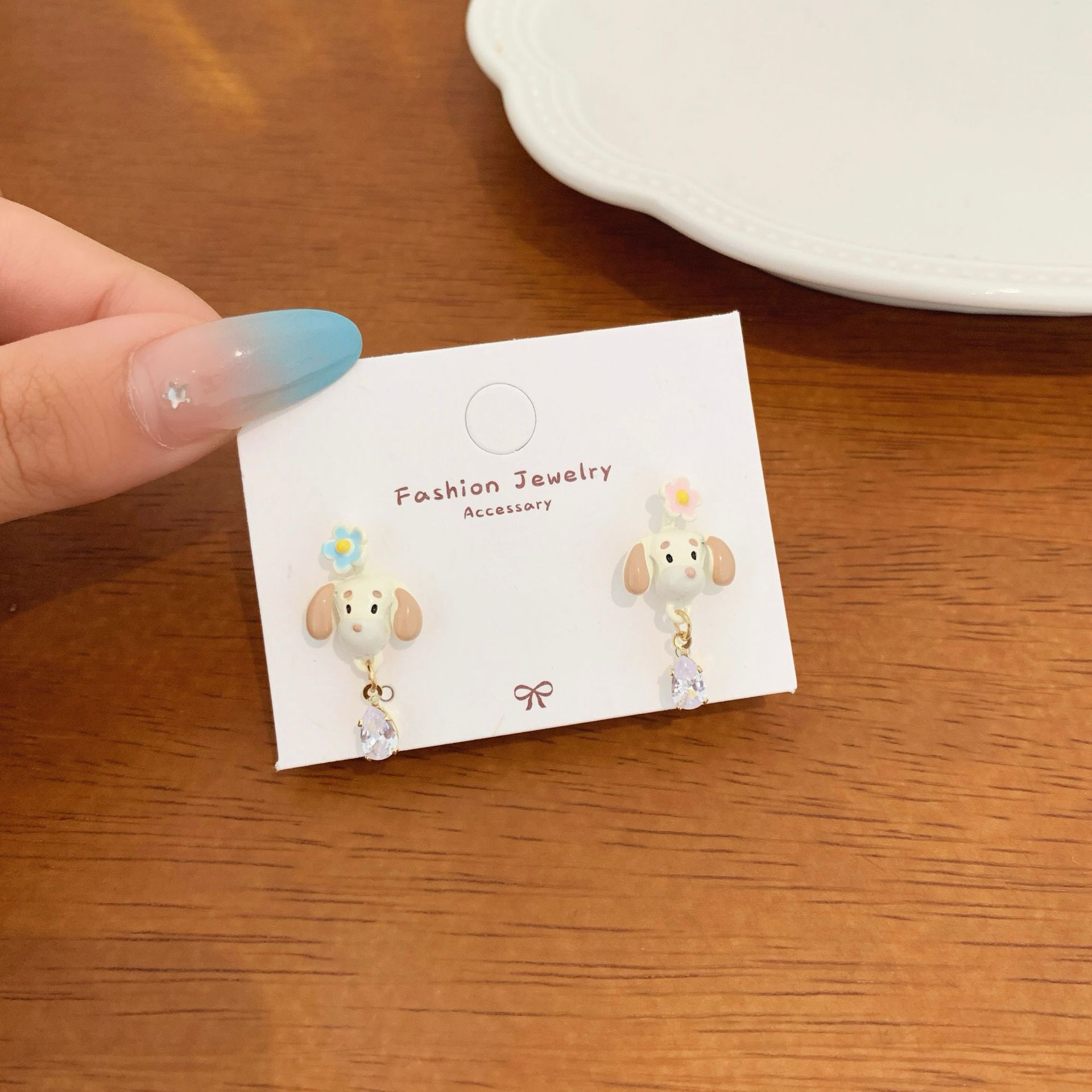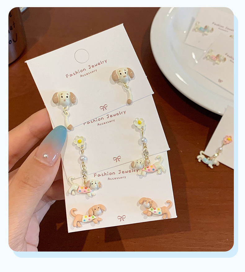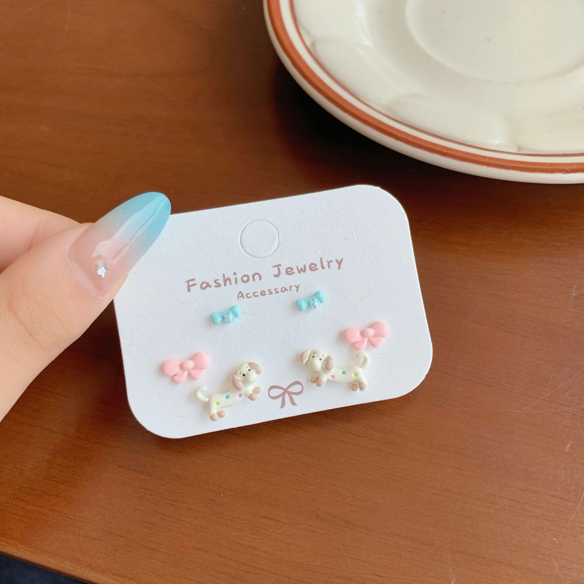 童趣可爱波点腊肠狗耳环女银针小众独特设计耳扣卡通彩色学生耳饰