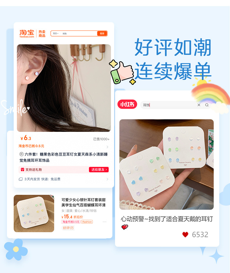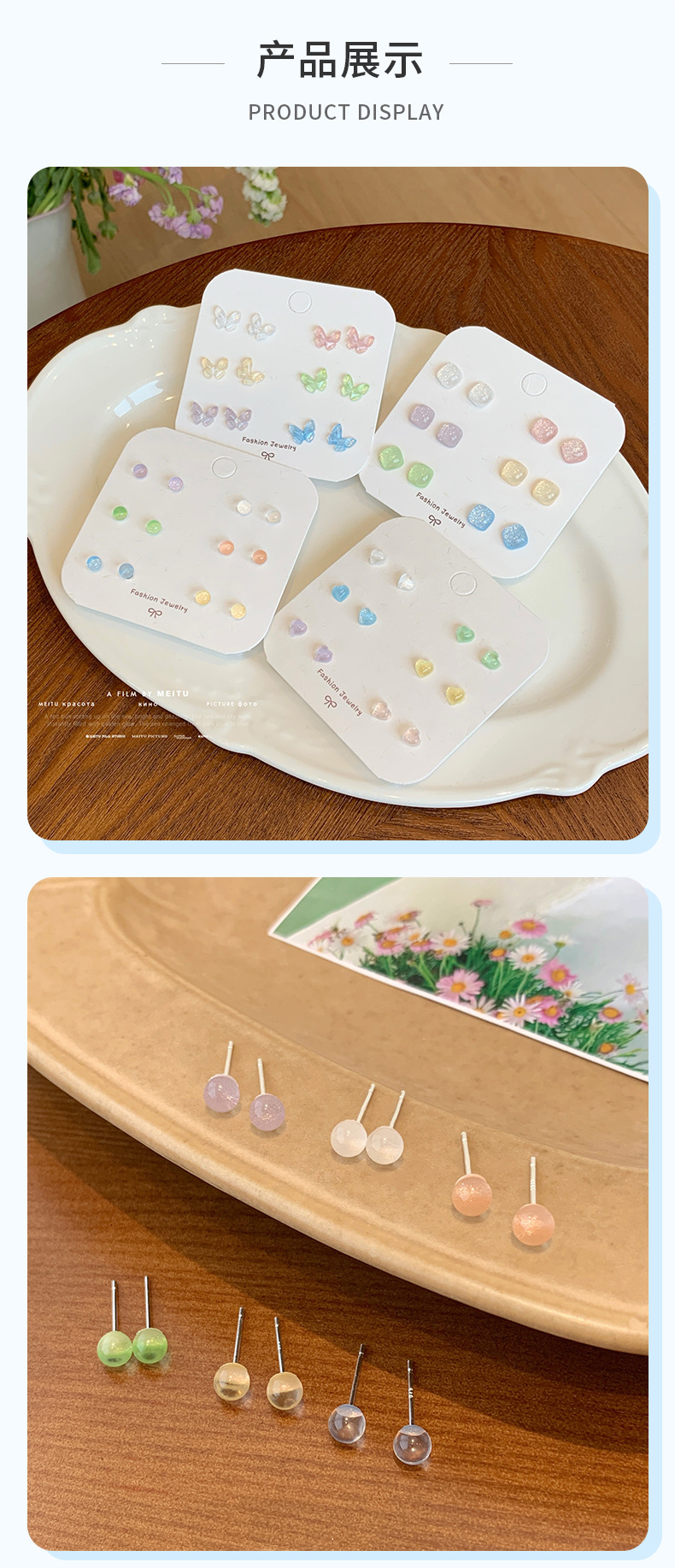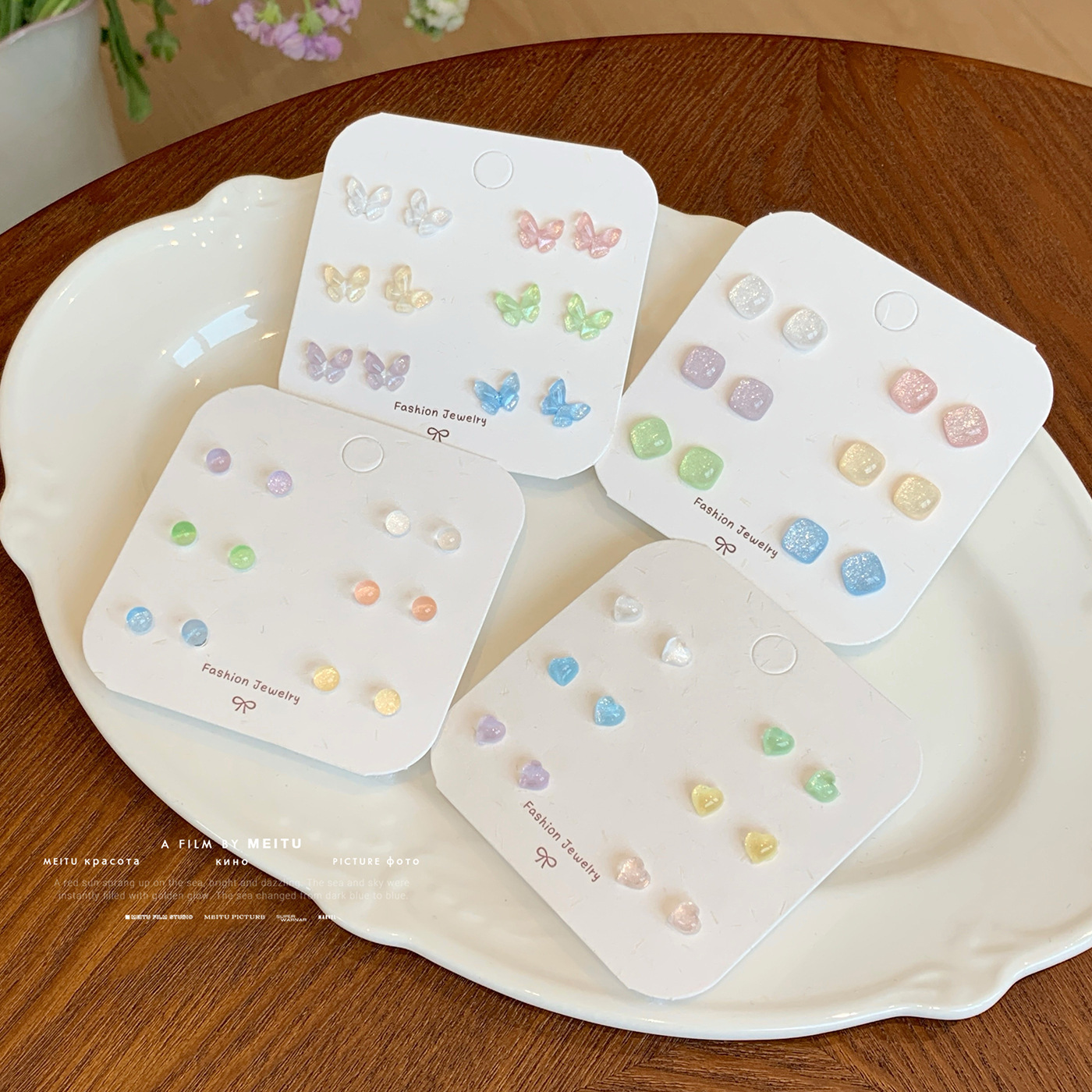 爆款小清新几何豆豆耳钉银针套装女清透森系爱心蝴蝶可爱学生耳饰