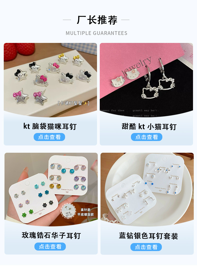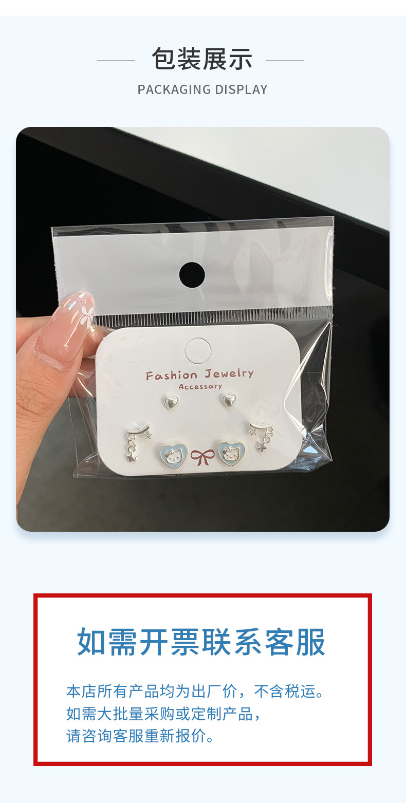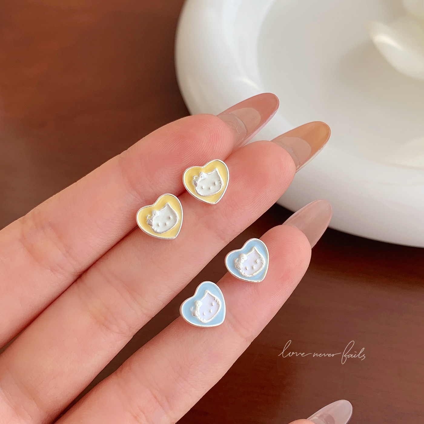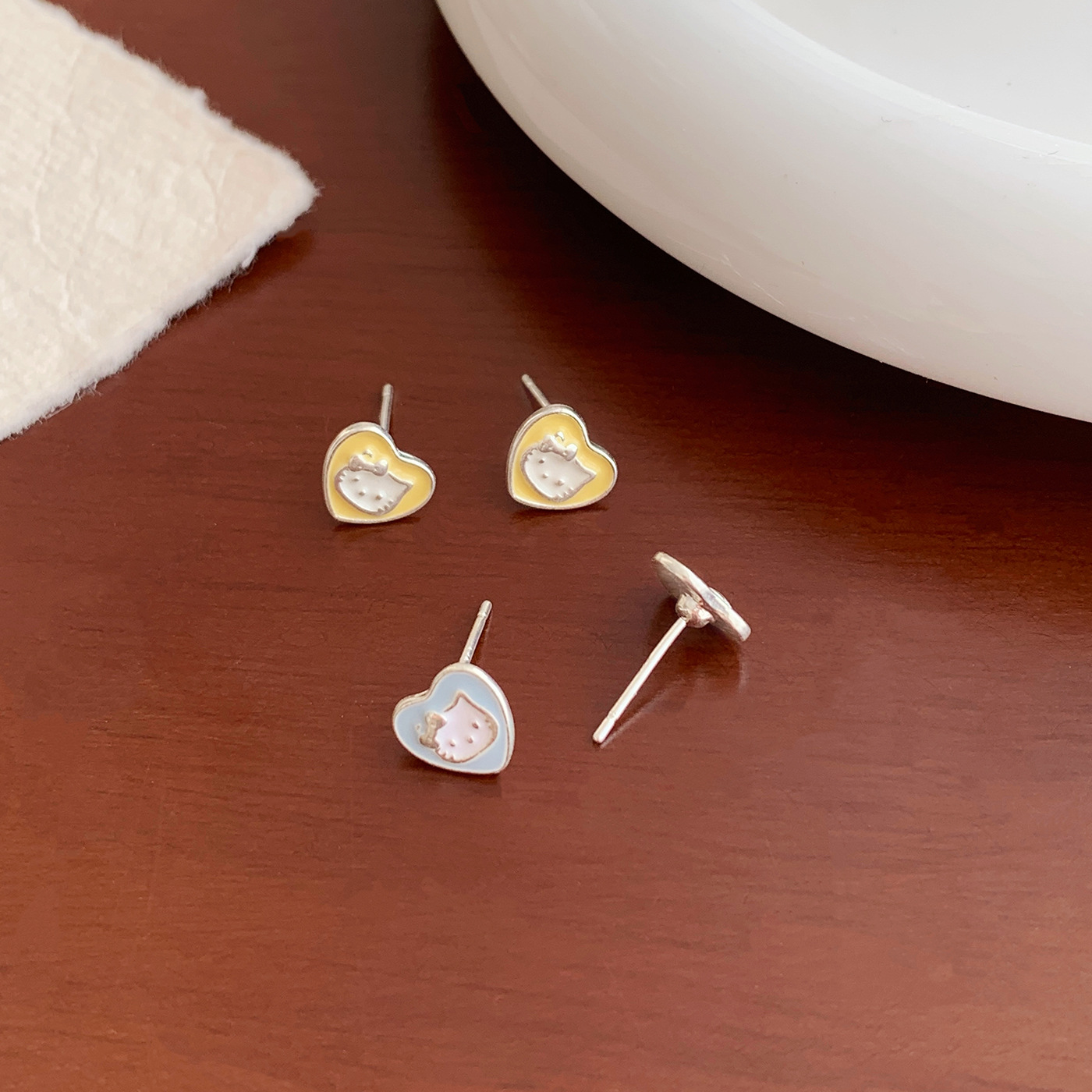 卡通可爱滴油爱心KT猫咪耳钉三件套女银针小巧精致甜美少女心耳饰