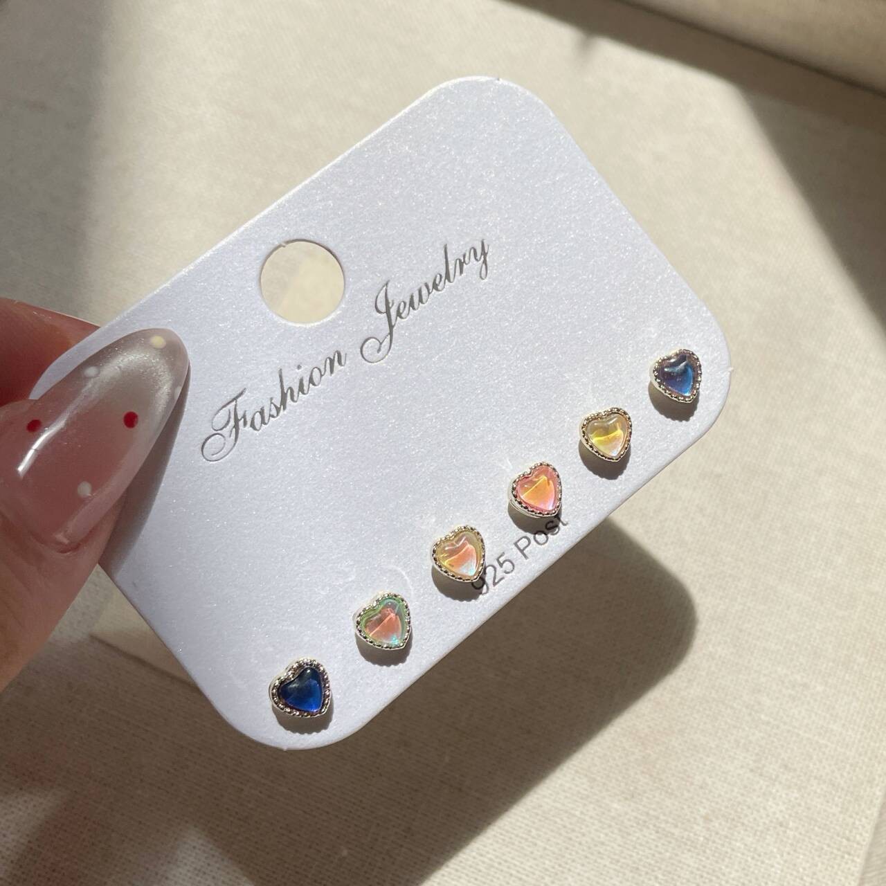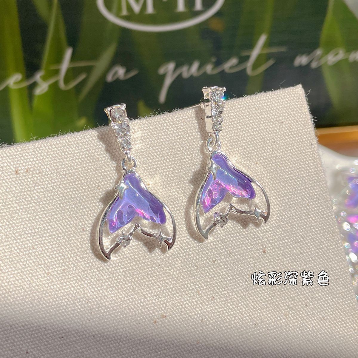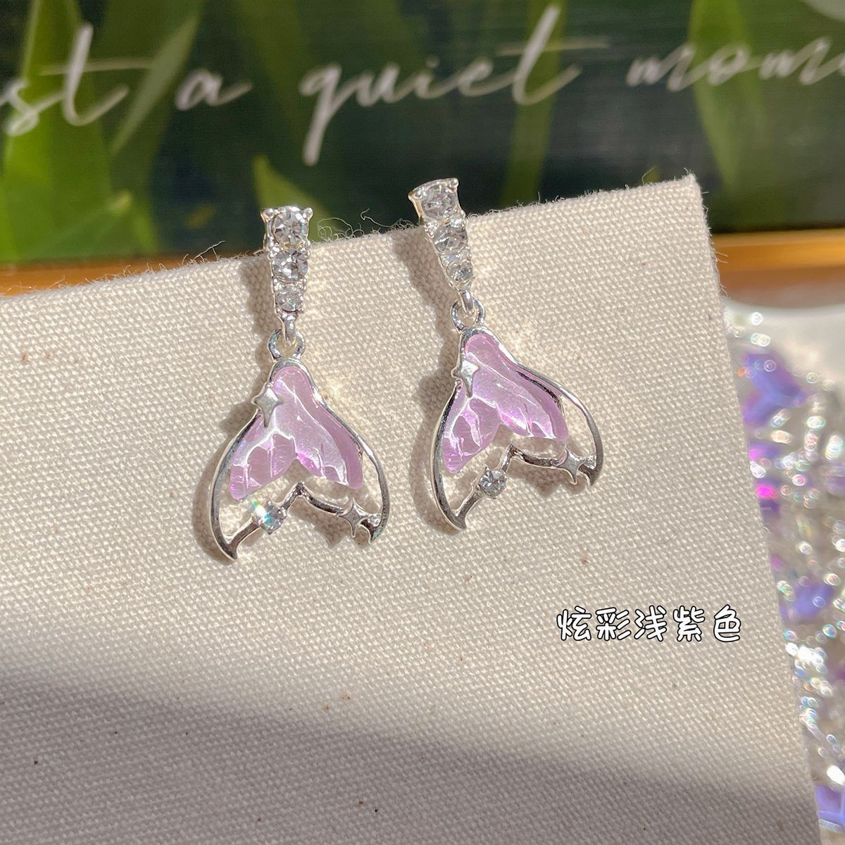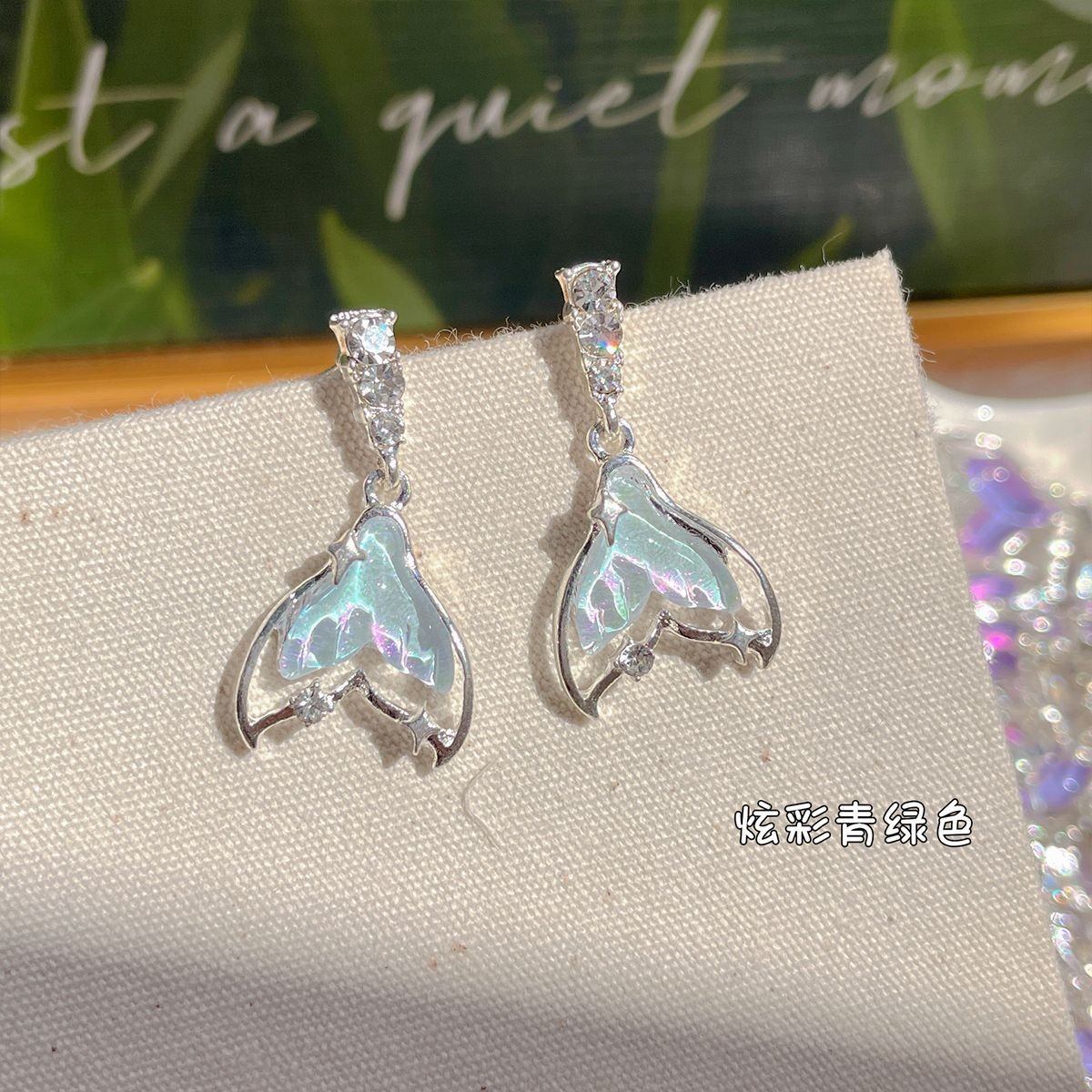 渐变镭射人鱼姬爱心耳环合集女银针小众设计感精致超仙炫彩耳钉