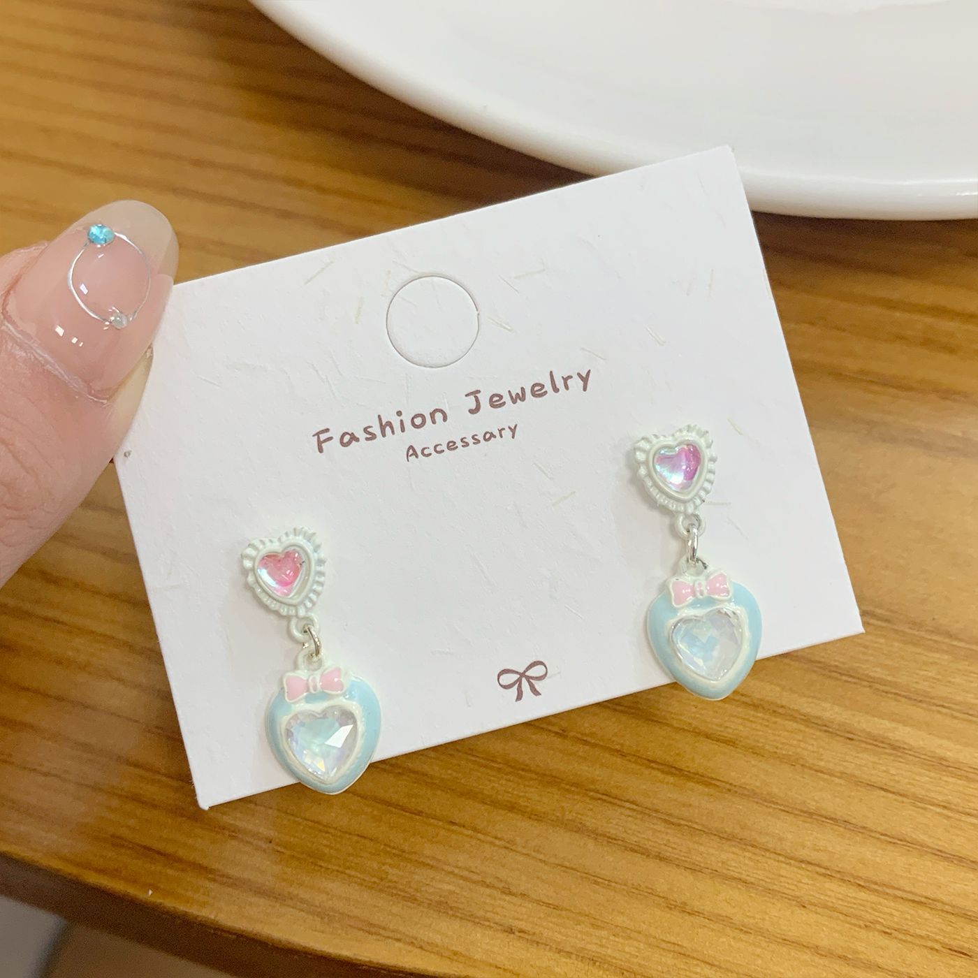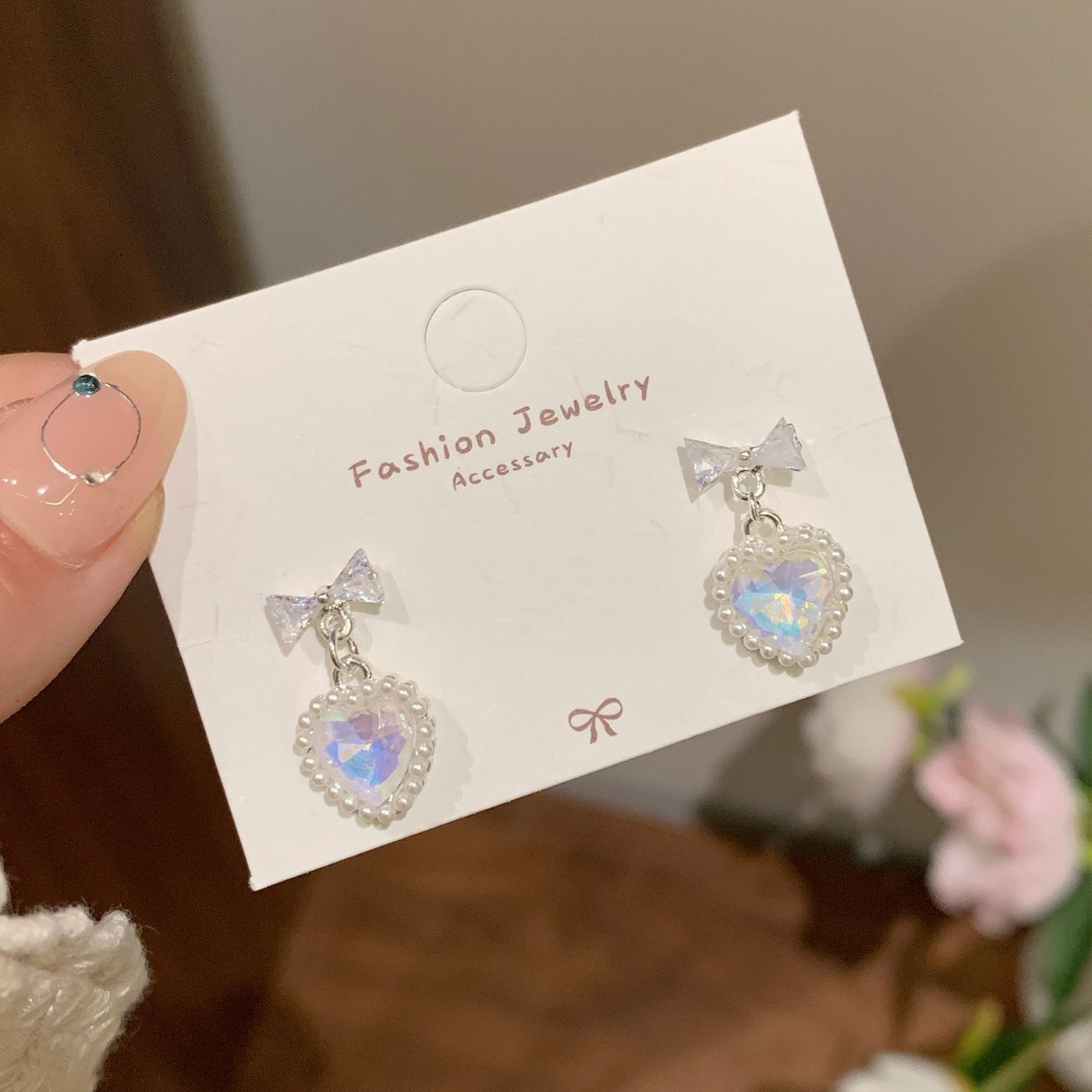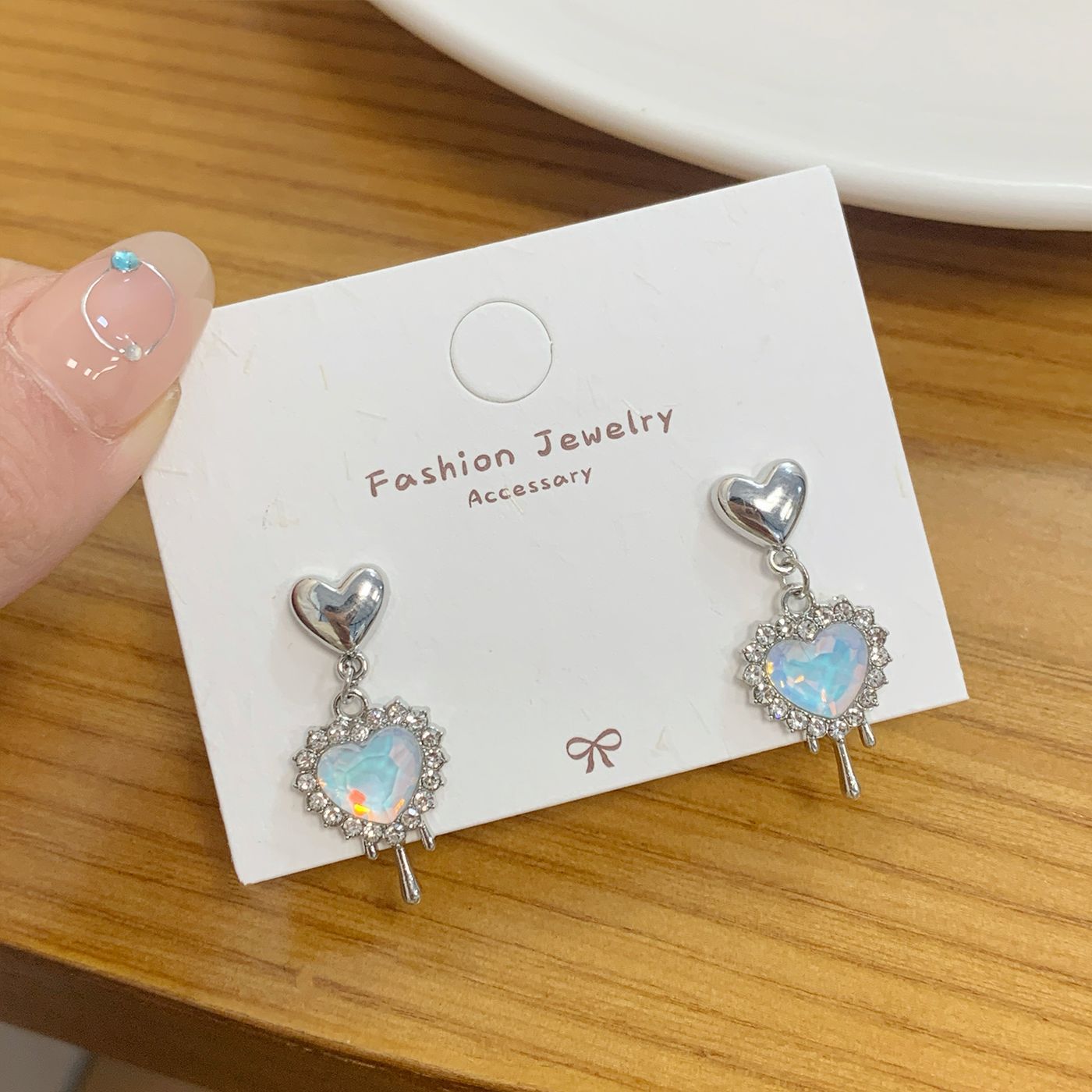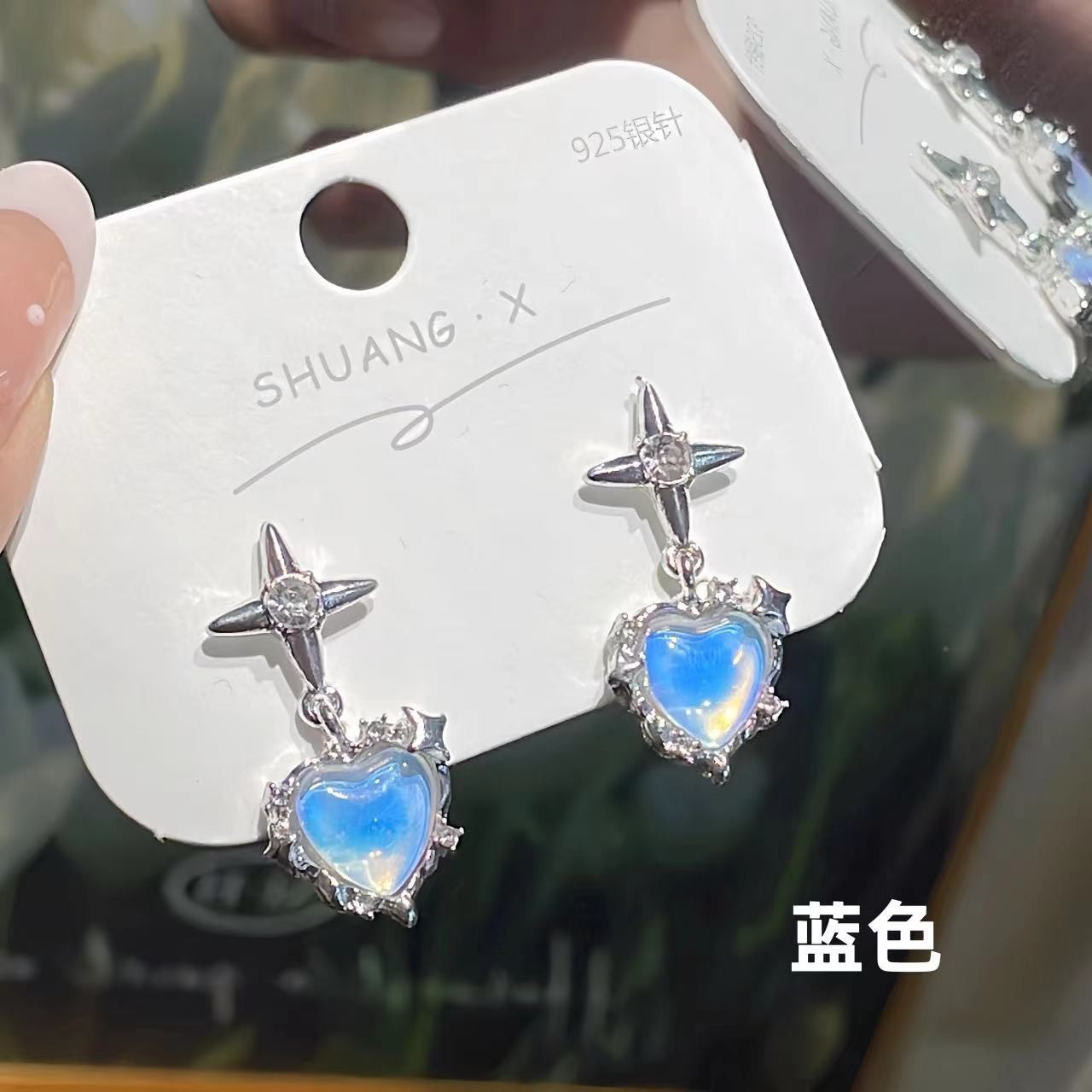 渐变镭射人鱼姬爱心耳环合集女银针小众设计感精致超仙炫彩耳钉