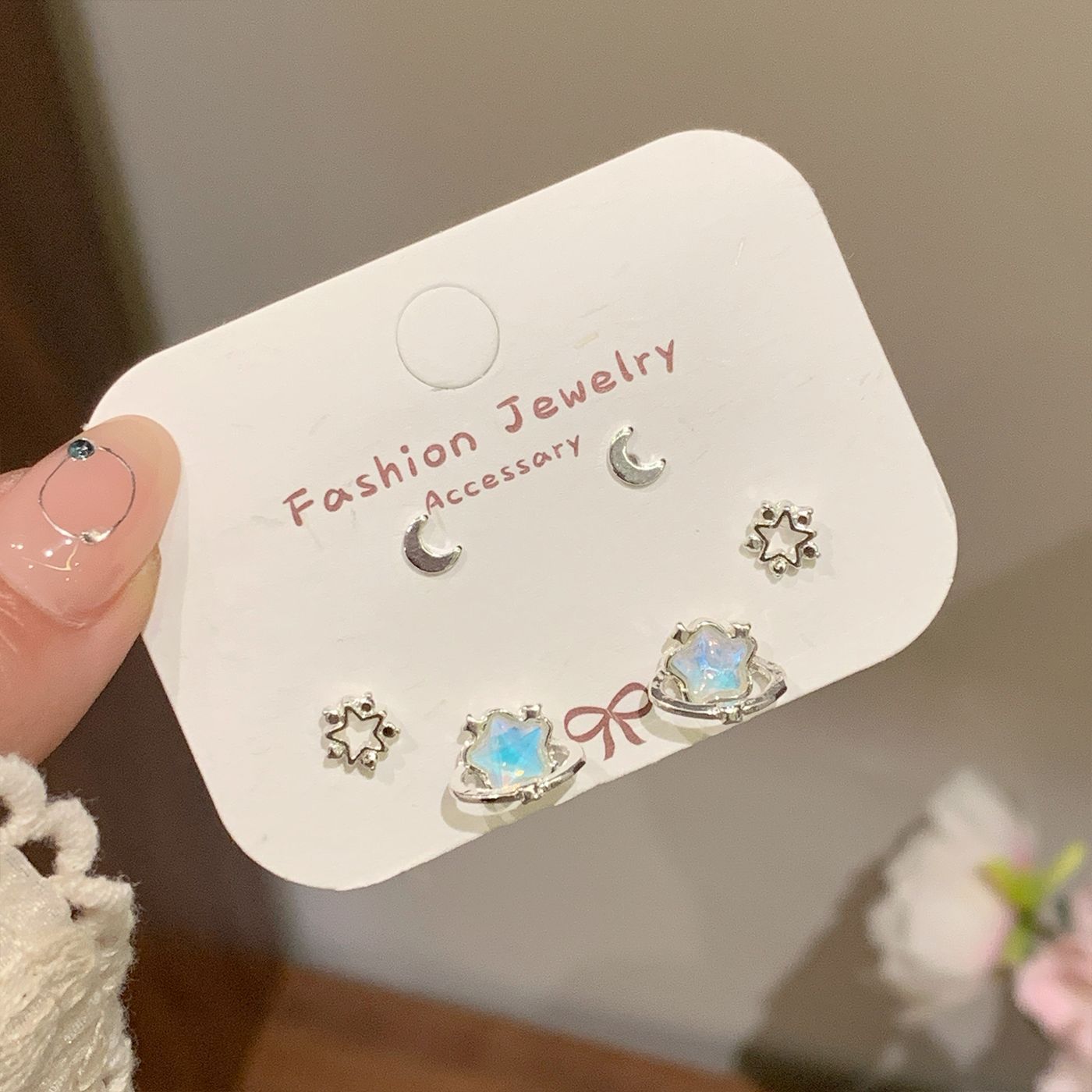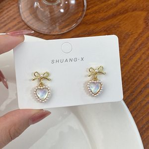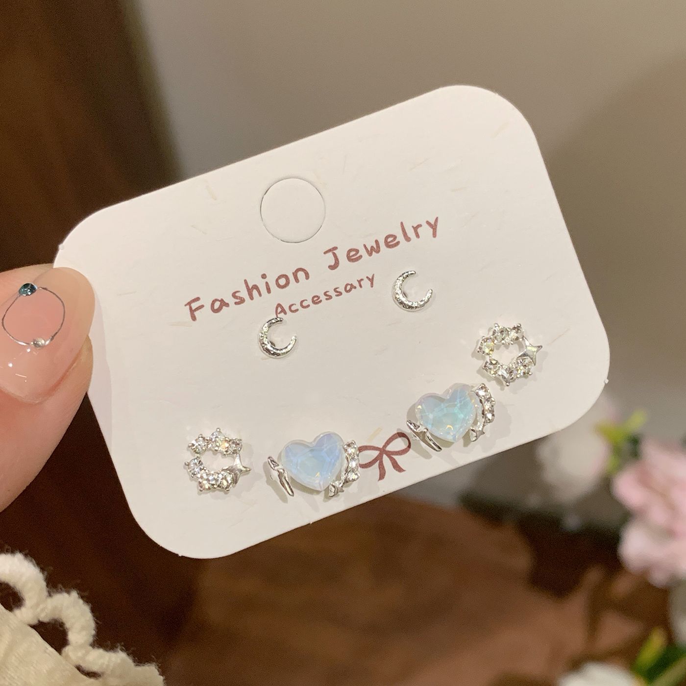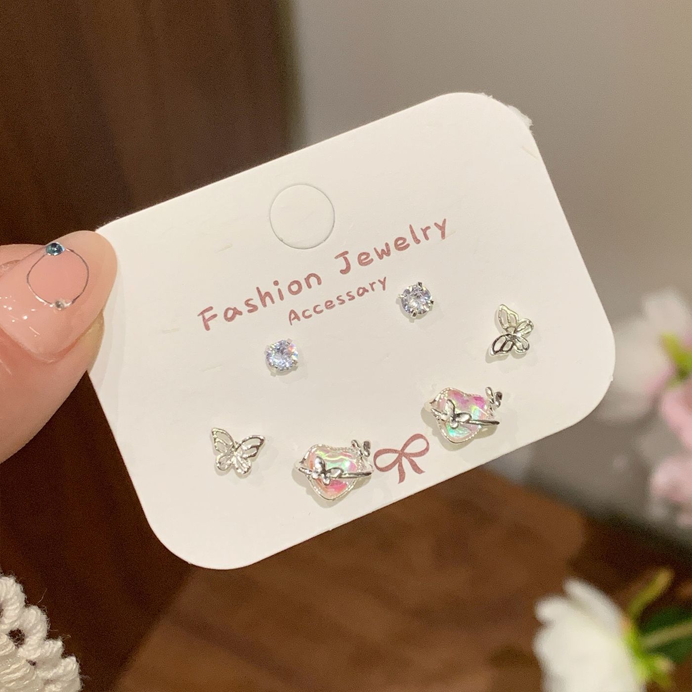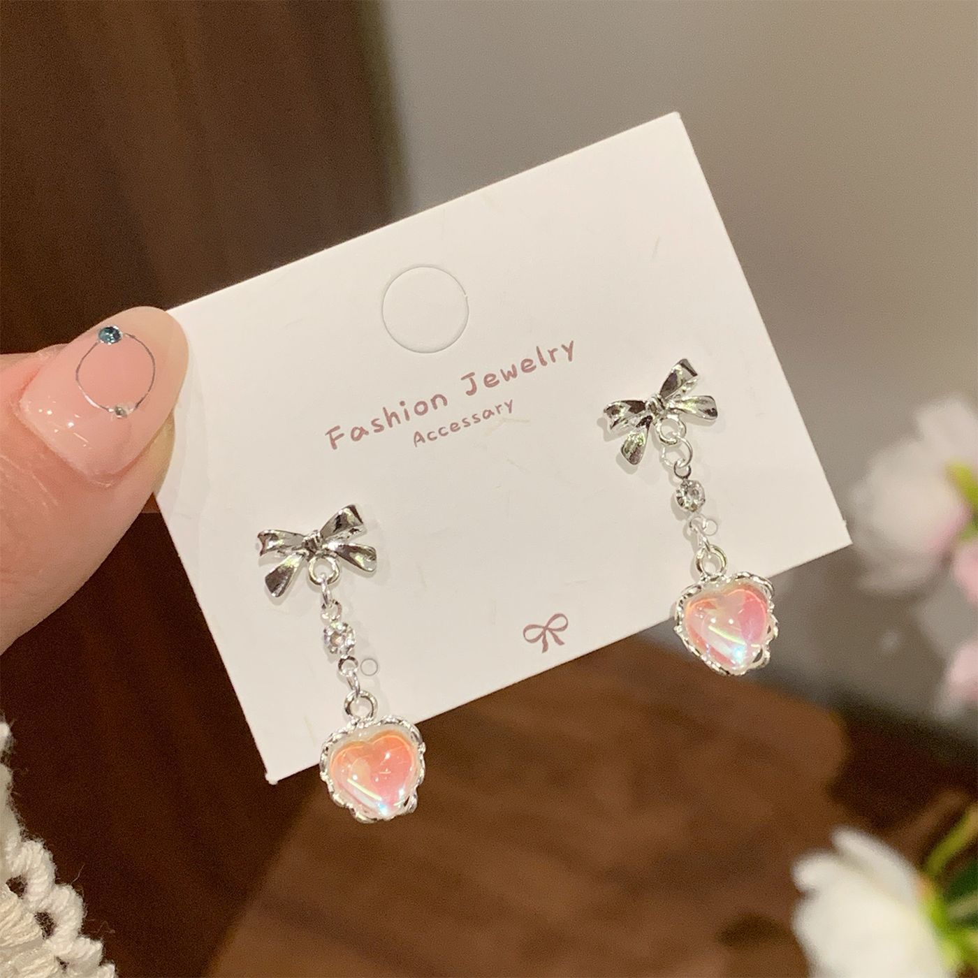 渐变镭射人鱼姬爱心耳环合集女银针小众设计感精致超仙炫彩耳钉
