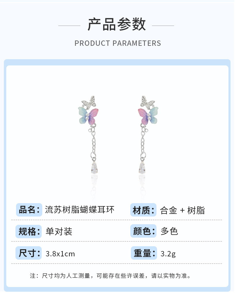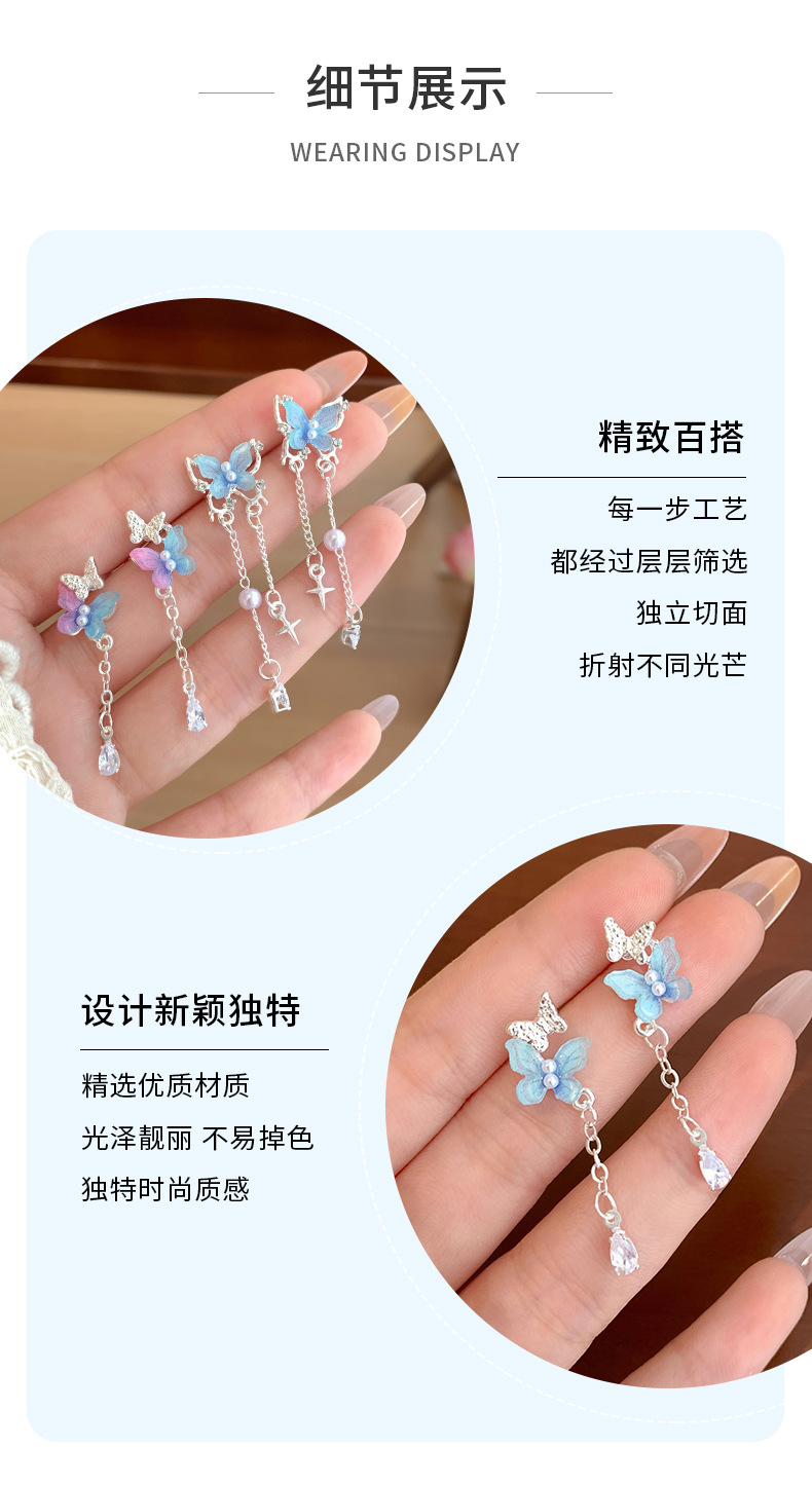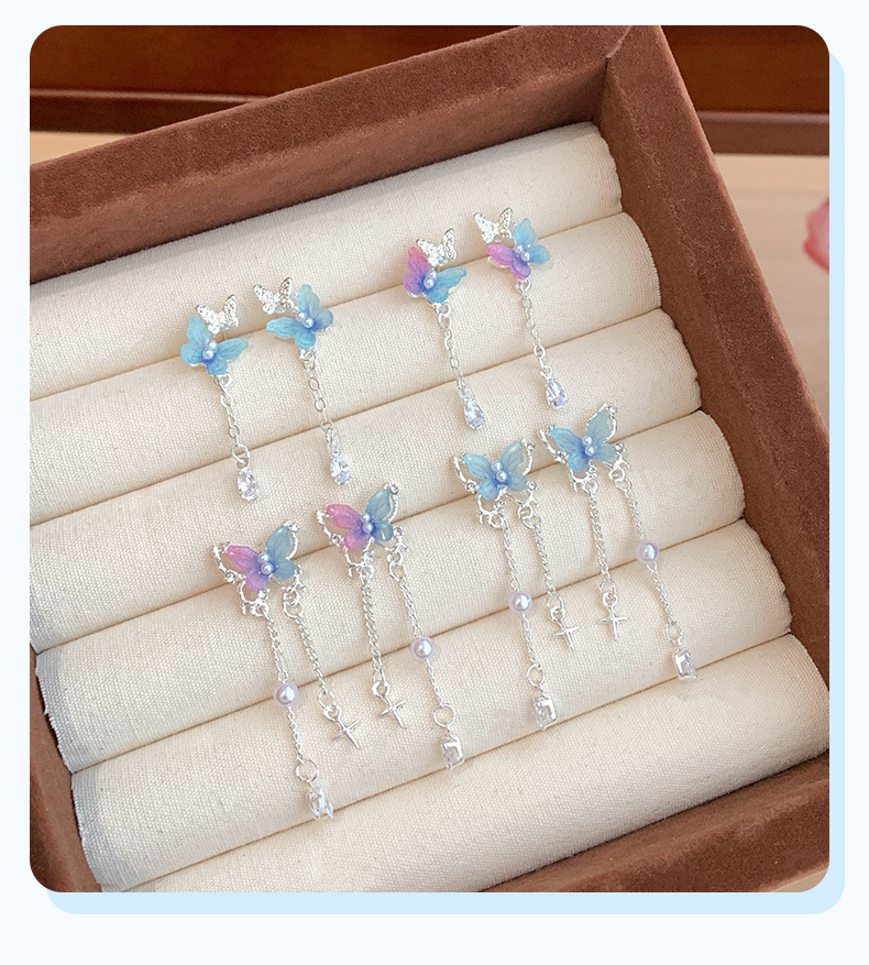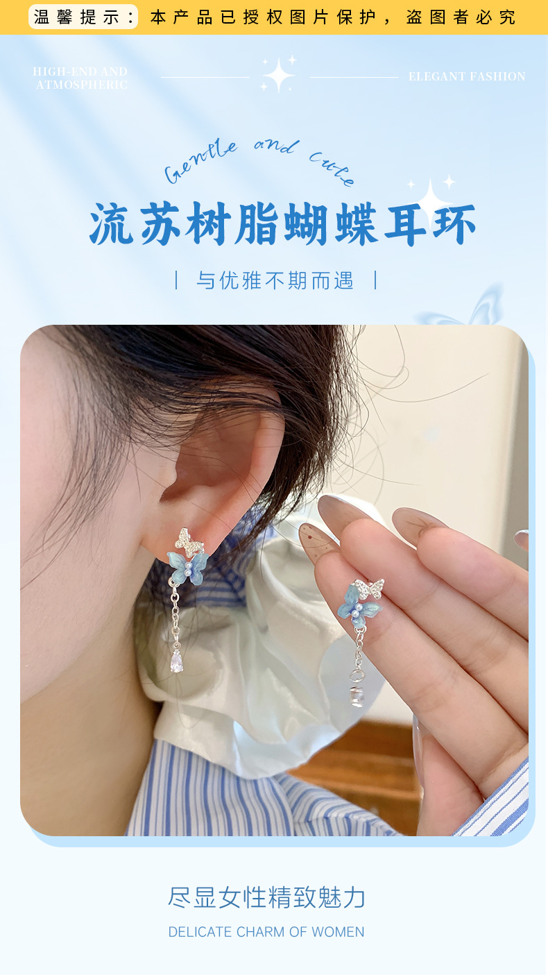 韩版超仙树脂珍珠蝴蝶耳环流苏女银针甜美气质轻奢高级感百搭耳饰