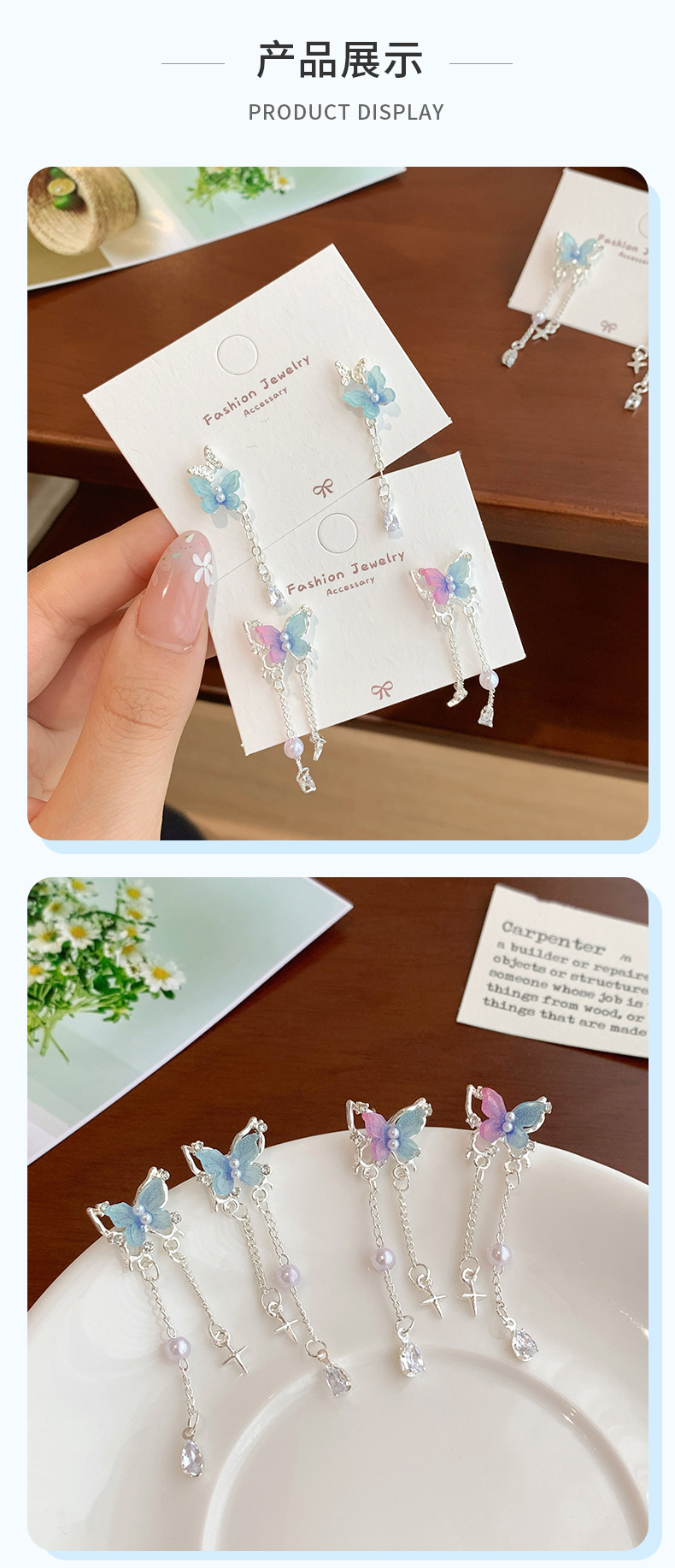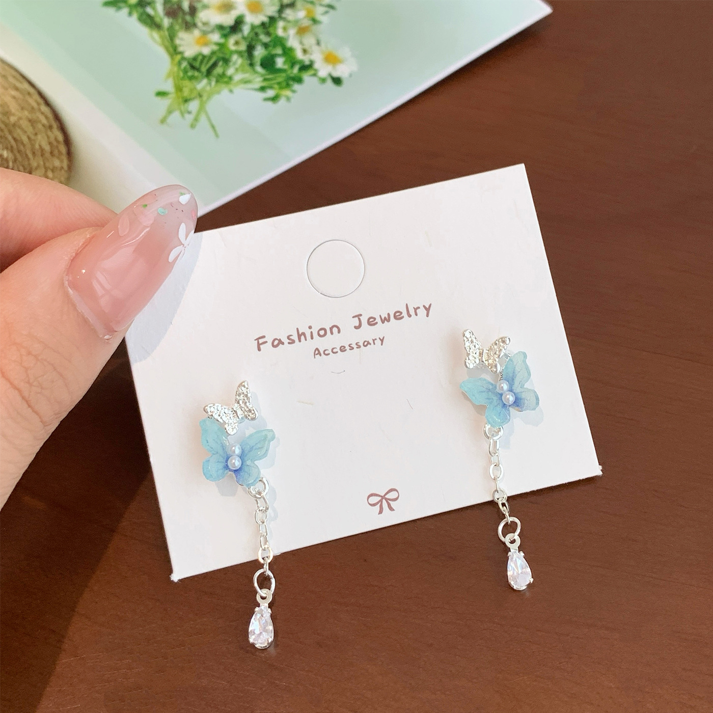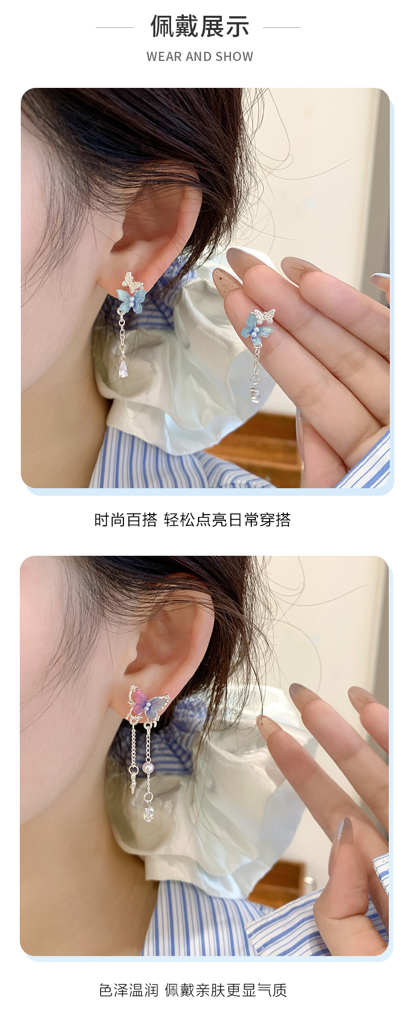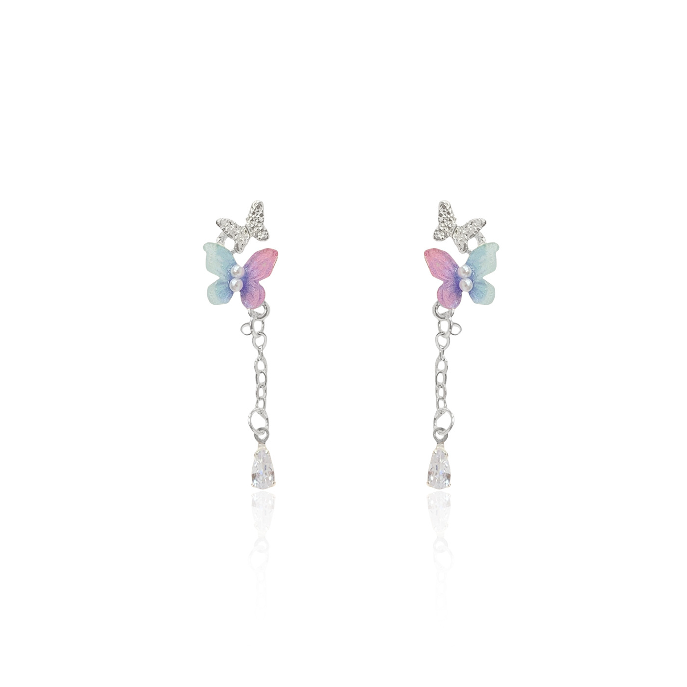 韩版超仙树脂珍珠蝴蝶耳环流苏女银针甜美气质轻奢高级感百搭耳饰