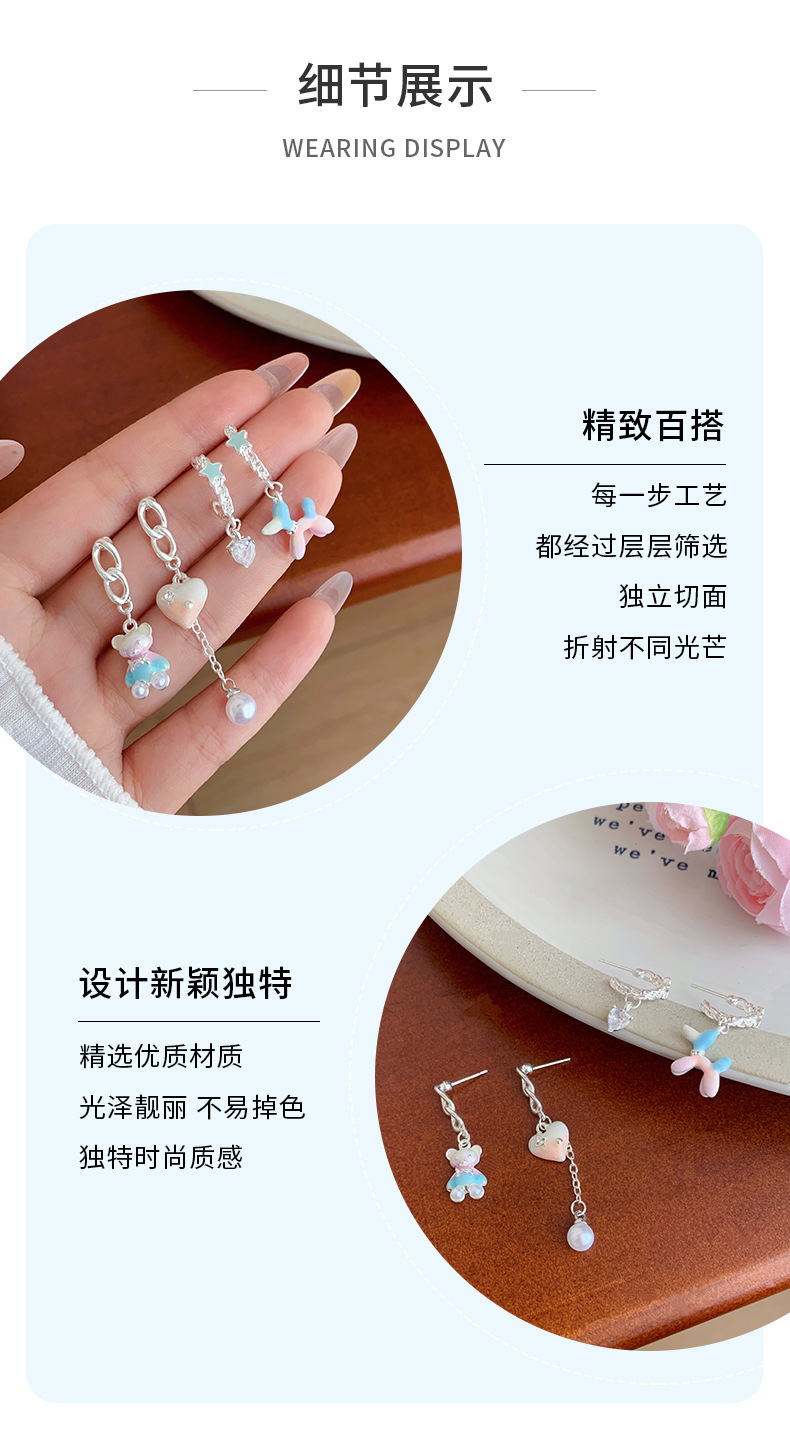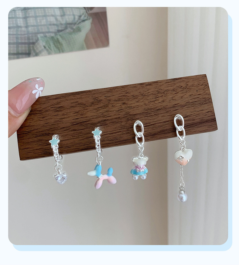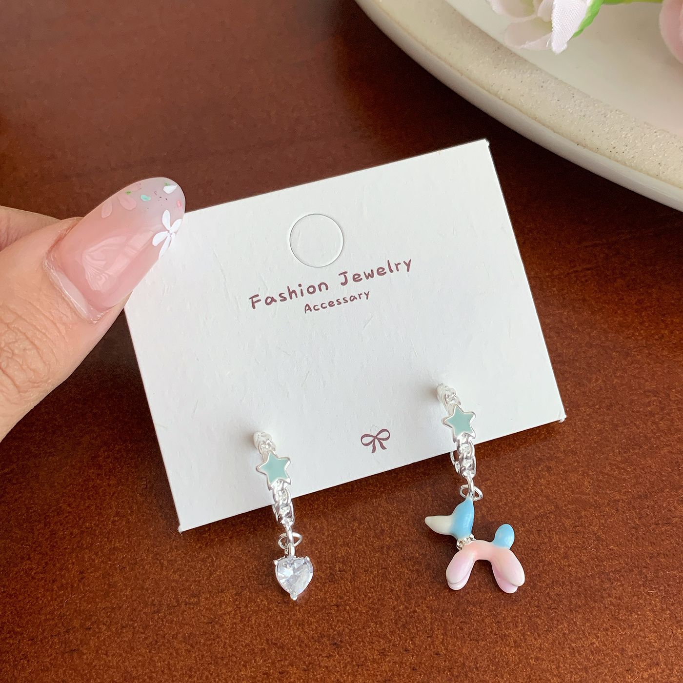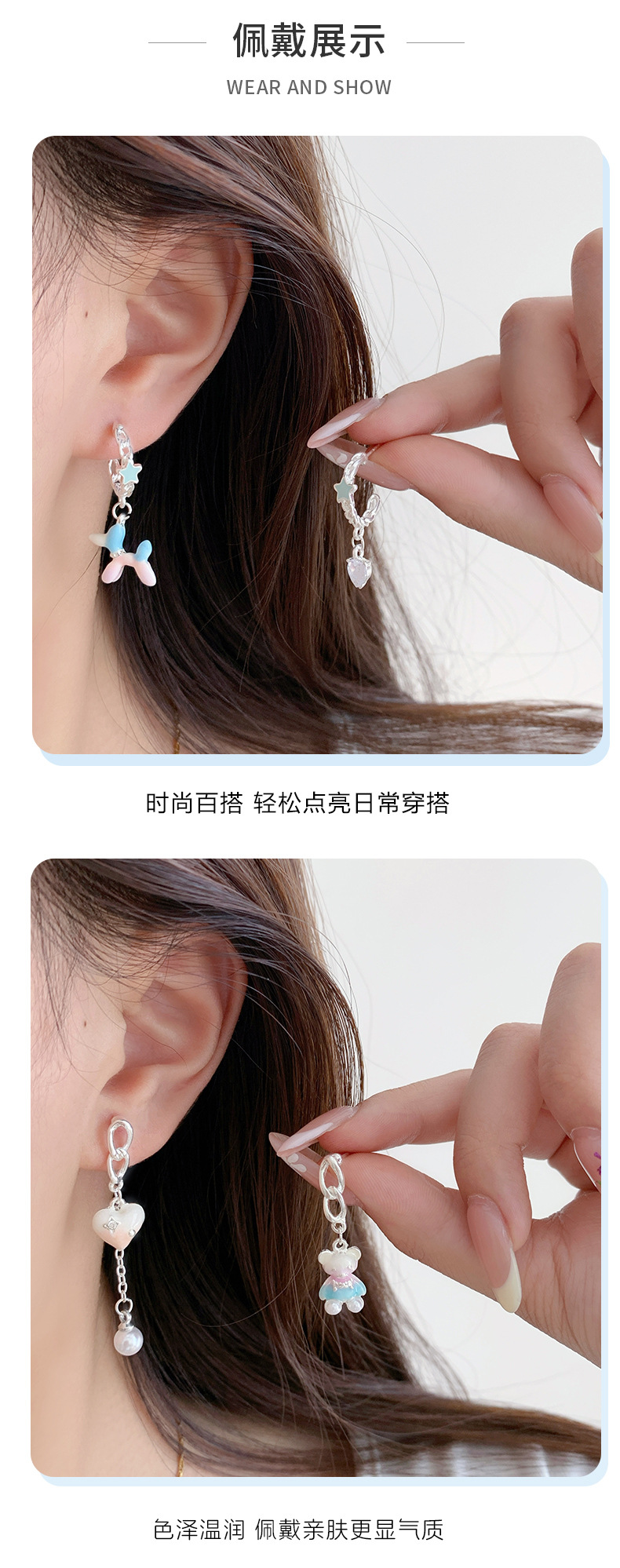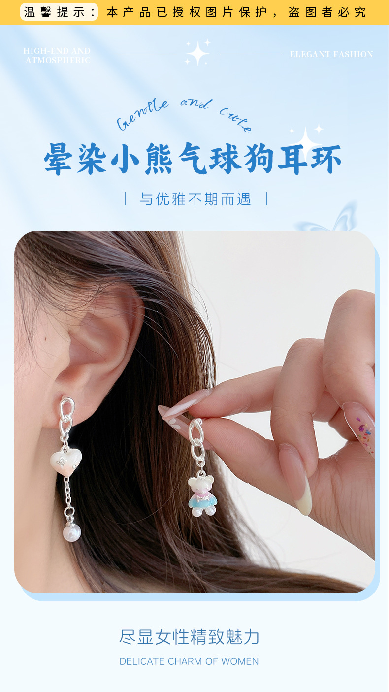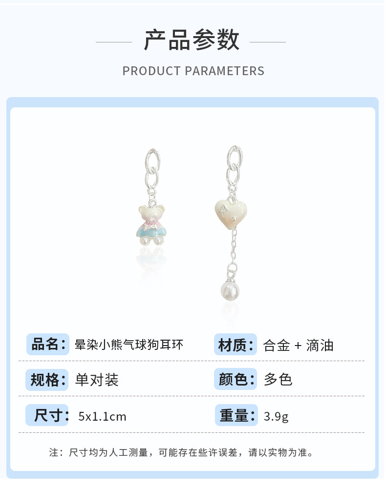 新款卡通蓝粉色晕染气球狗耳环女可爱小熊彩色甜美学生多巴胺耳饰