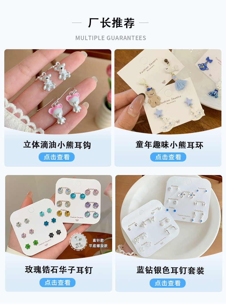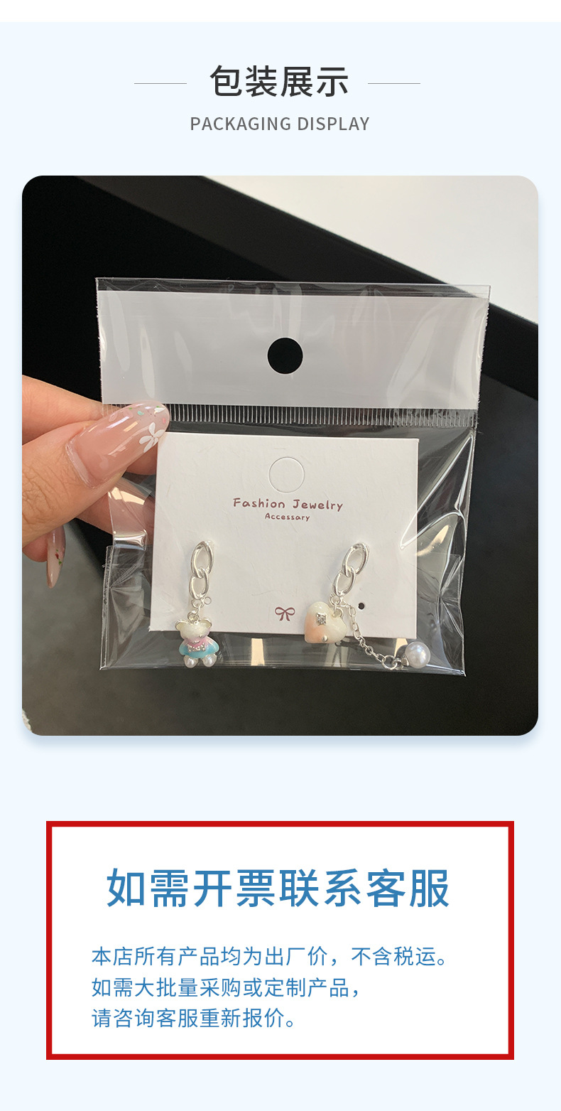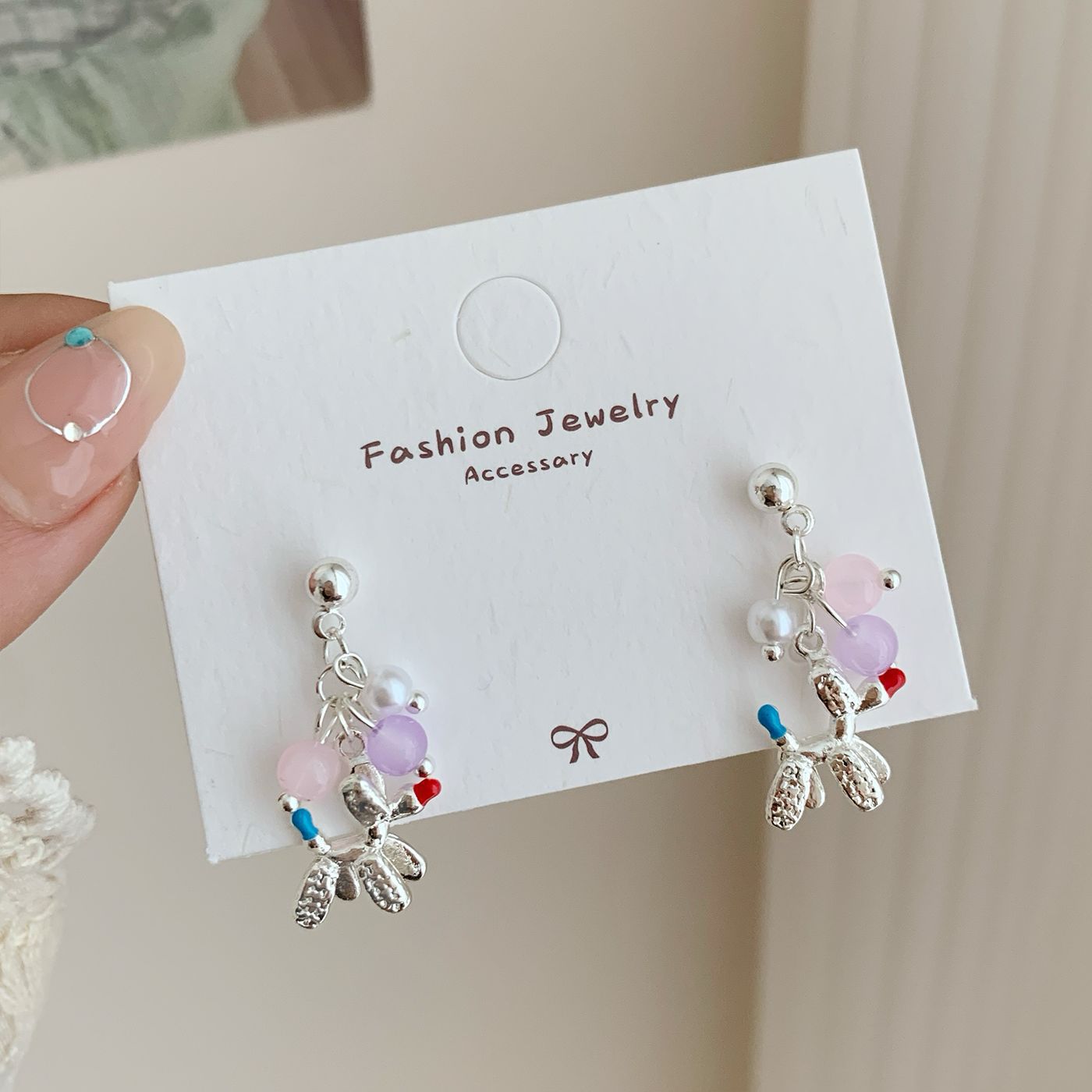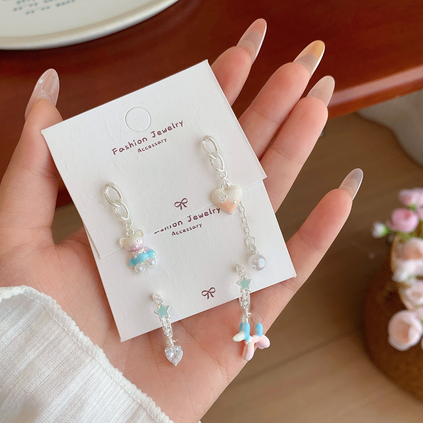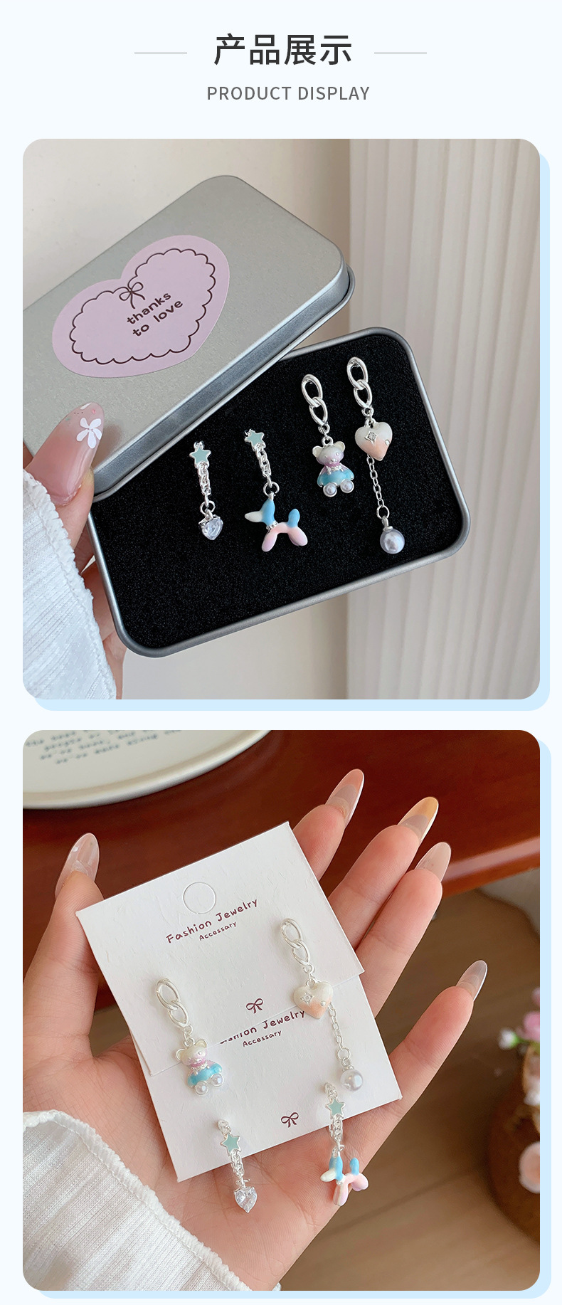 新款卡通蓝粉色晕染气球狗耳环女可爱小熊彩色甜美学生多巴胺耳饰