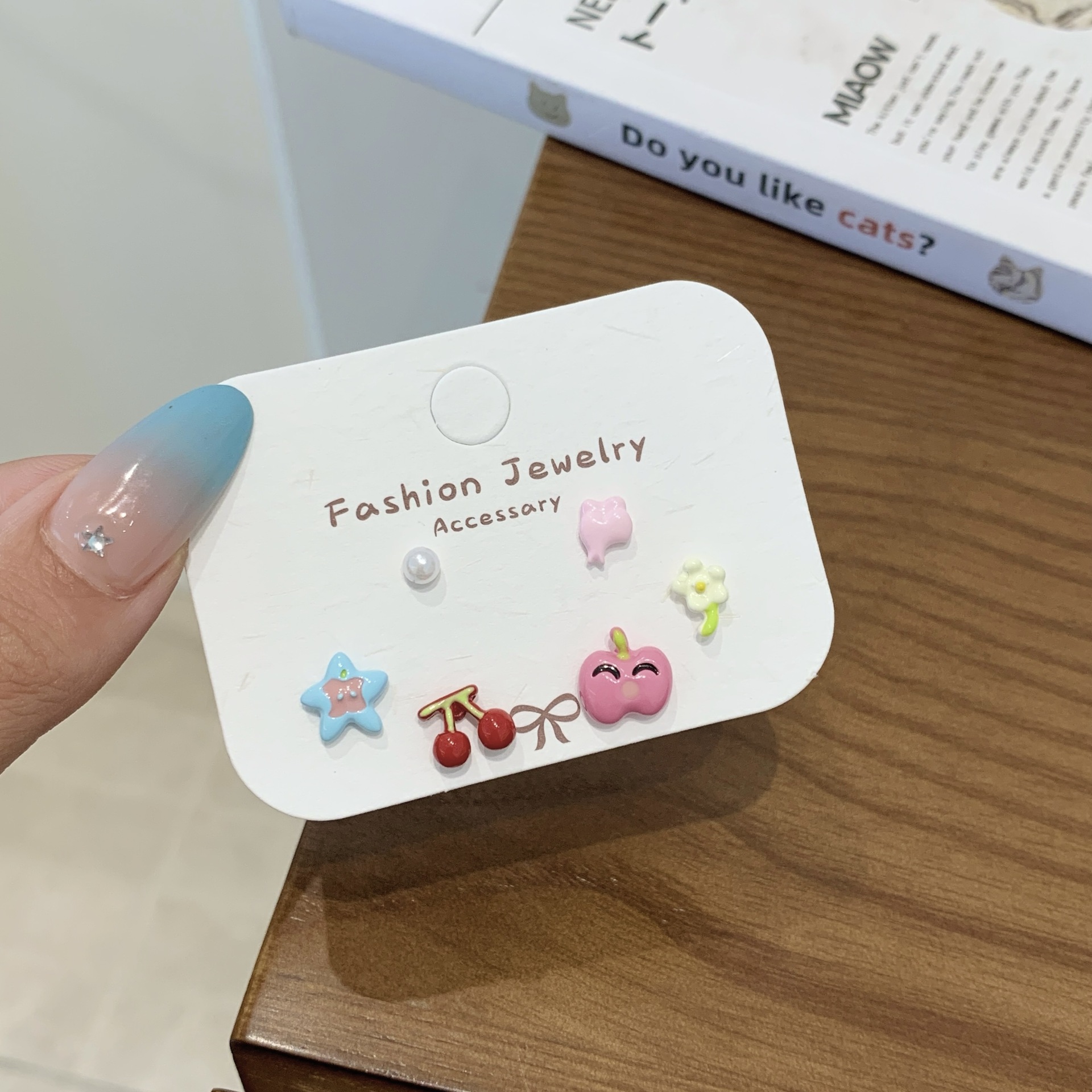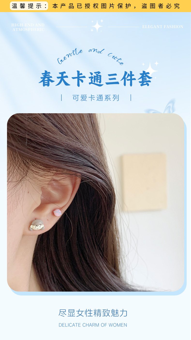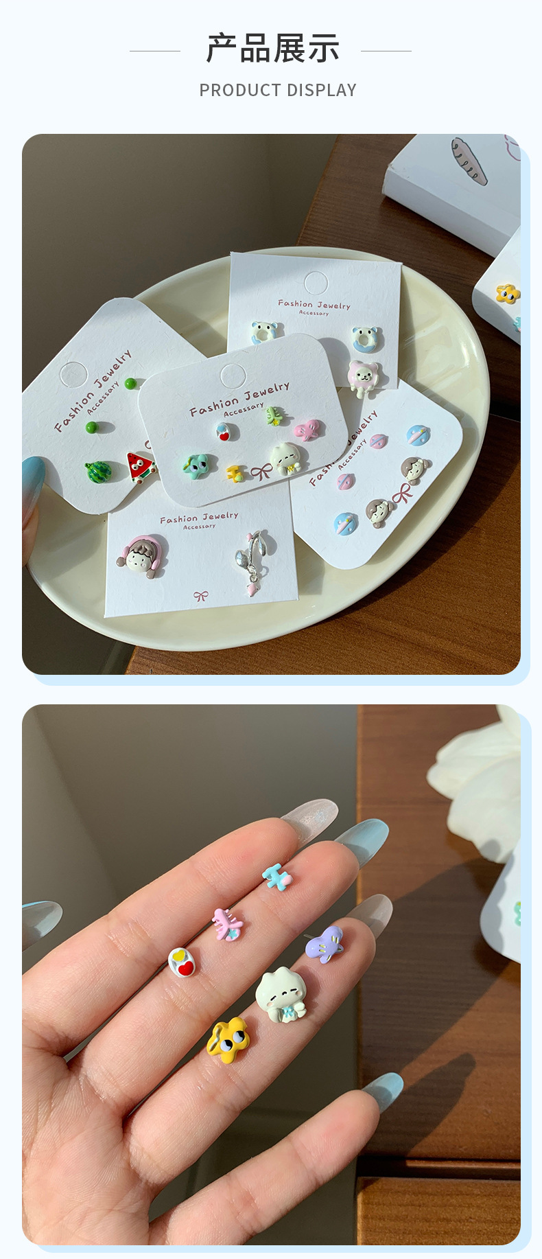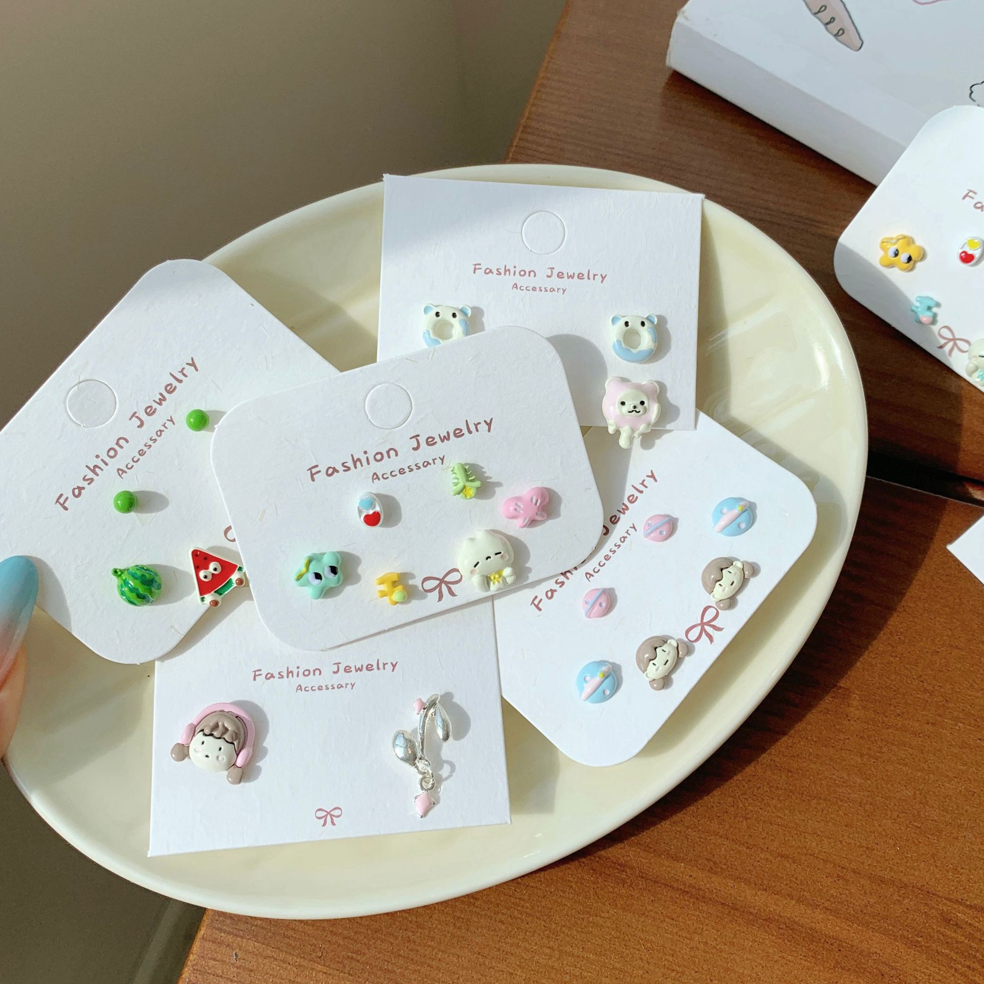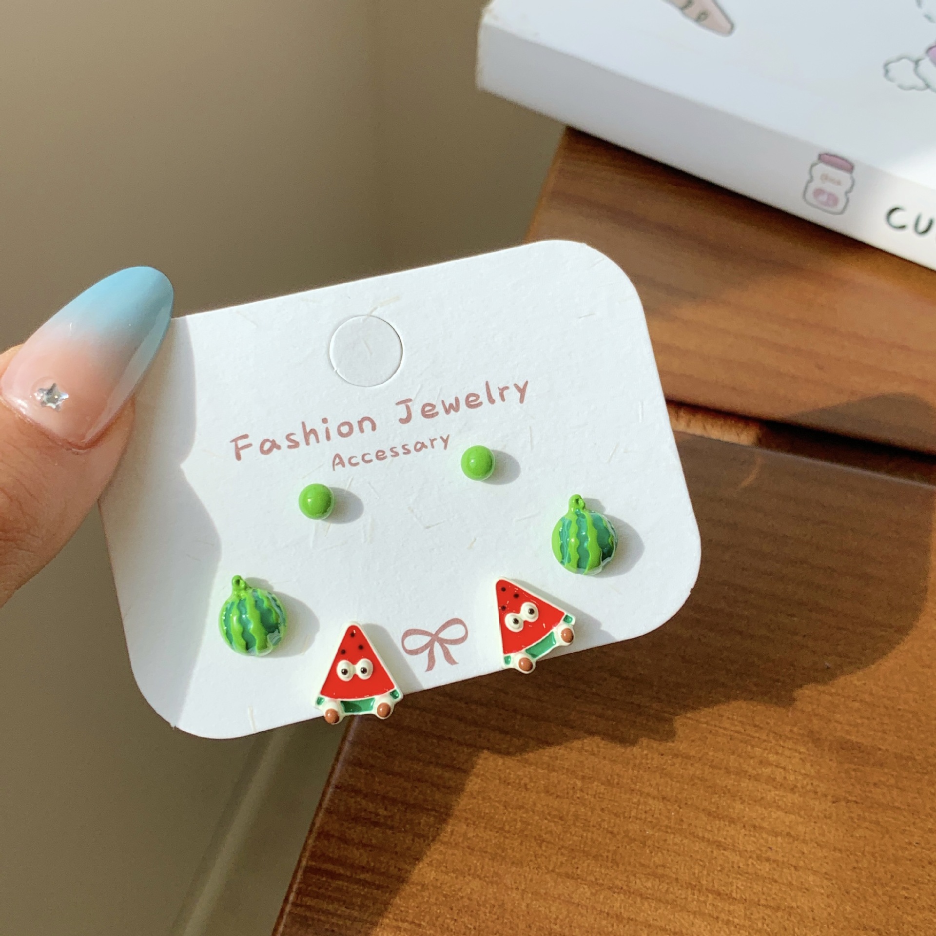 卡通新款可爱西瓜女孩耳钉少女心银针小巧精致学生三件套水果耳饰