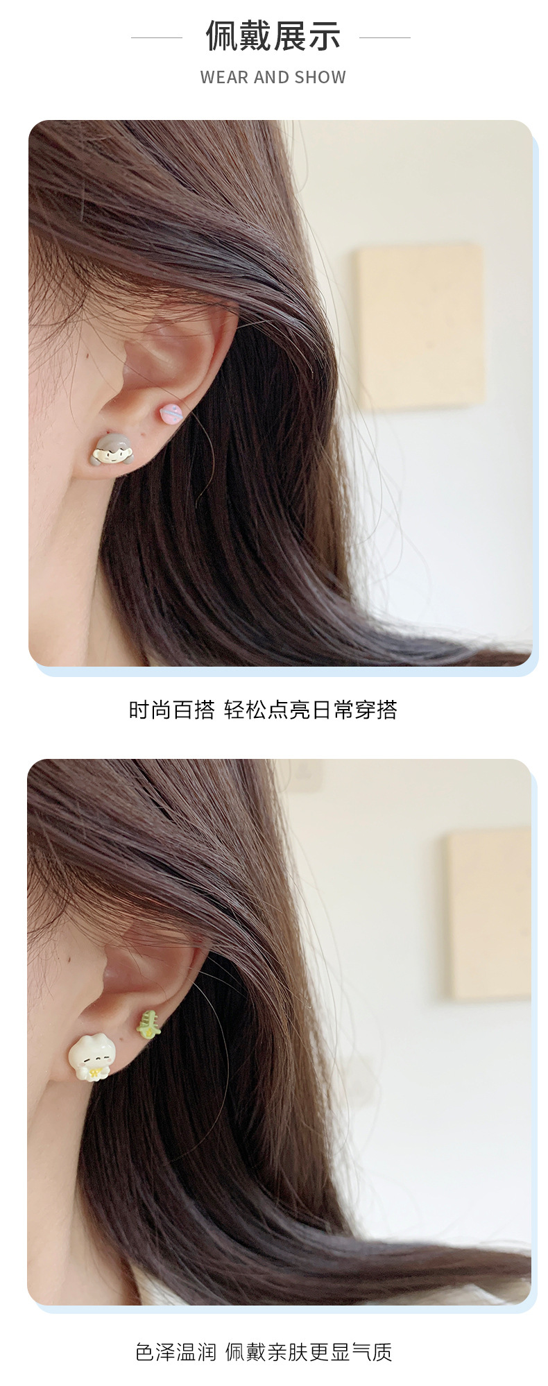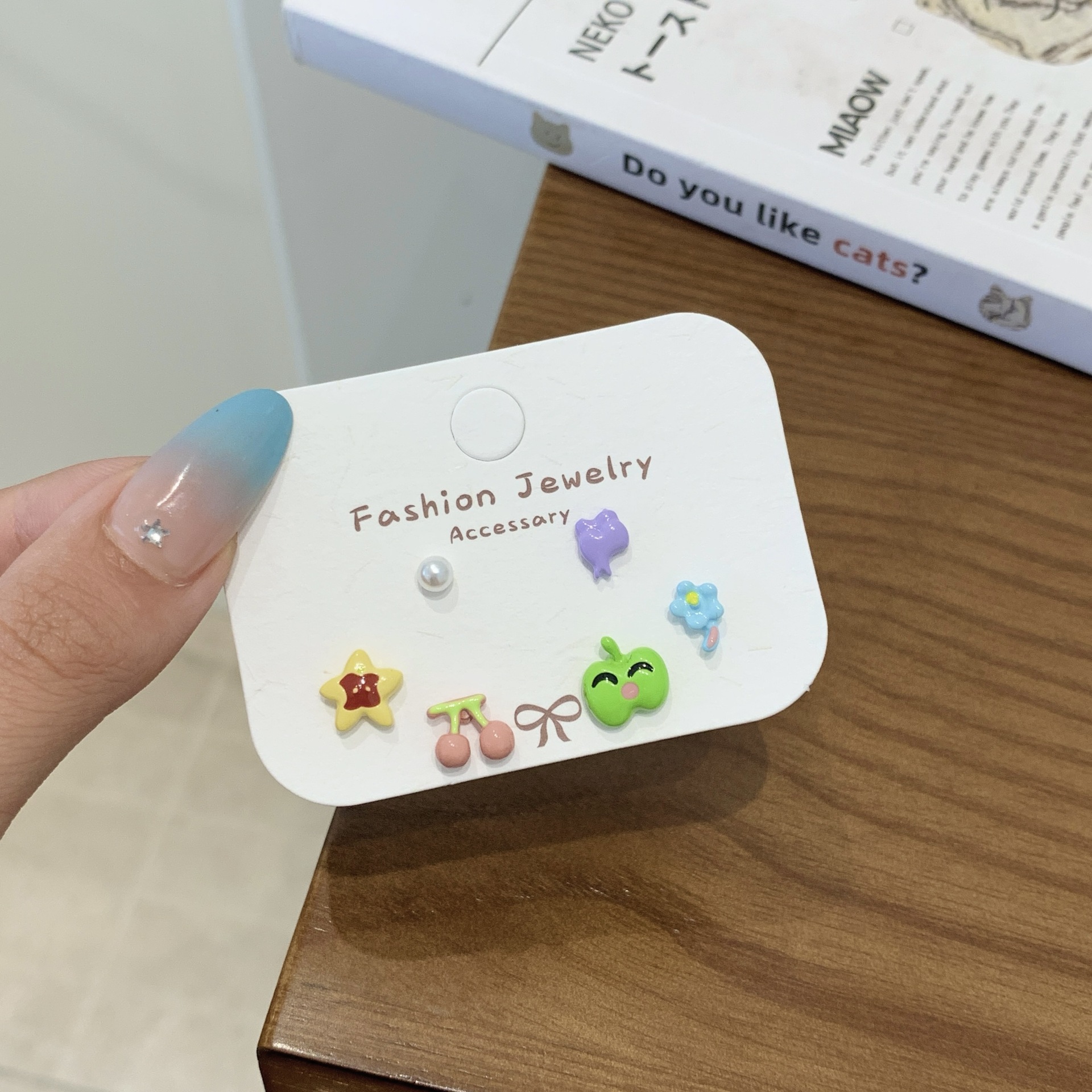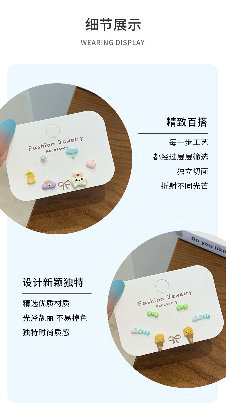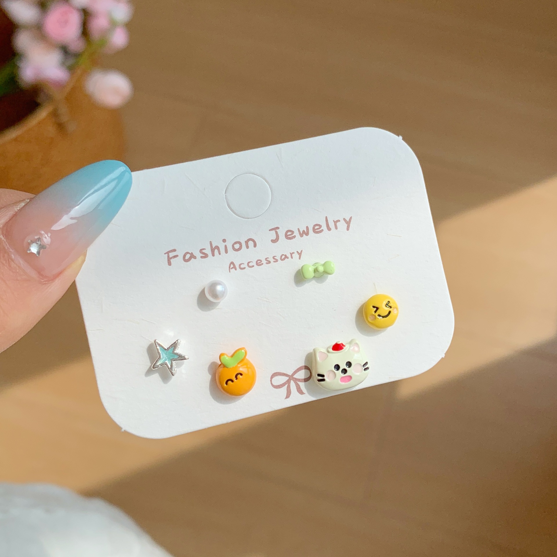 卡通新款可爱西瓜女孩耳钉少女心银针小巧精致学生三件套水果耳饰