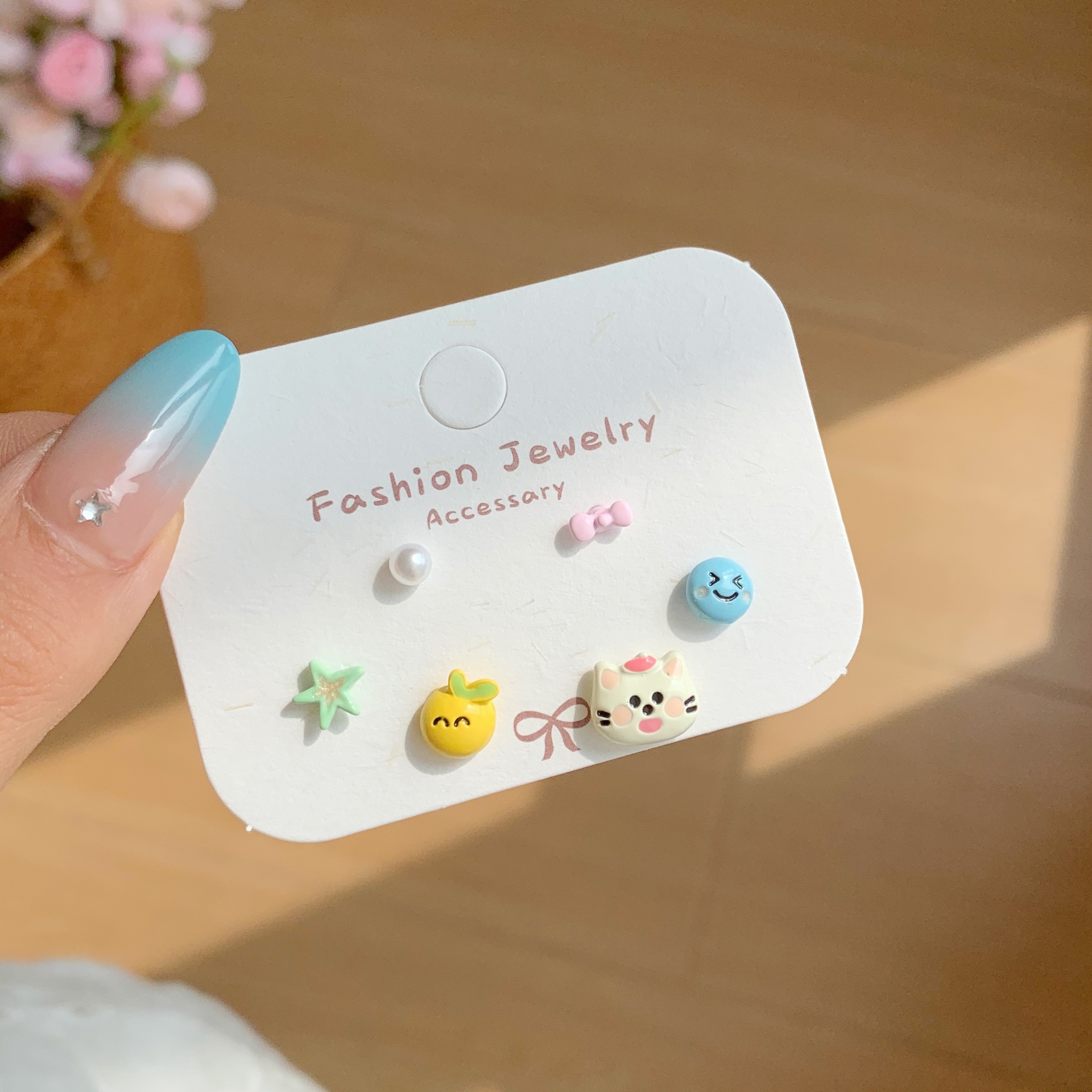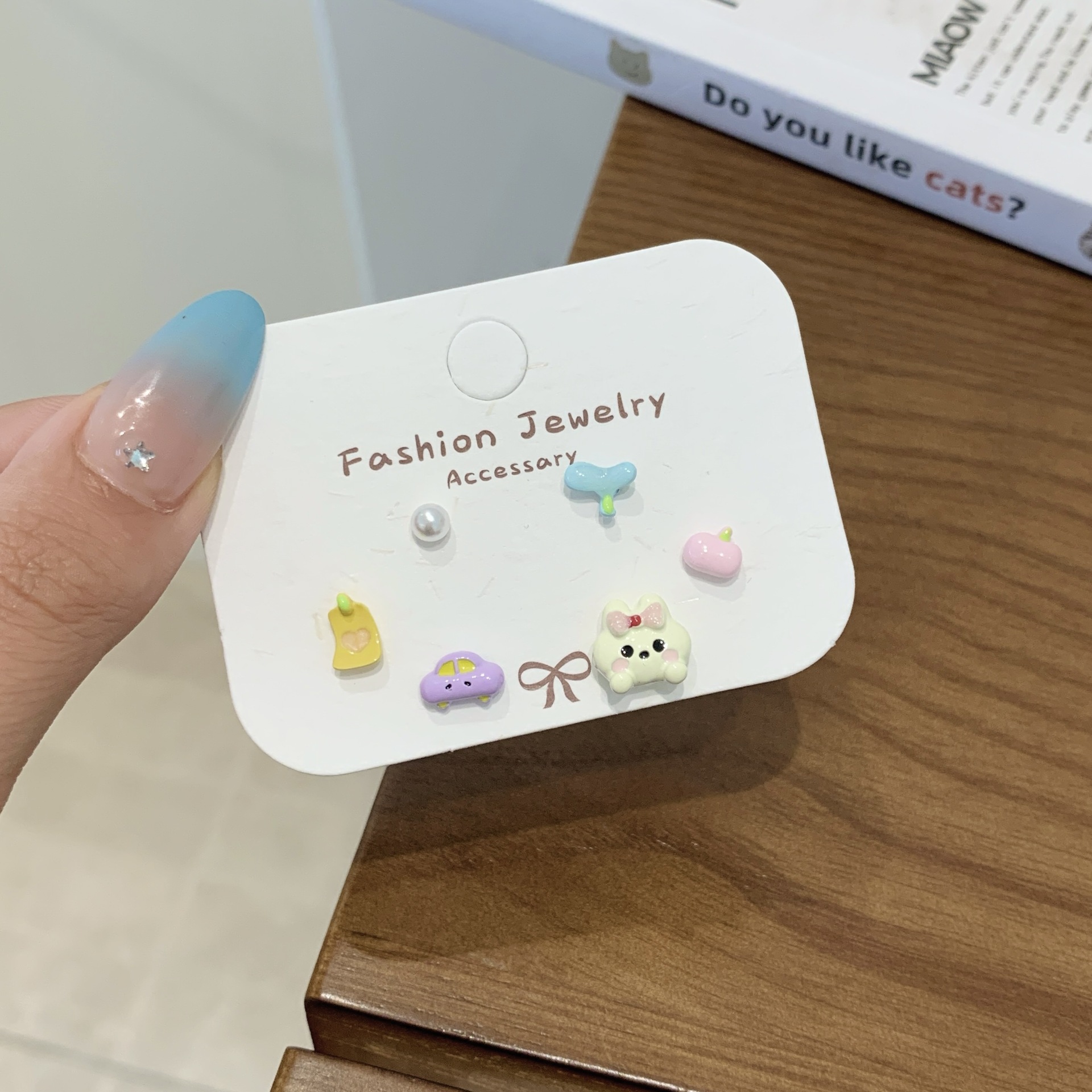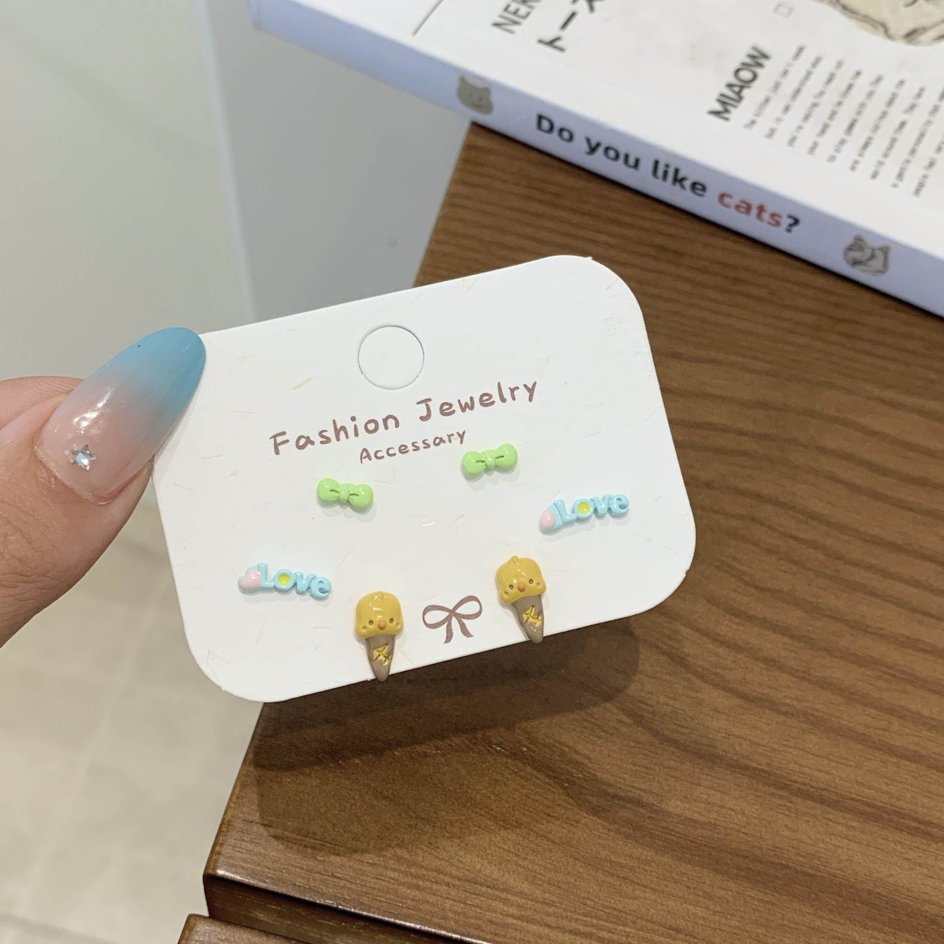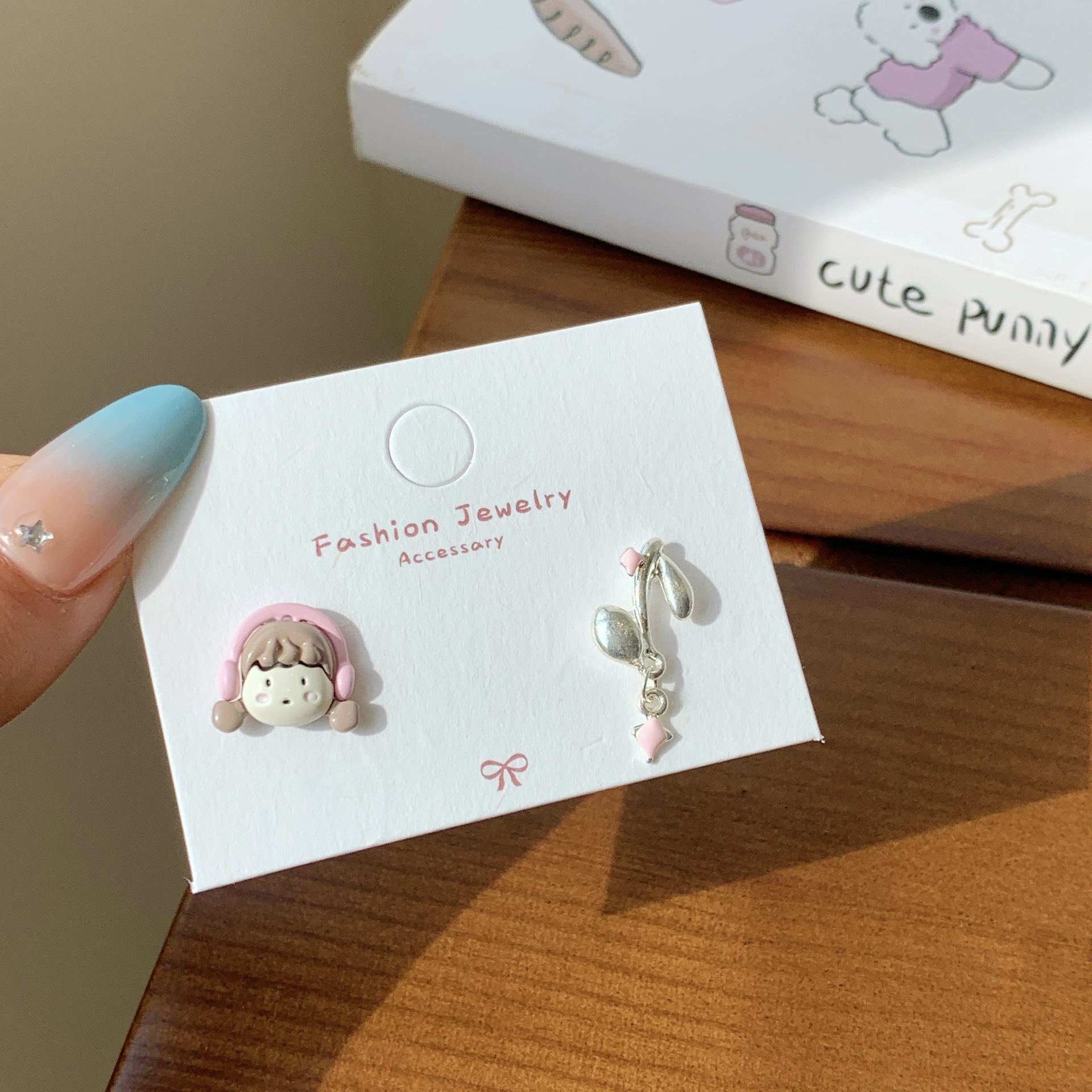 卡通新款可爱西瓜女孩耳钉少女心银针小巧精致学生三件套水果耳饰