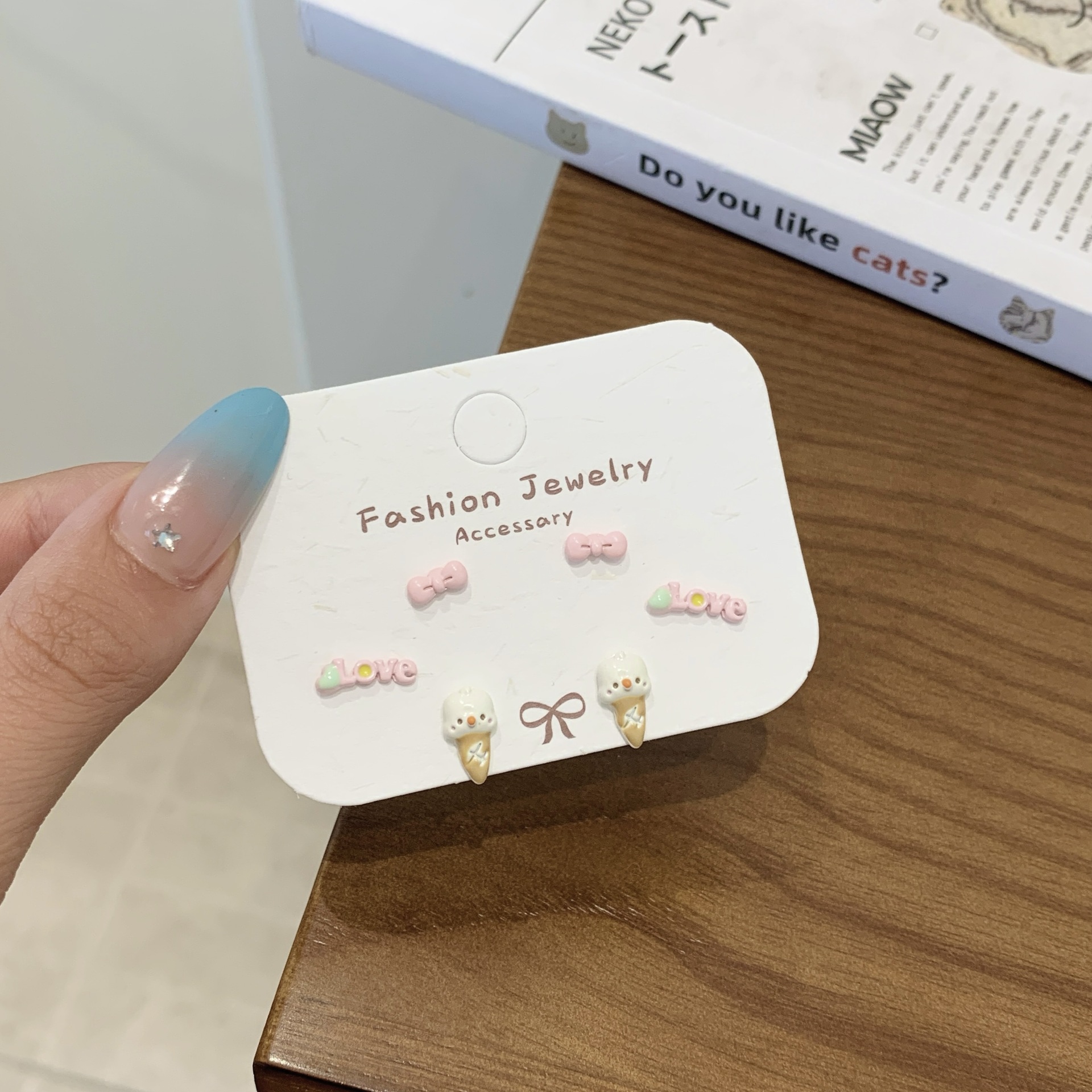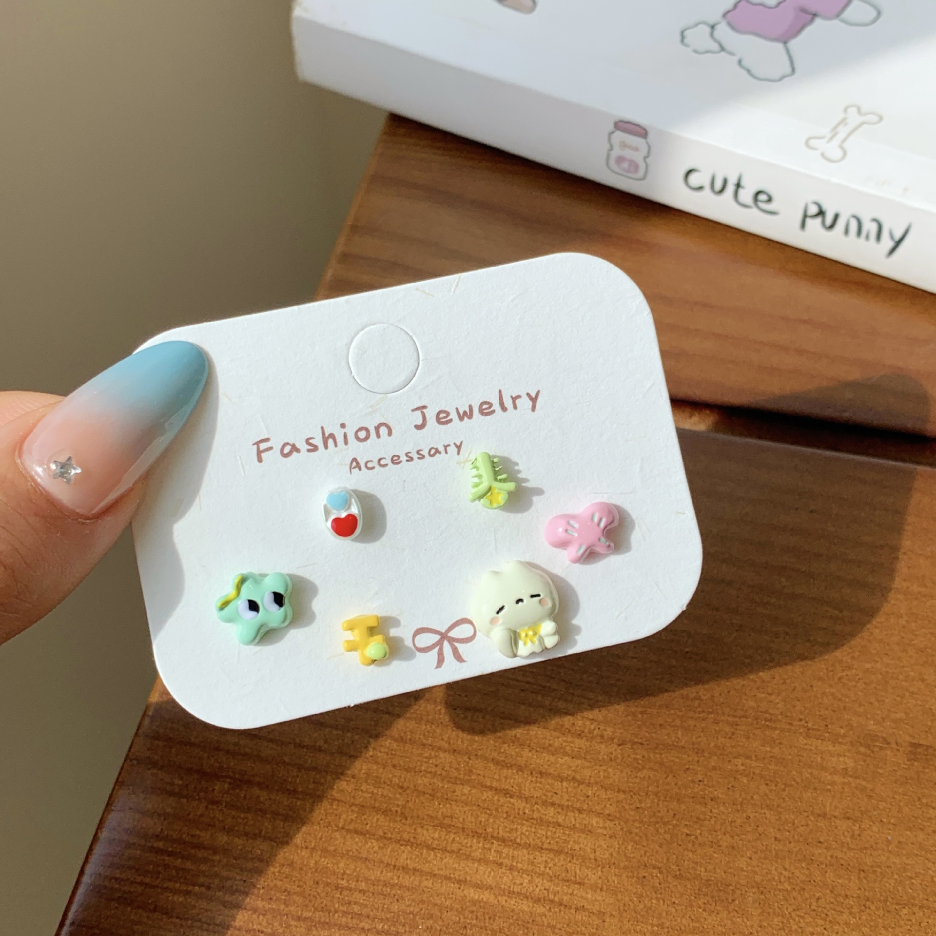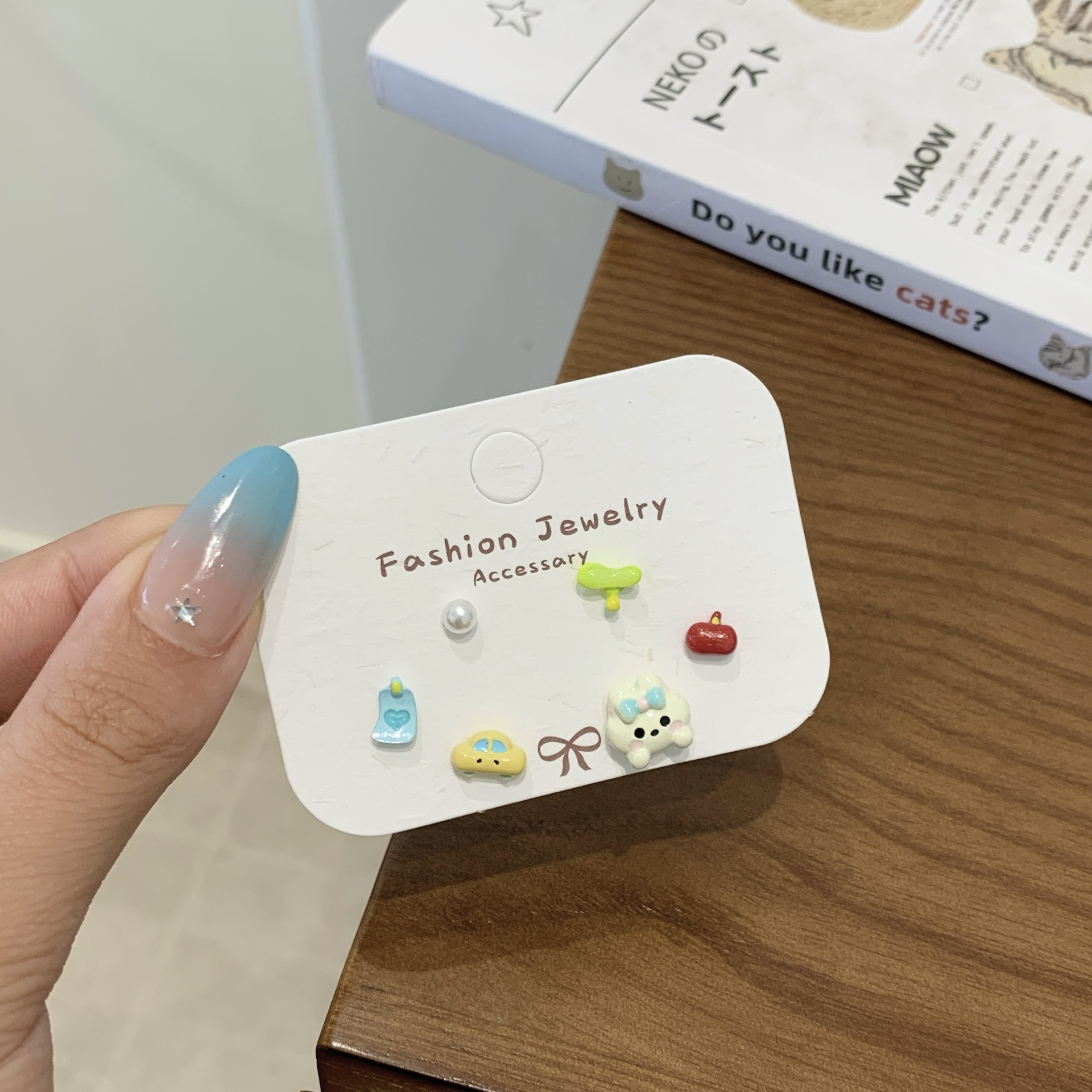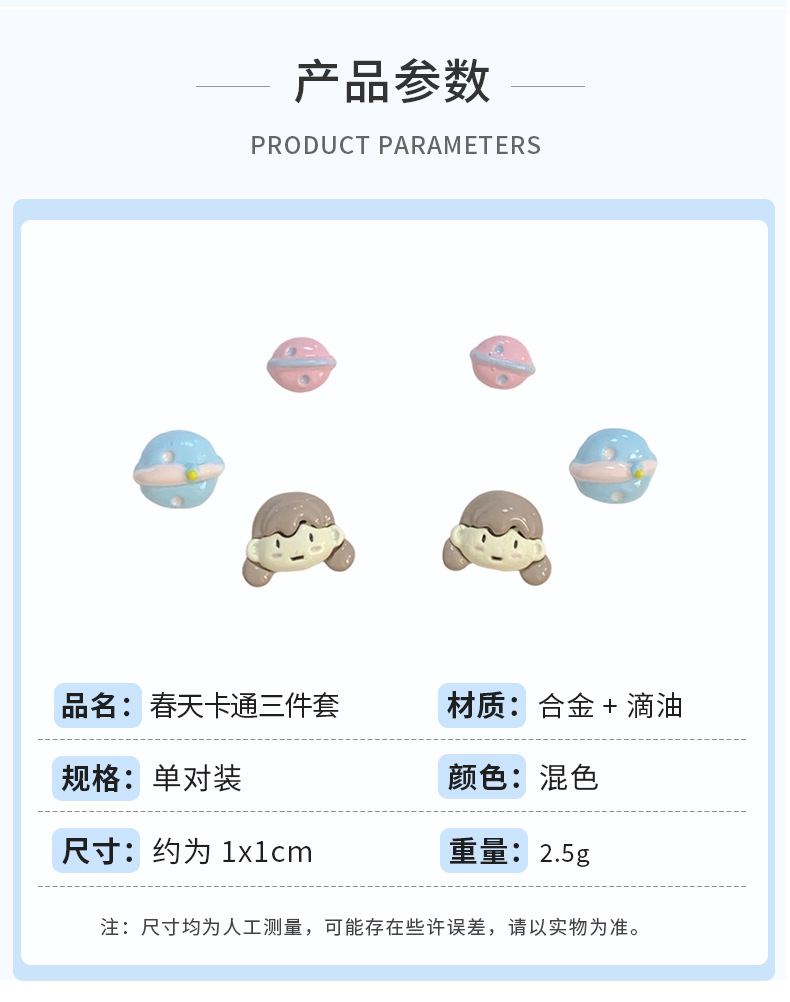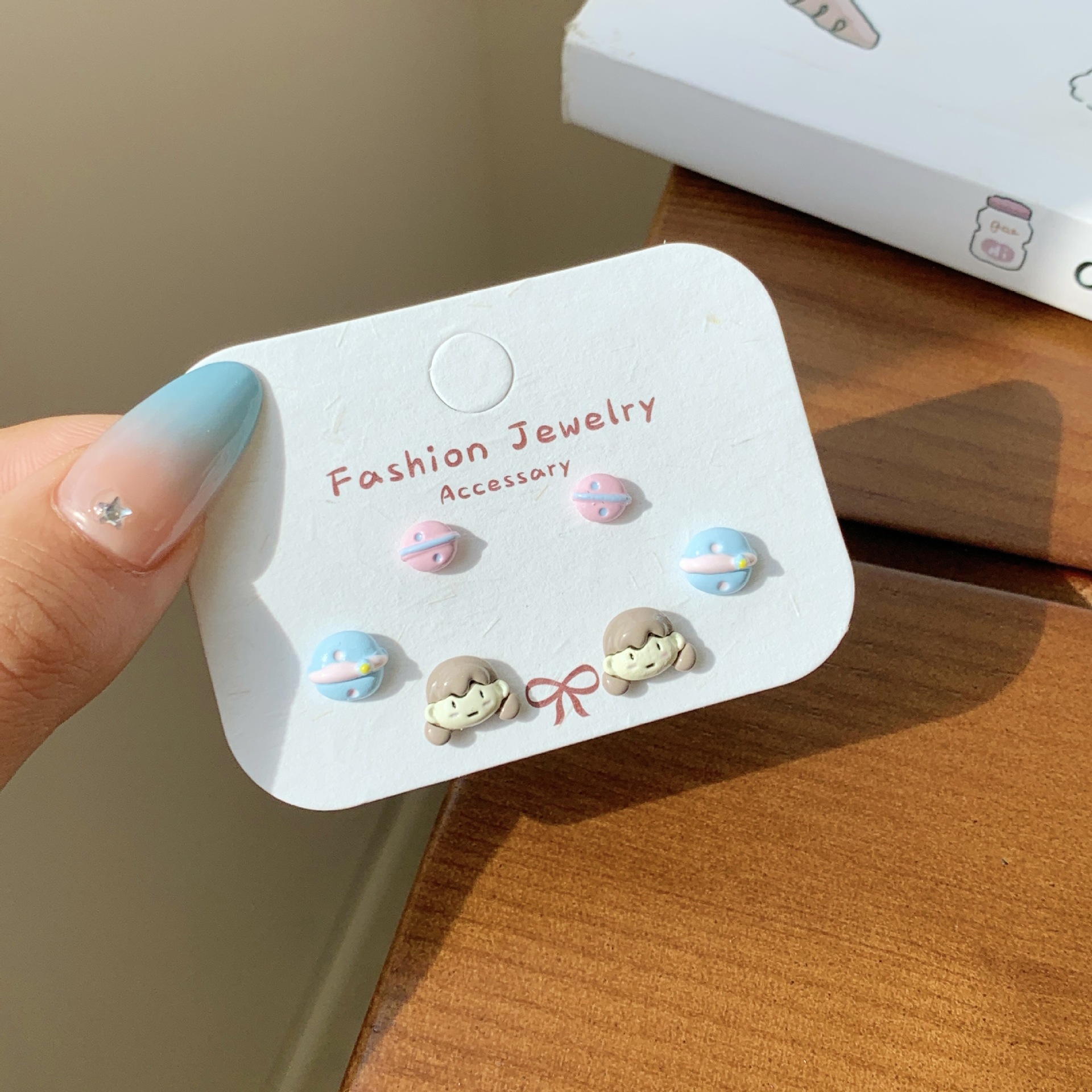 卡通新款可爱西瓜女孩耳钉少女心银针小巧精致学生三件套水果耳饰