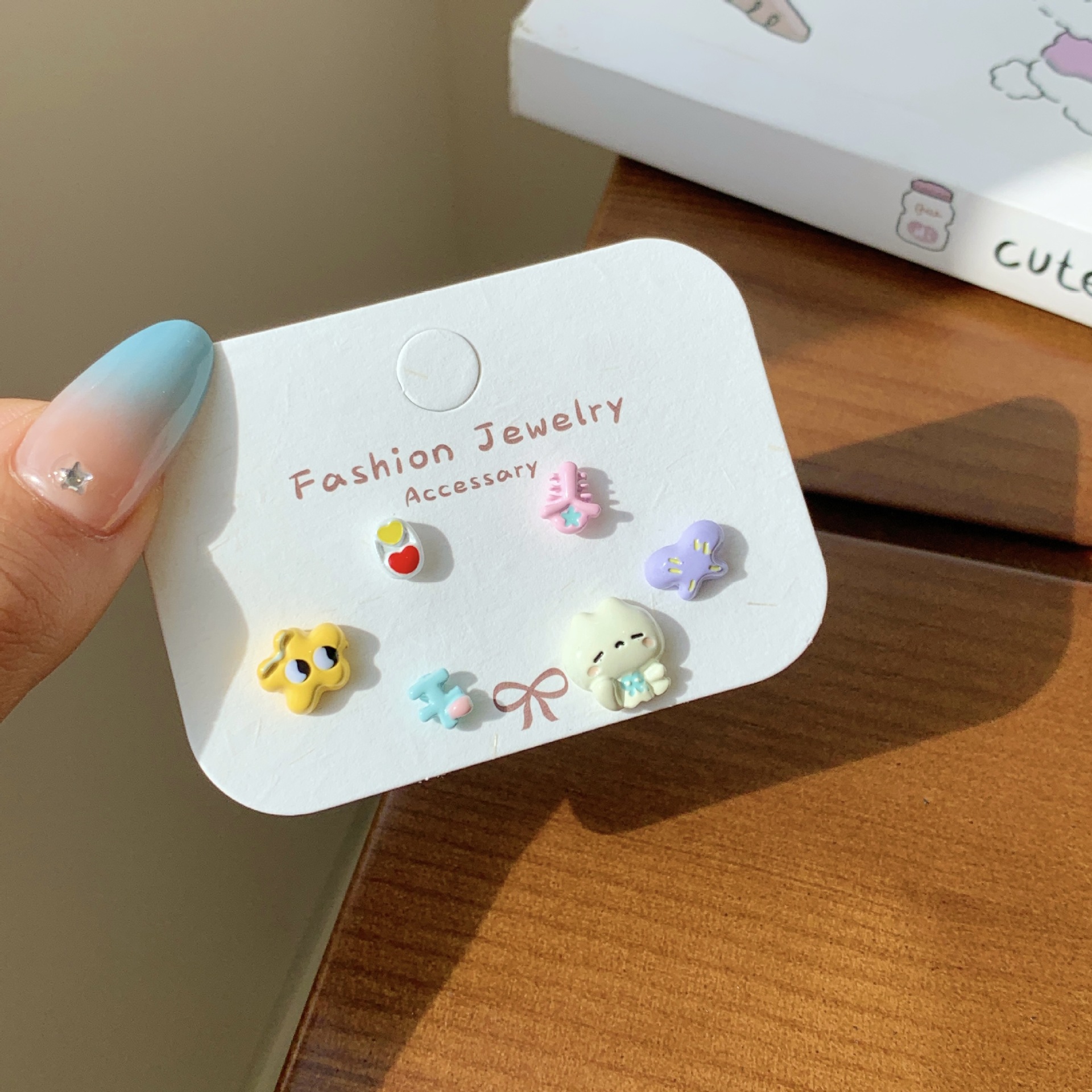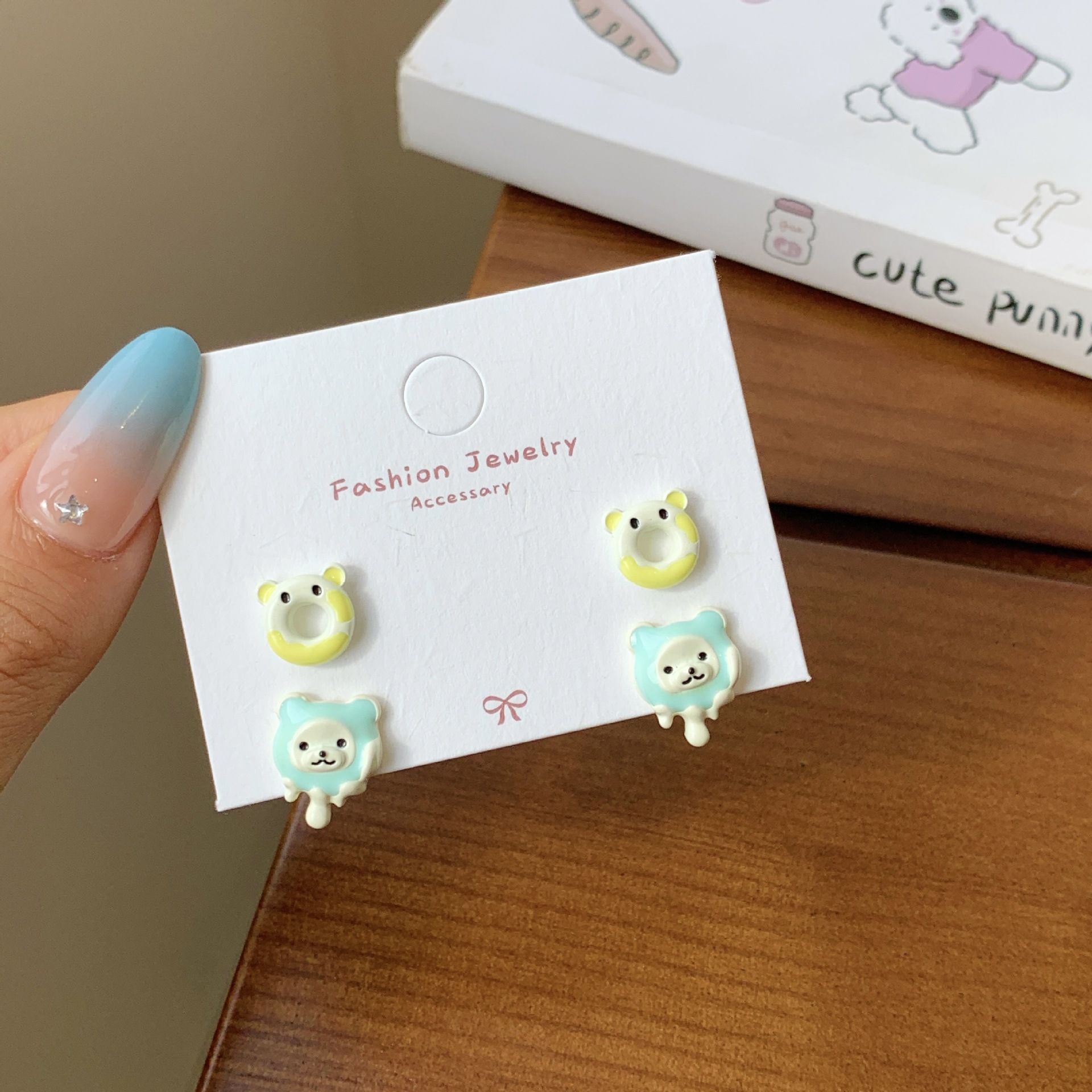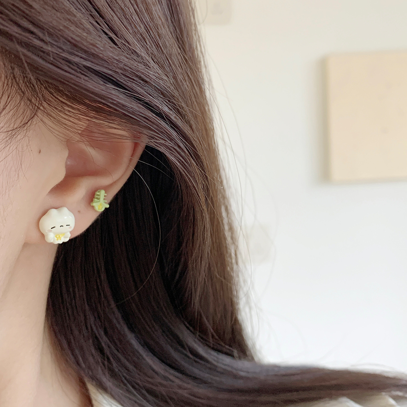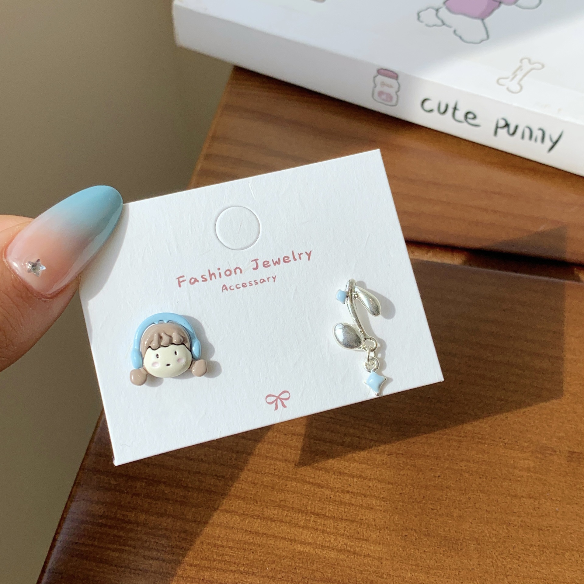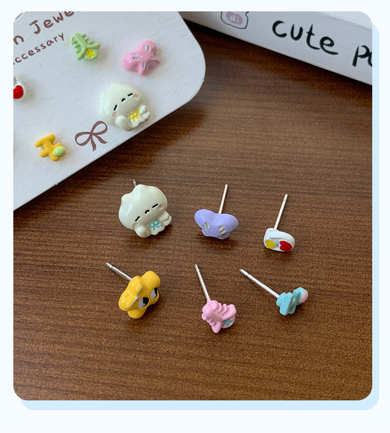 卡通新款可爱西瓜女孩耳钉少女心银针小巧精致学生三件套水果耳饰