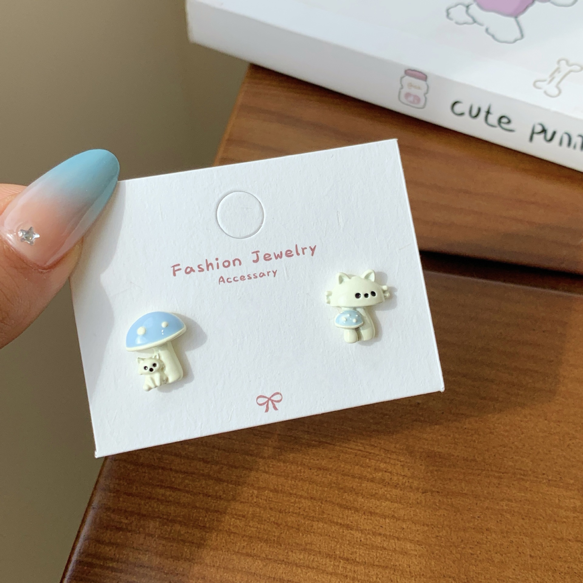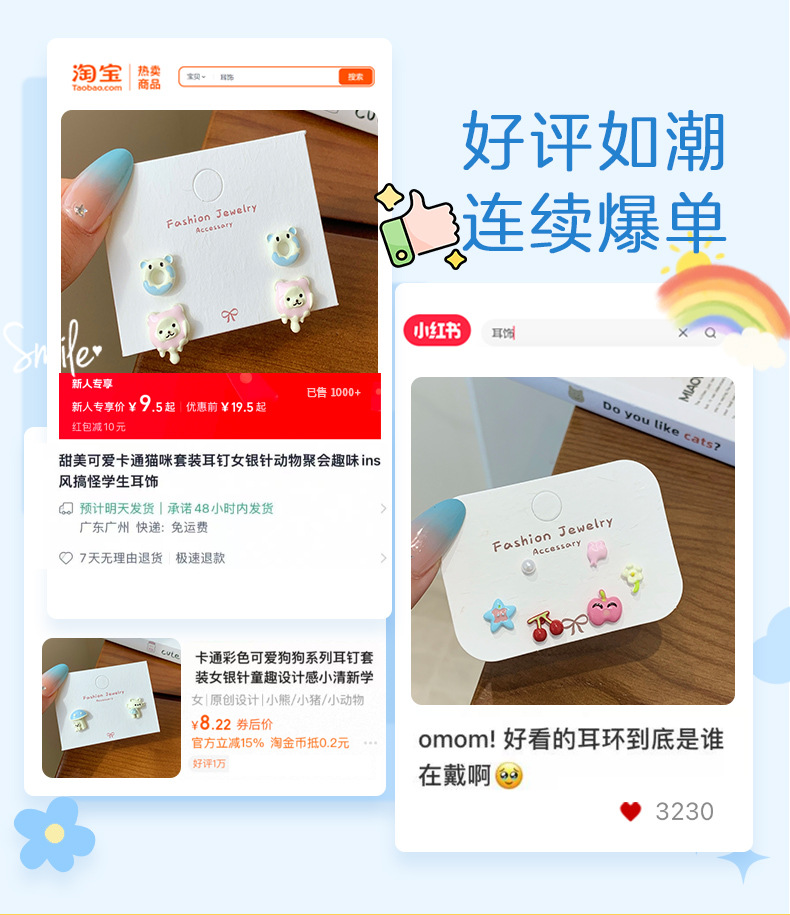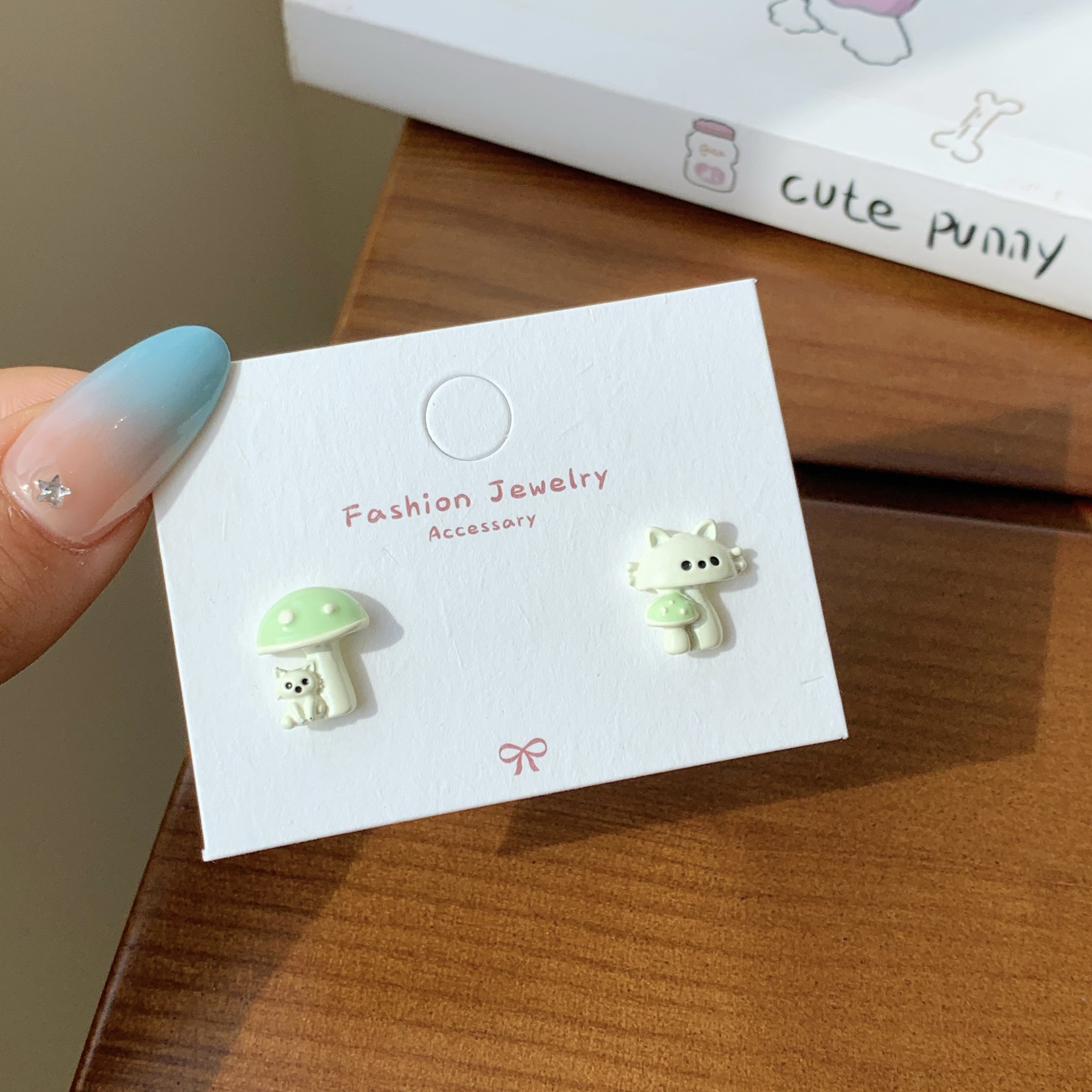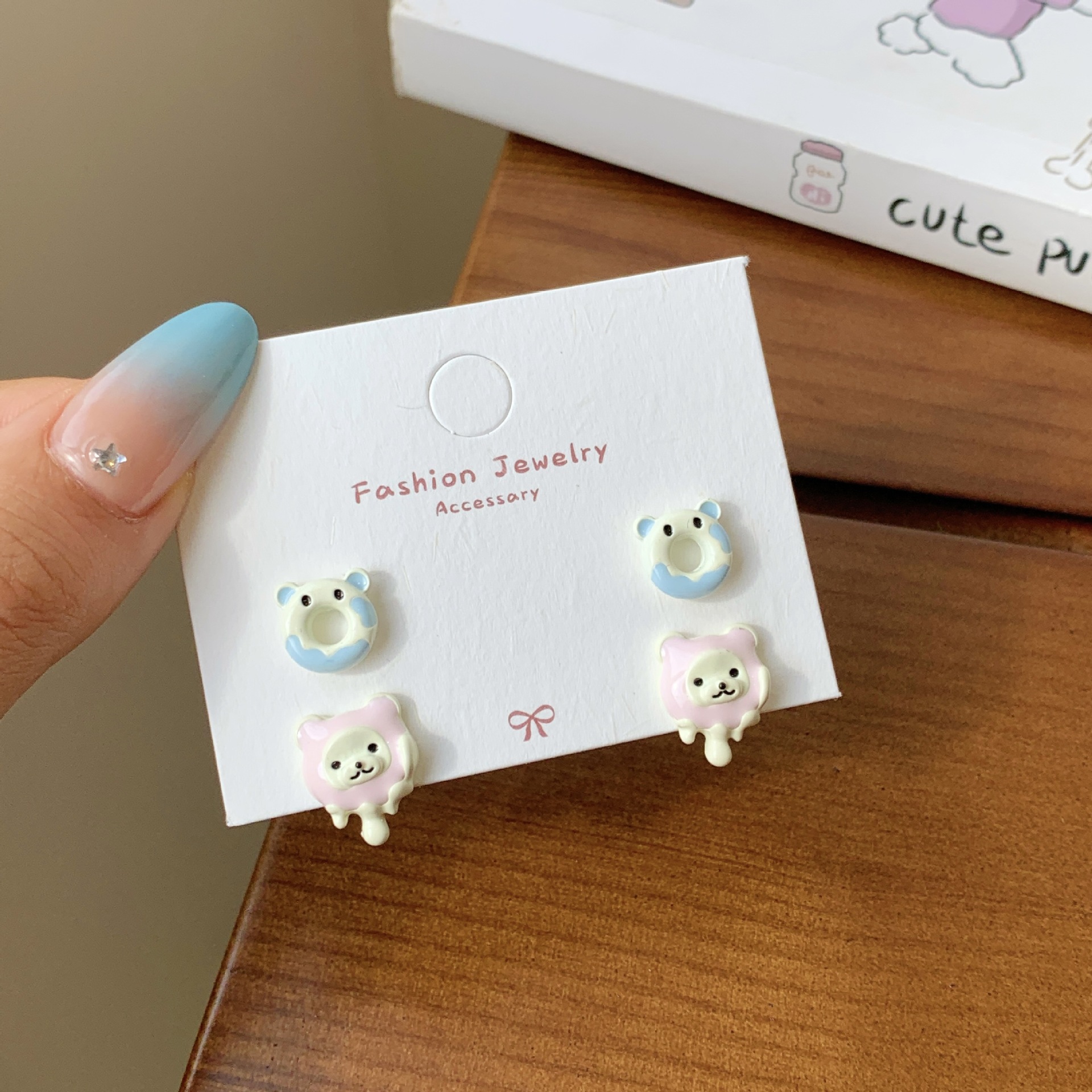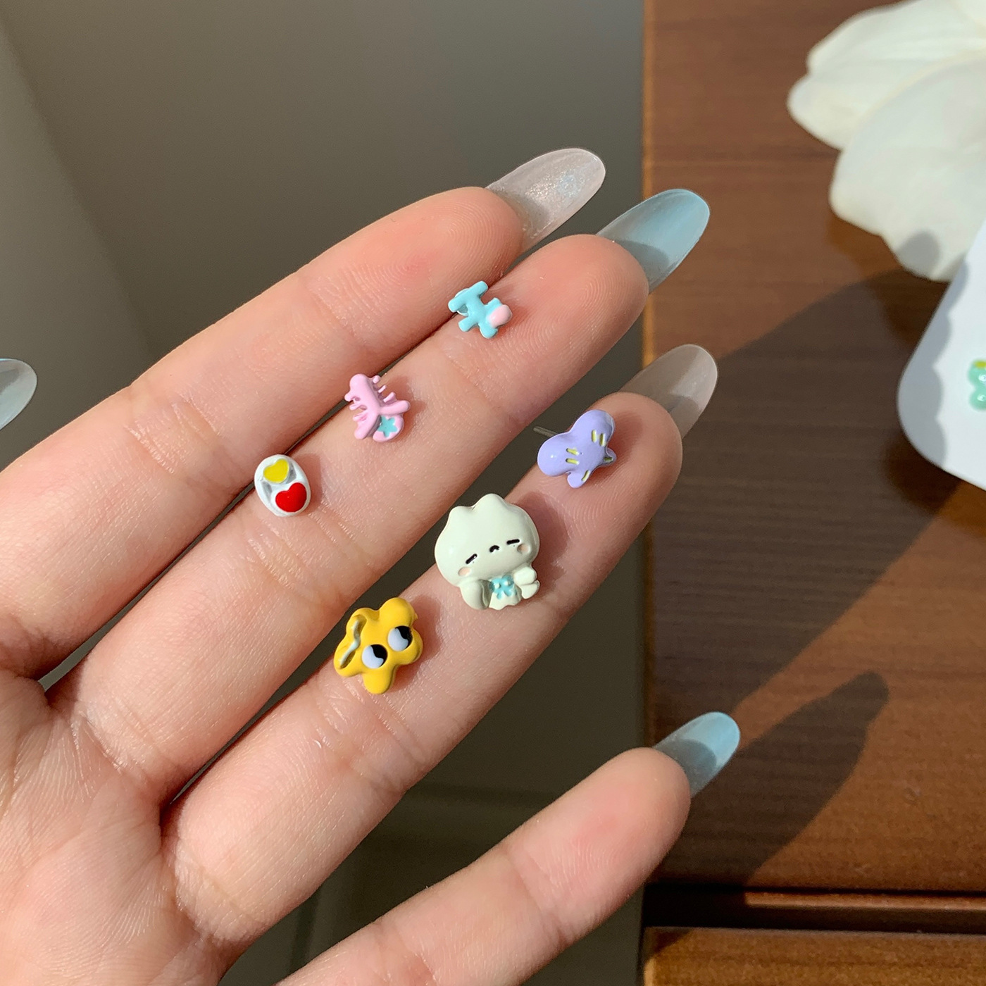 卡通新款可爱西瓜女孩耳钉少女心银针小巧精致学生三件套水果耳饰