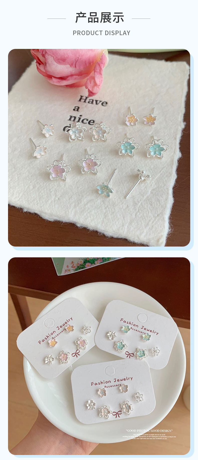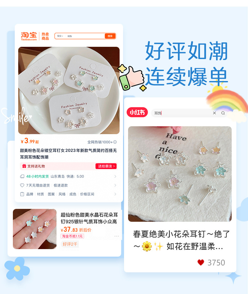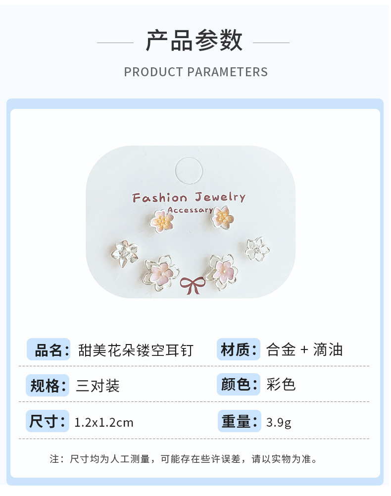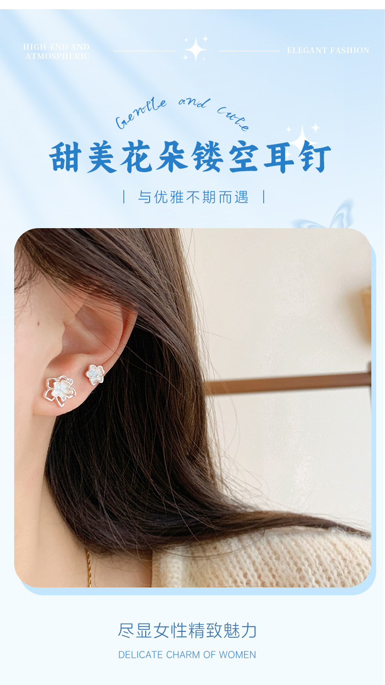 夏季甜美超仙镂空花花耳钉套装女银针清新高级感气质精致百搭耳饰