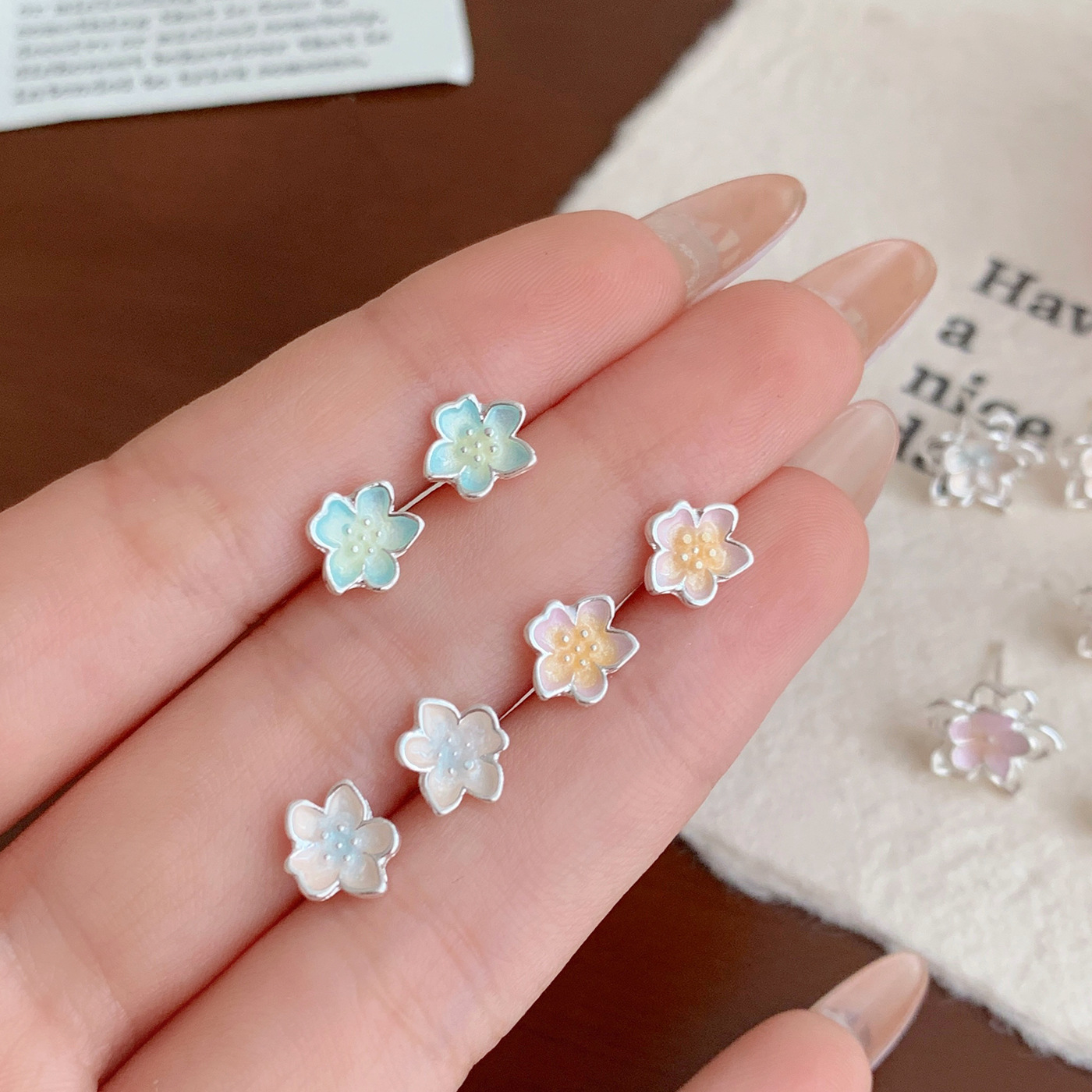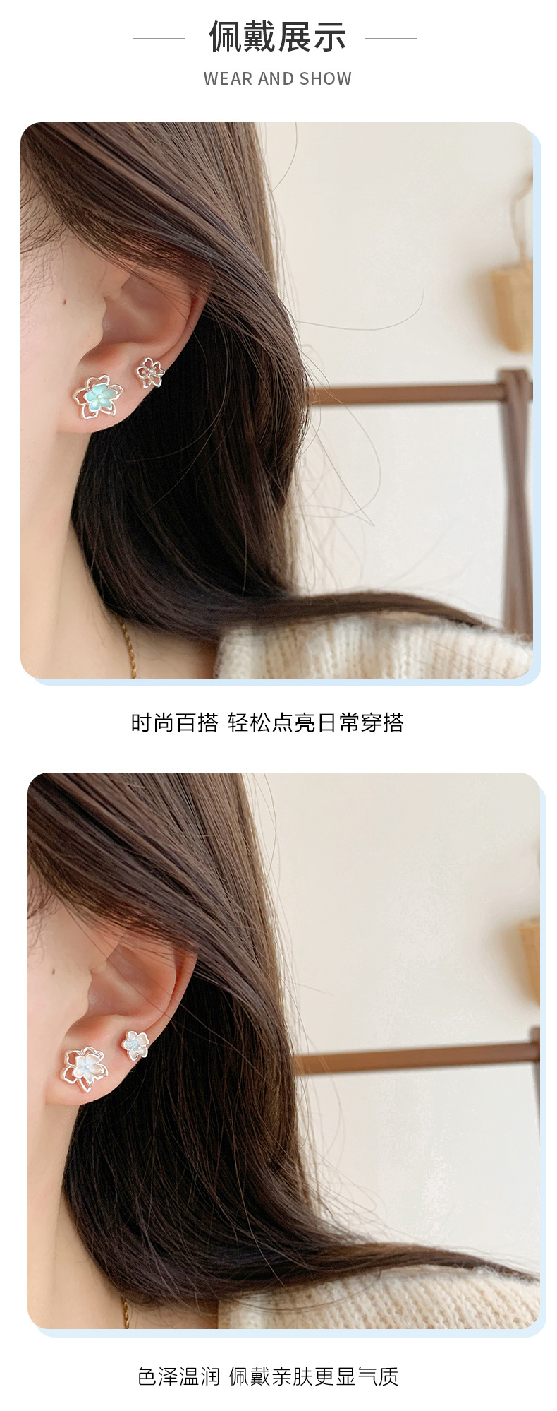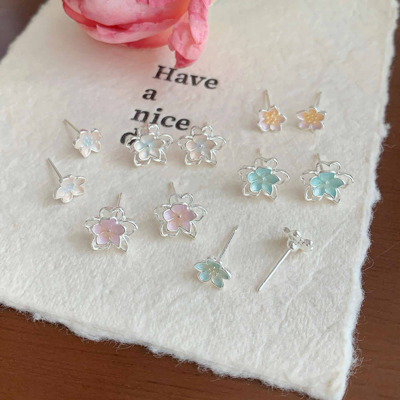 夏季甜美超仙镂空花花耳钉套装女银针清新高级感气质精致百搭耳饰