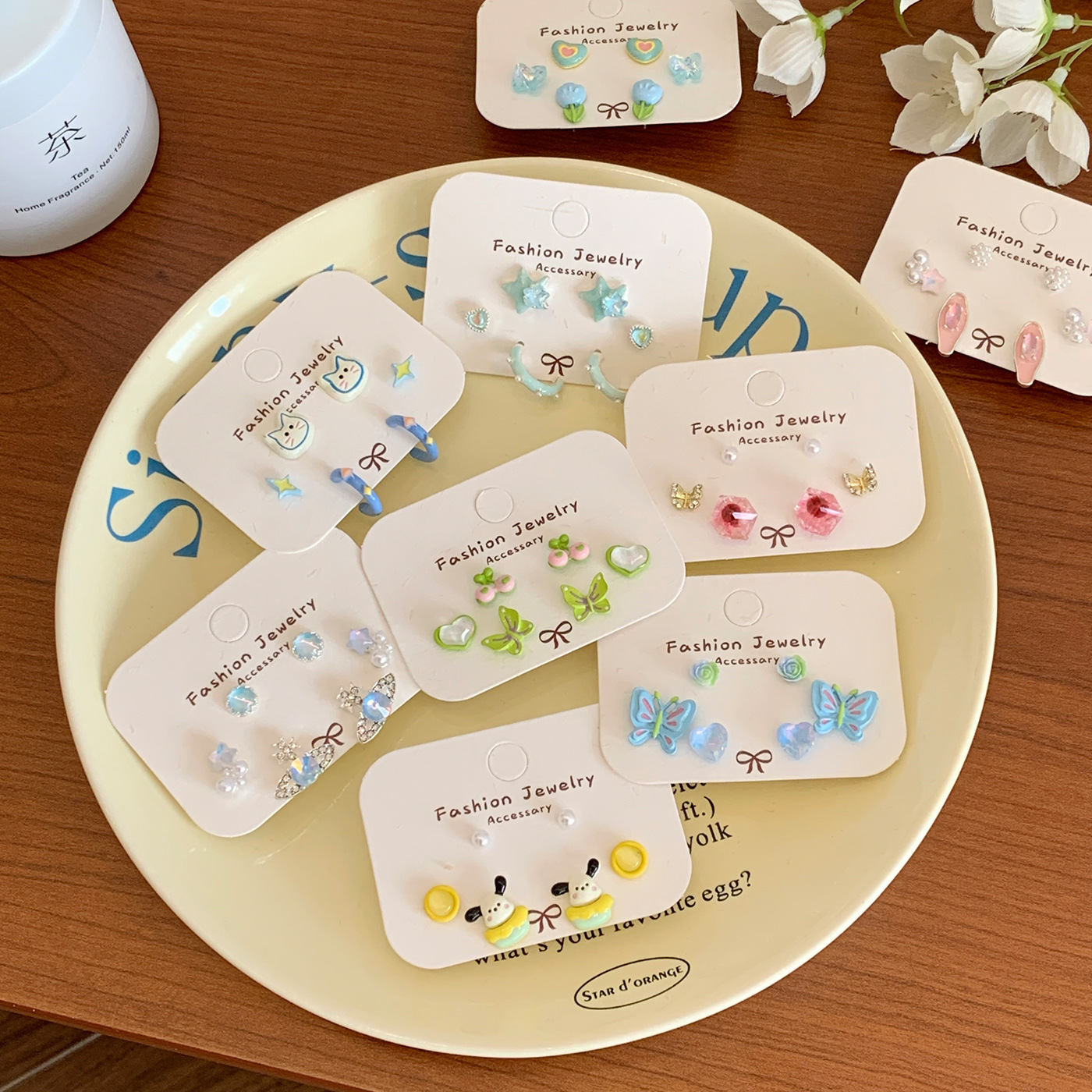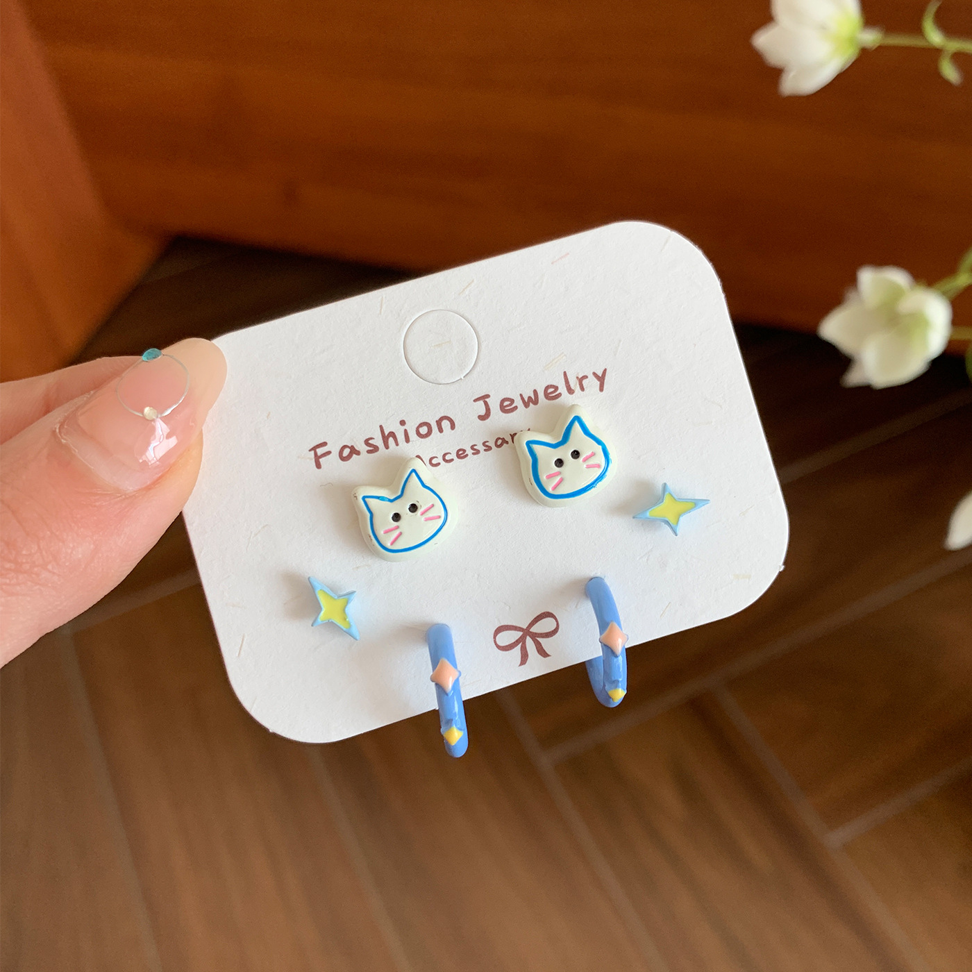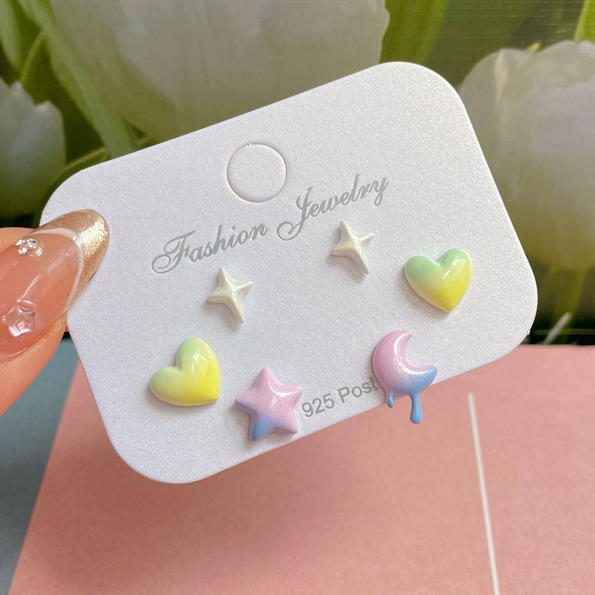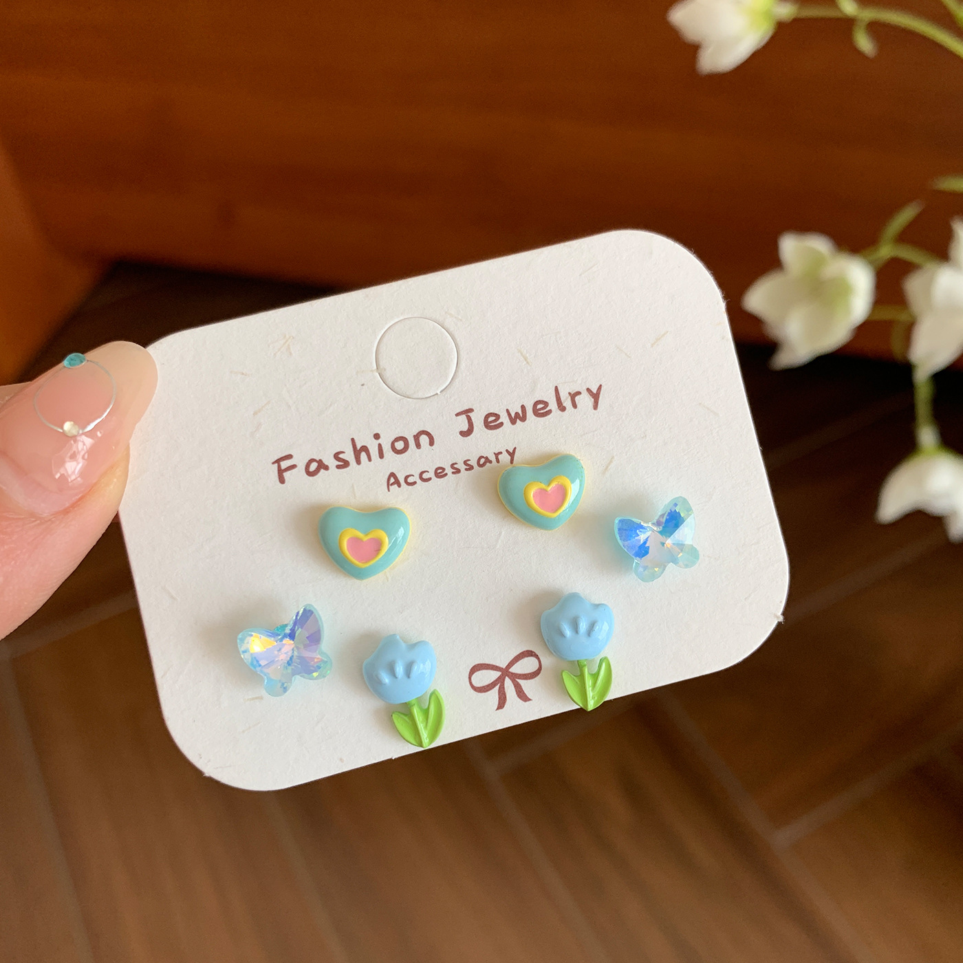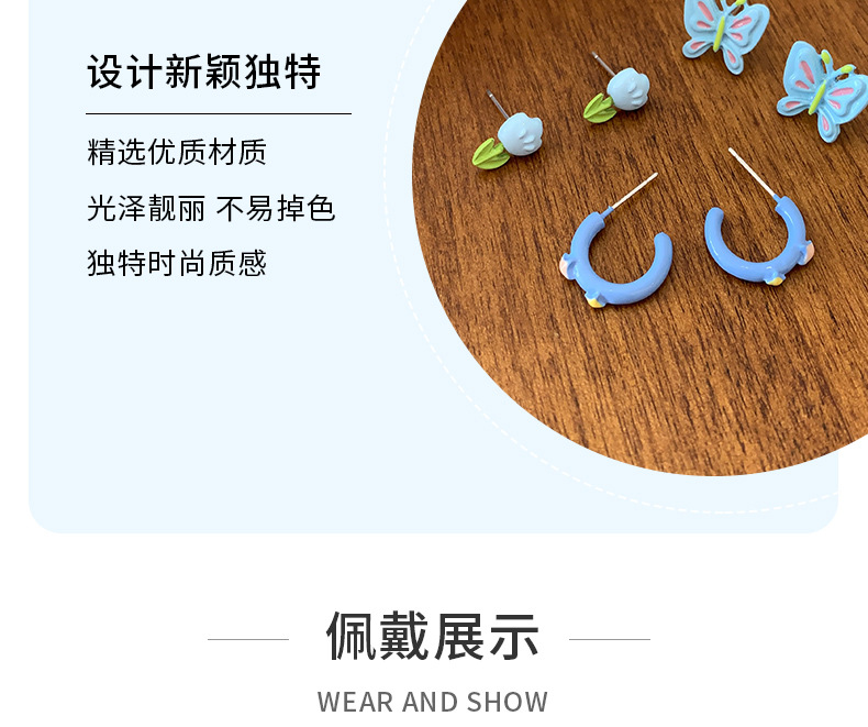 卡通滴油彩色小熊花花耳钉套装女银针小众设计高级感可爱学生耳饰