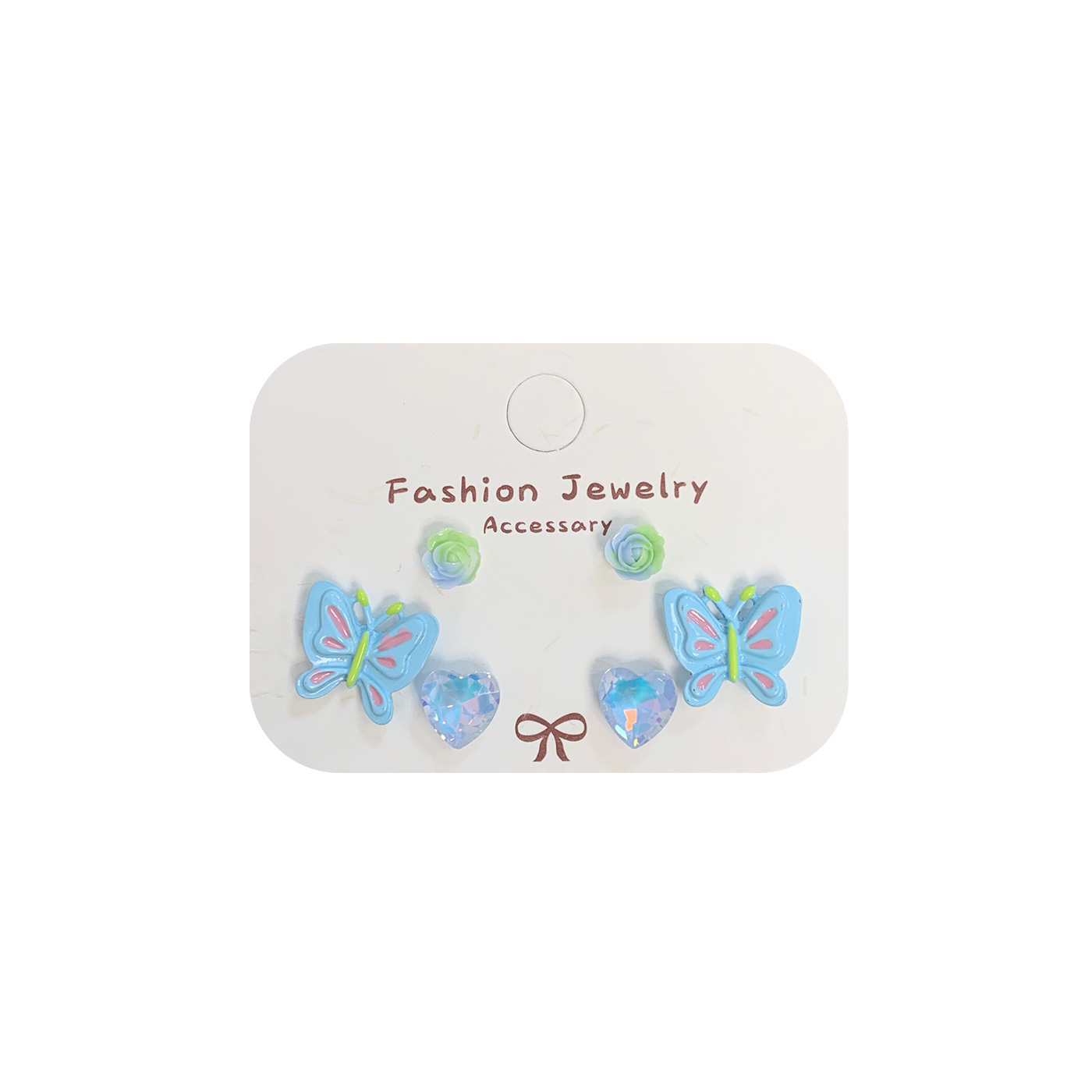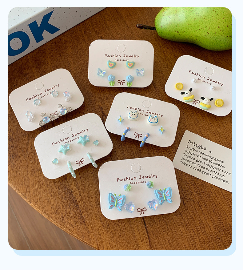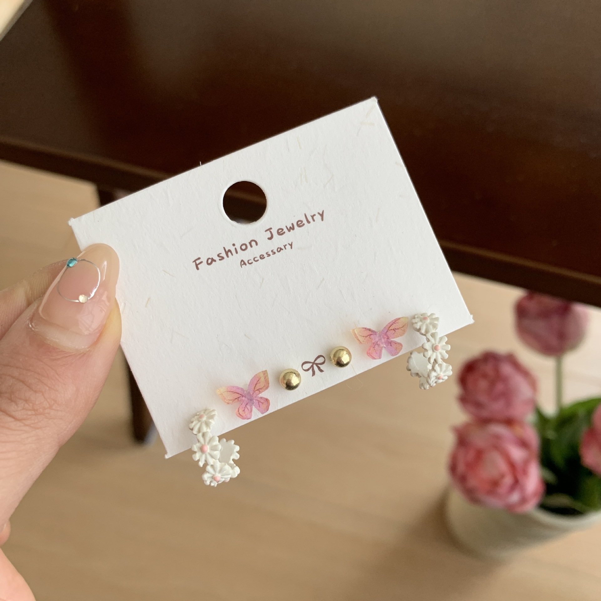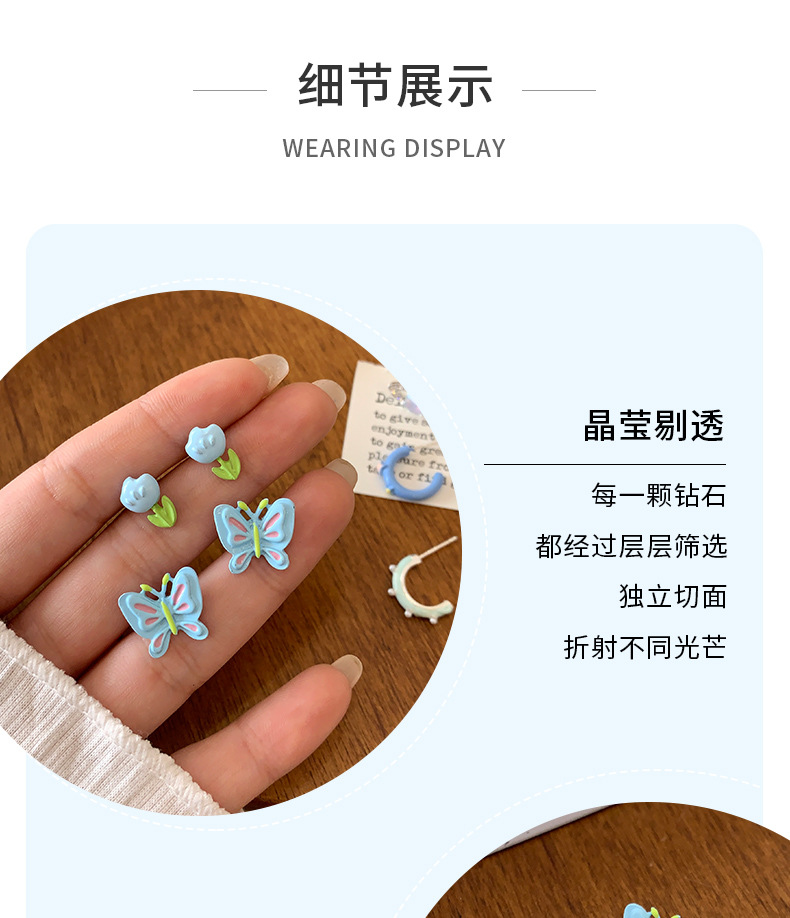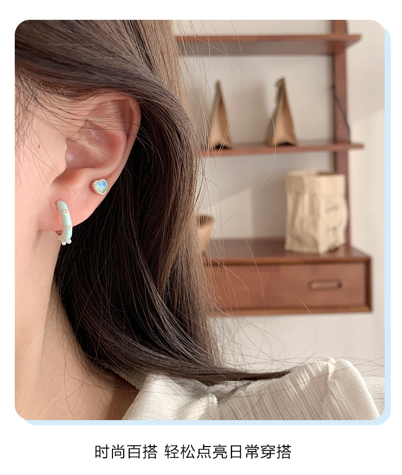 卡通滴油彩色小熊花花耳钉套装女银针小众设计高级感可爱学生耳饰