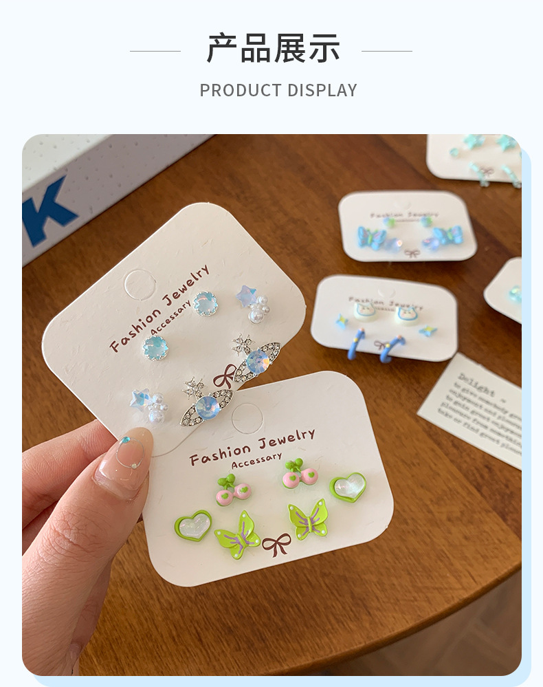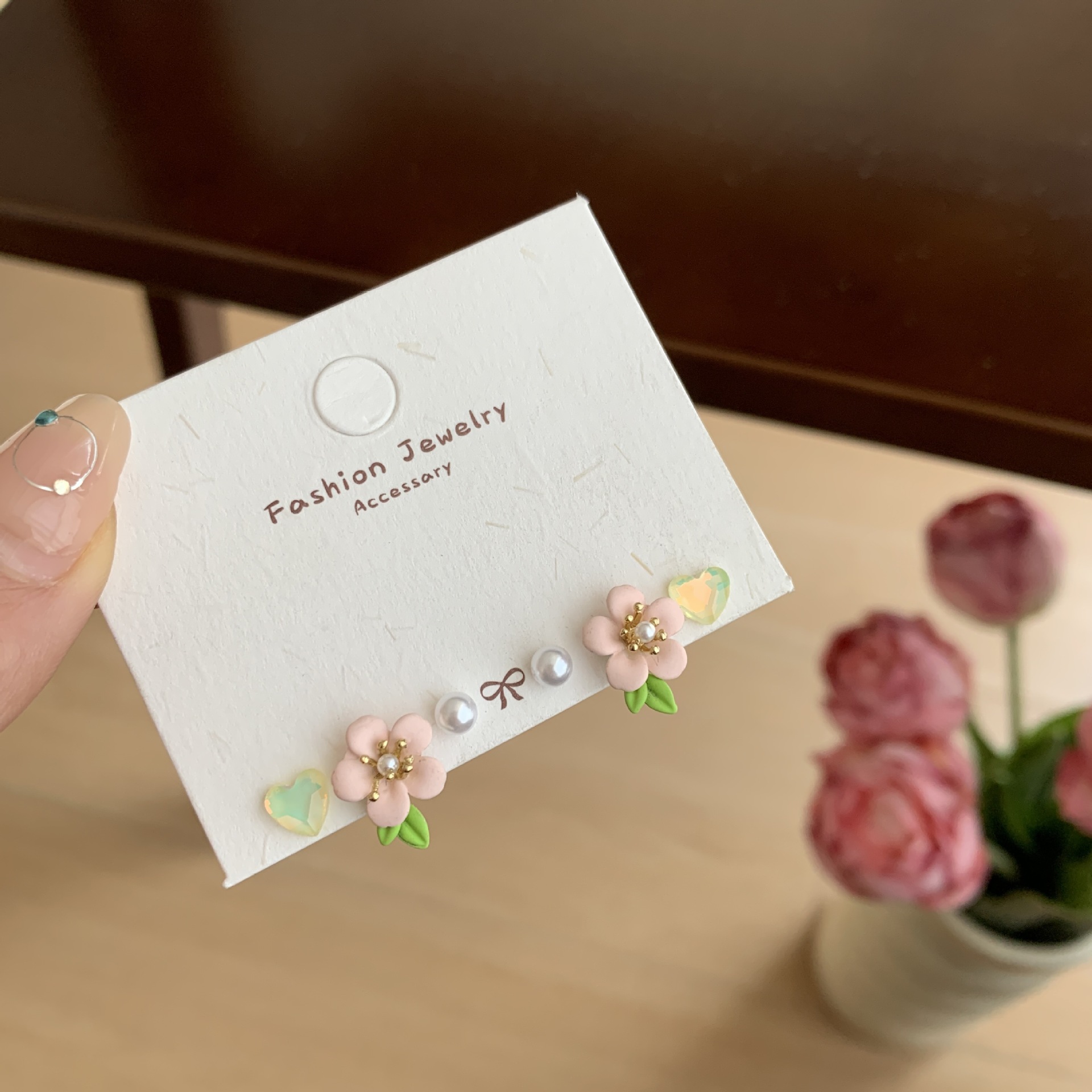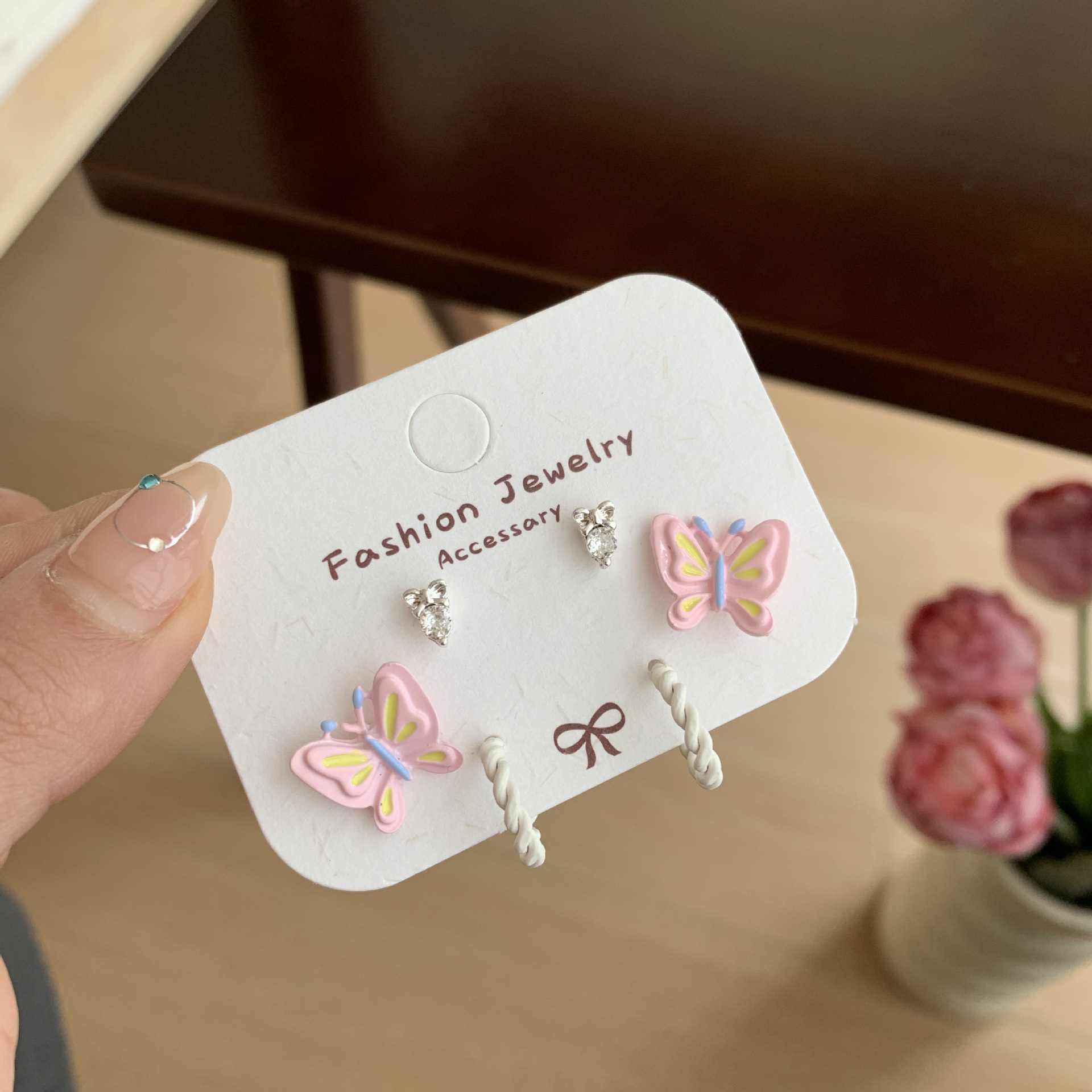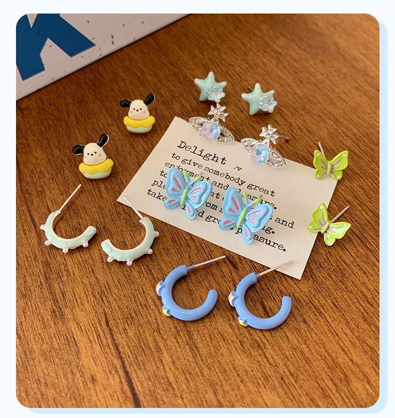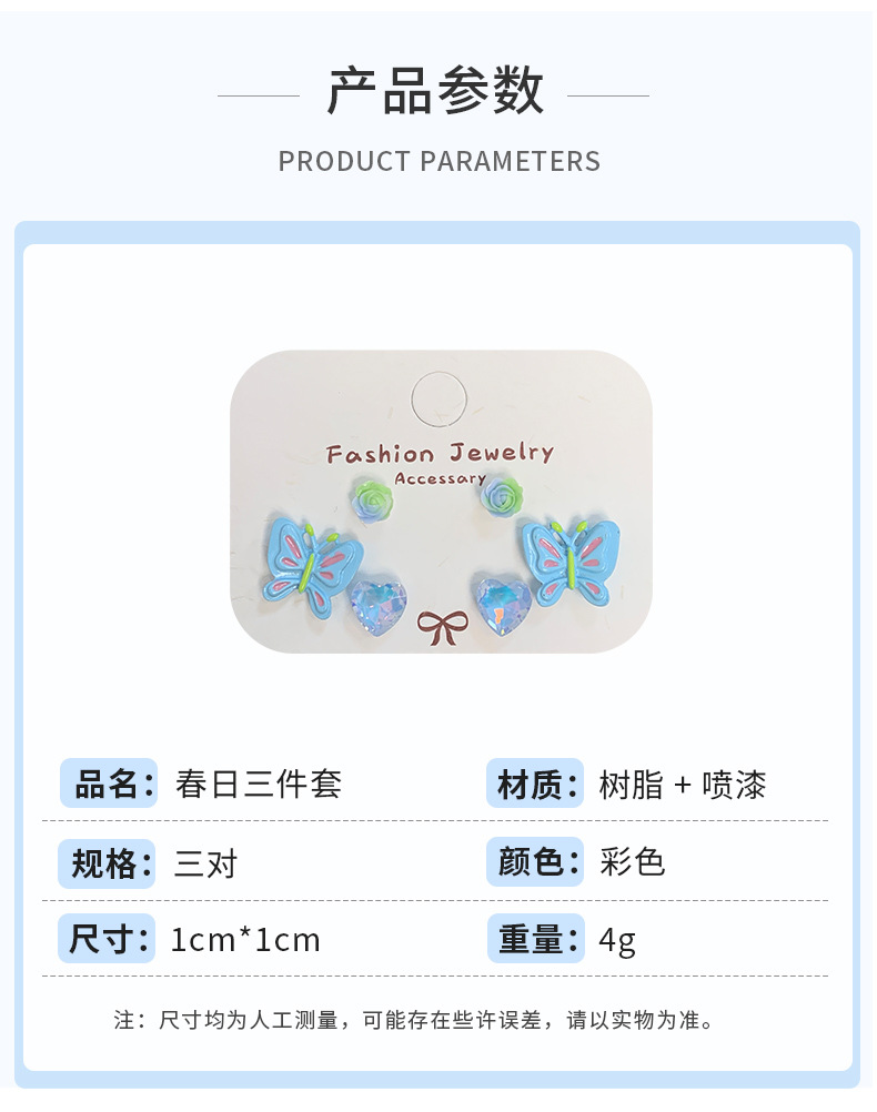 卡通滴油彩色小熊花花耳钉套装女银针小众设计高级感可爱学生耳饰